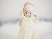 ちょこんと手に乗せたくなる、小さな女の子のビスクドールです。