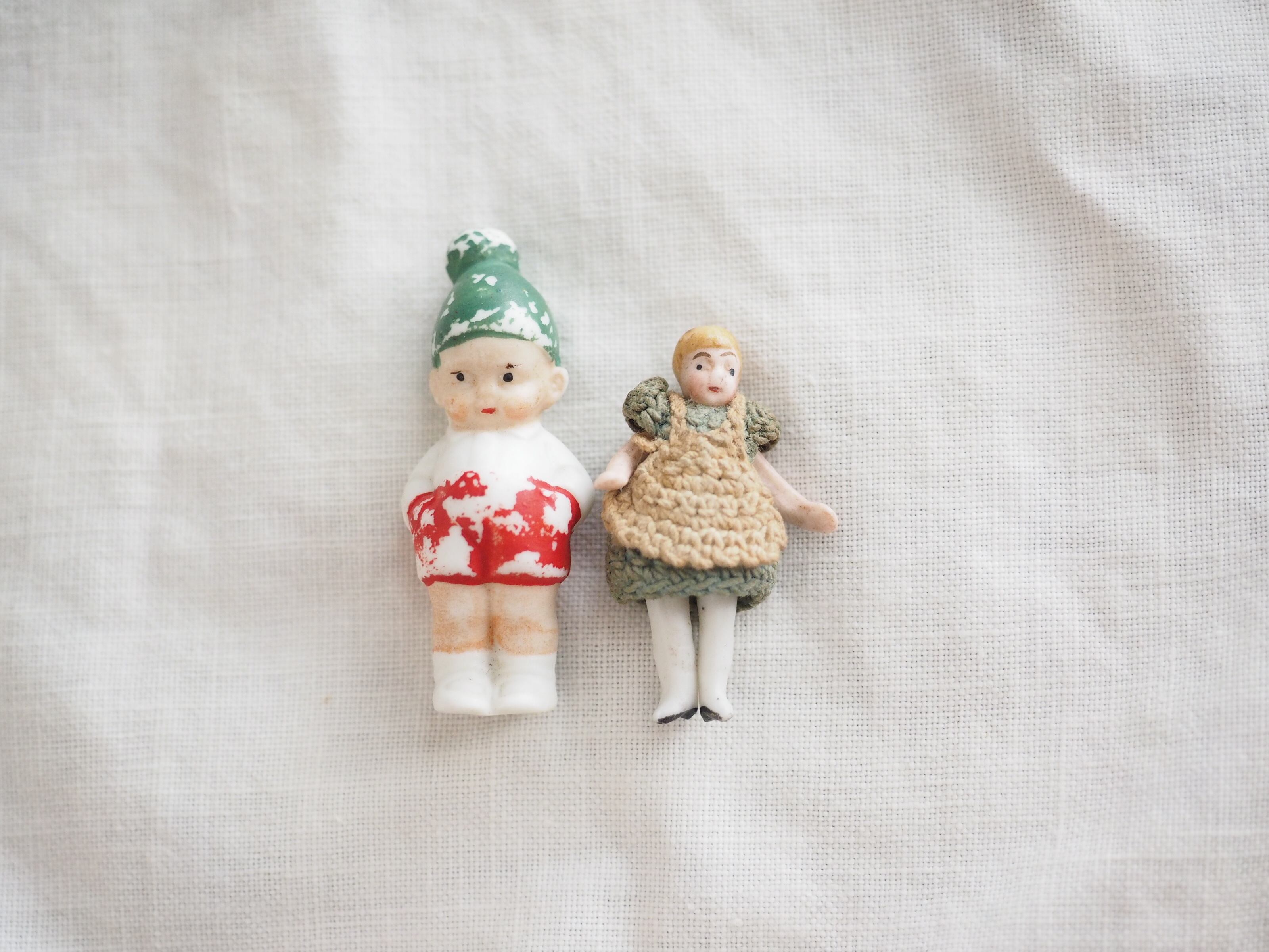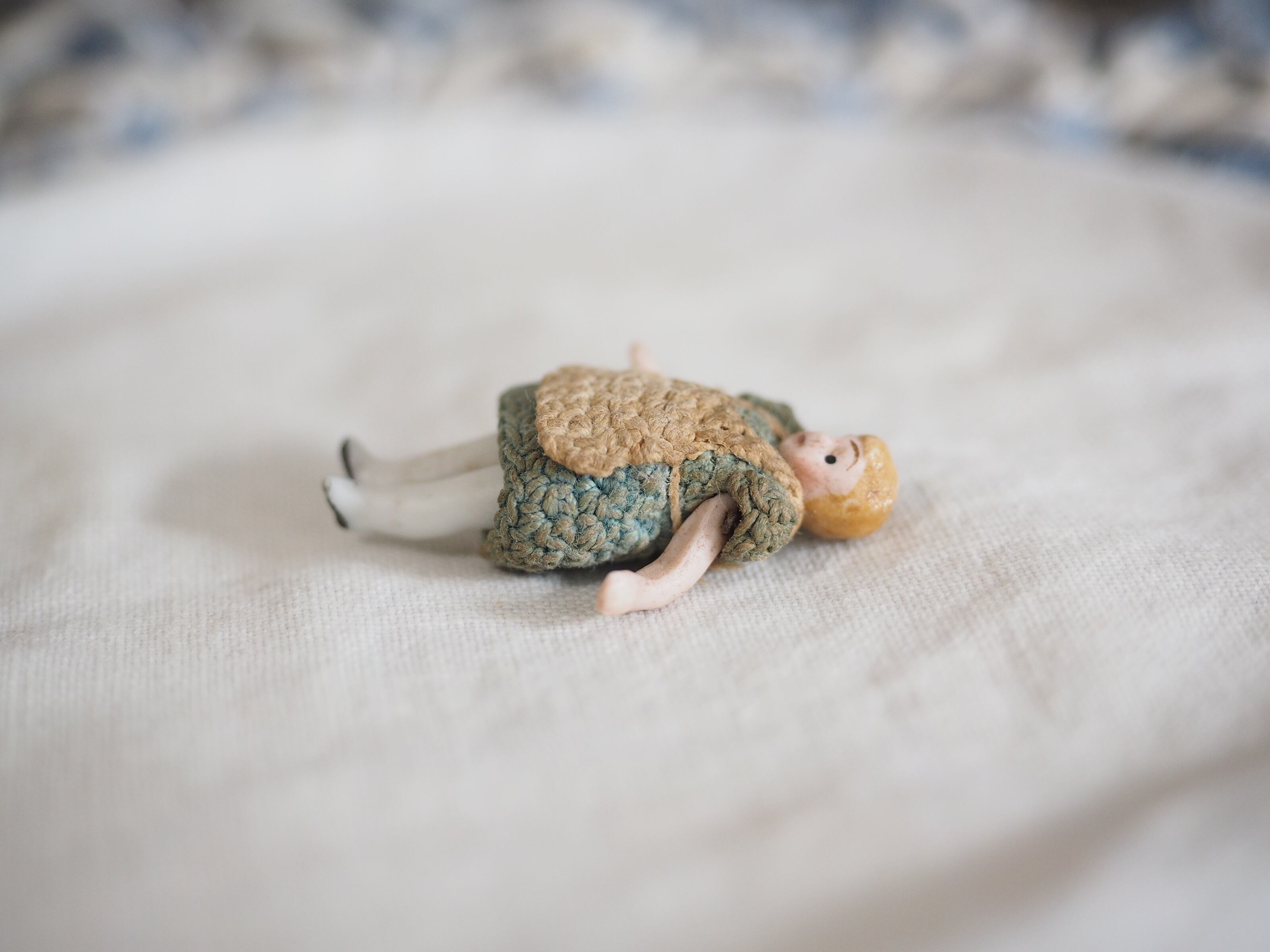 小さなヘッドにお顔のペイント、細い腕と脚はワイヤーのジョイントです。