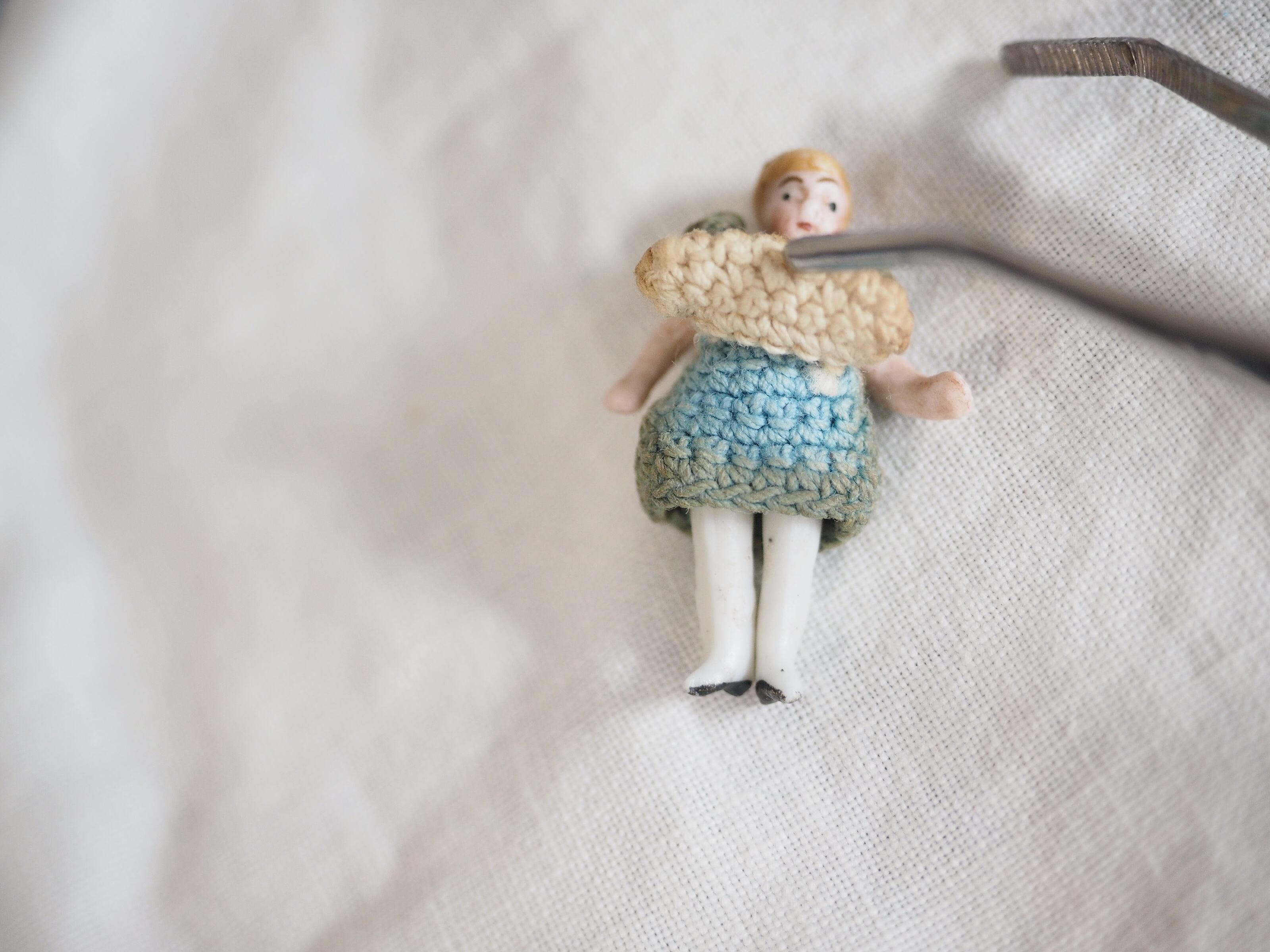 小さな小さなクロシェ編みワンピースの女の子ドール