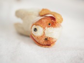 お顔と耳はブラウンカラーに退色していますが、耳を上げると当時のお色が残っておりとてもきれいです。