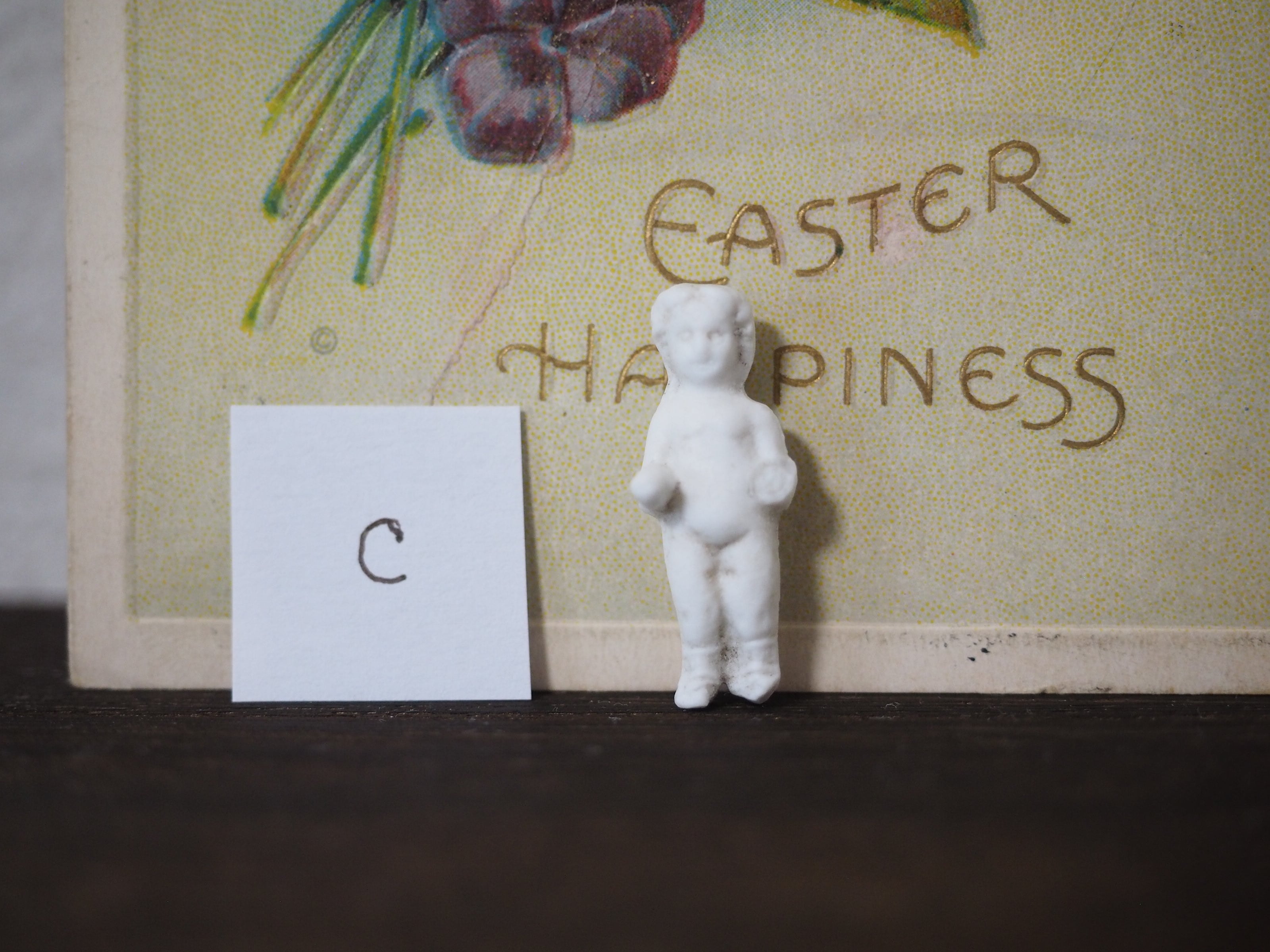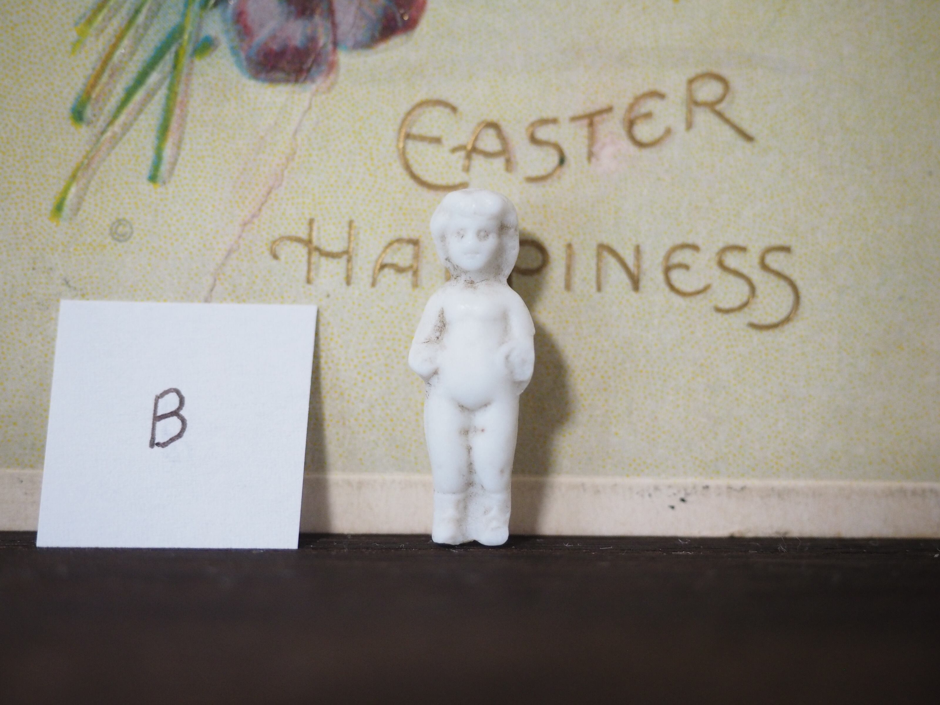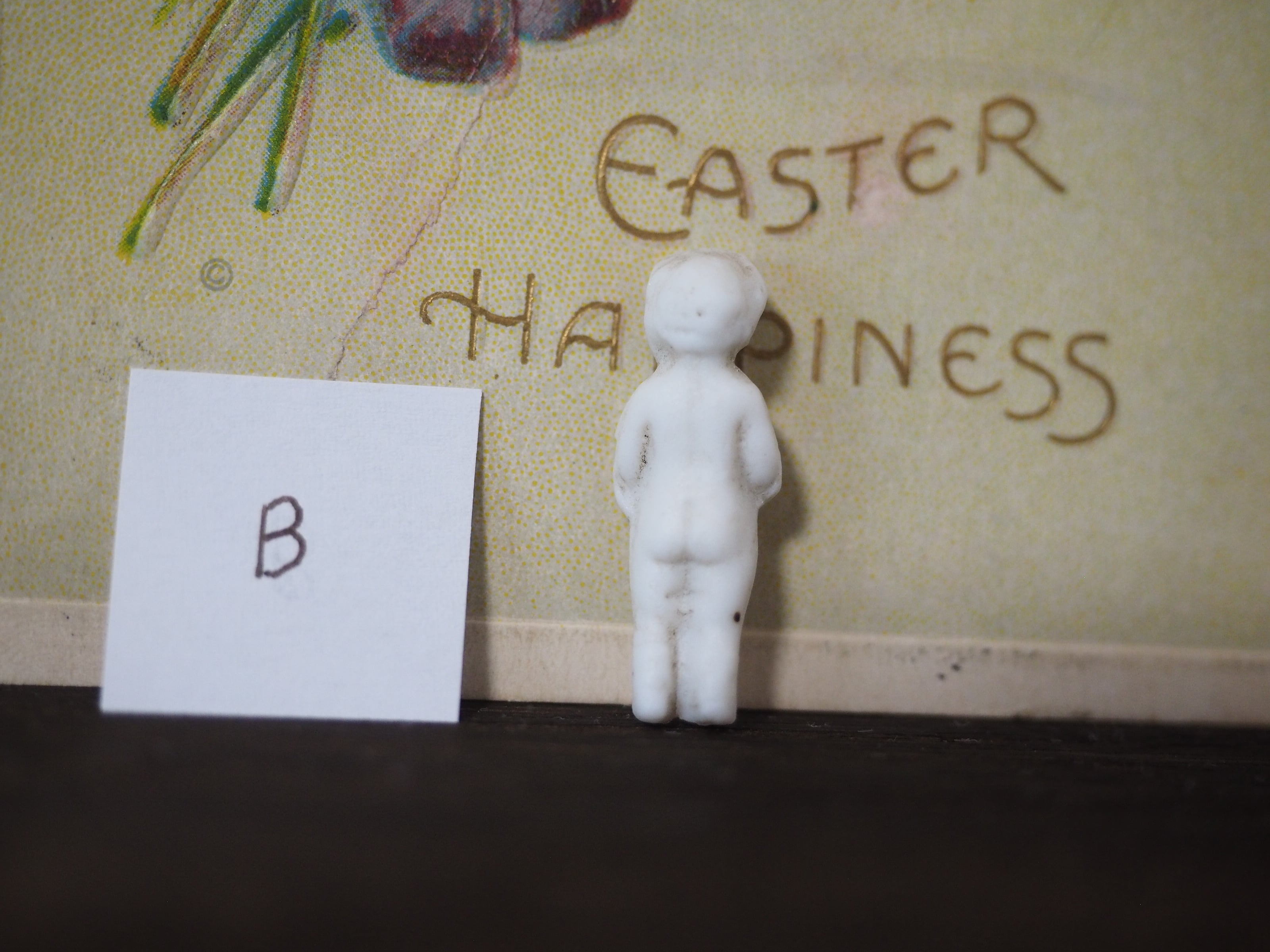 B:両手と左足先欠損、首下にへこみ、黒い点と線のような薄くキズがございます。