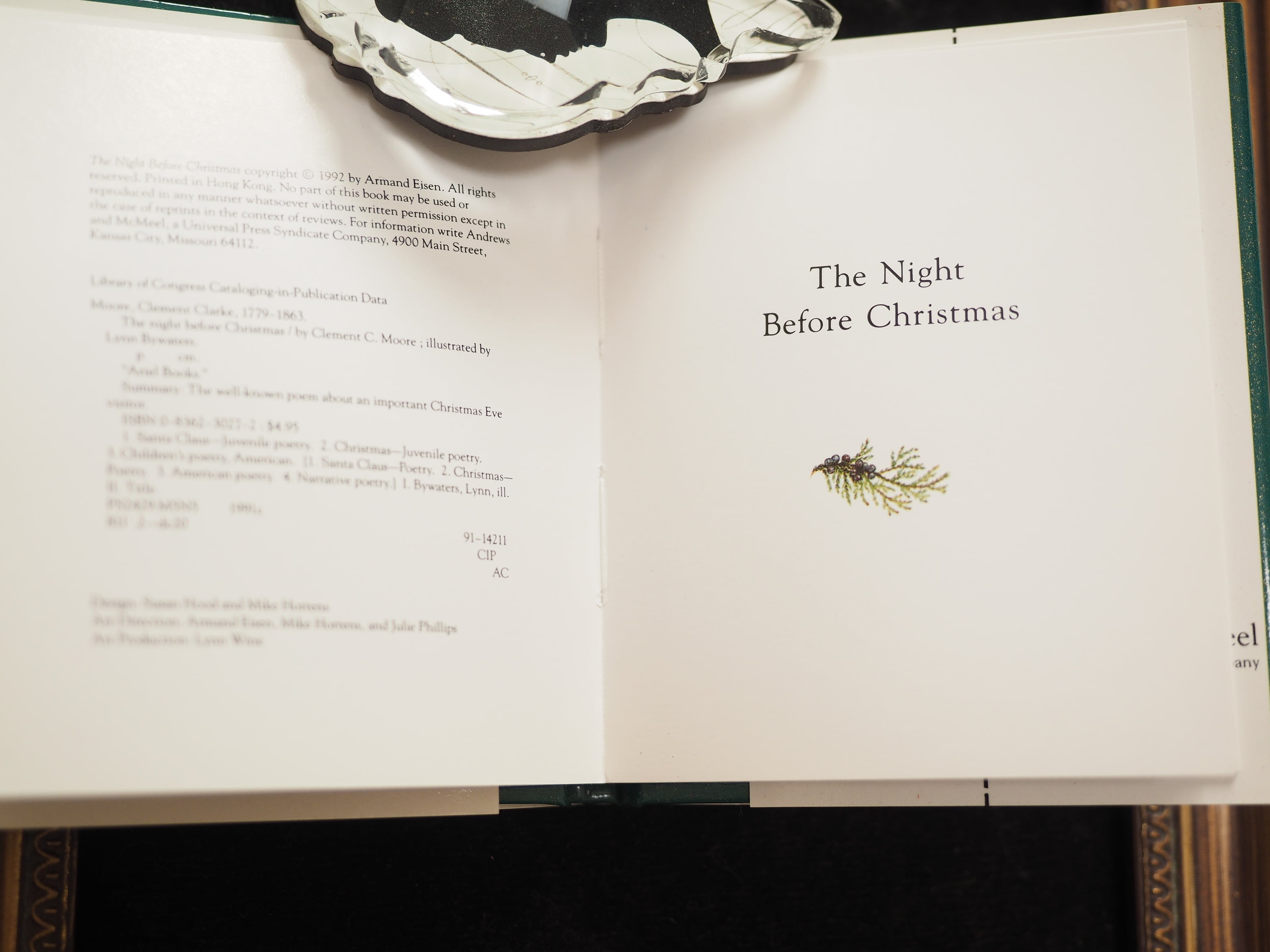 見開きに「1822年に自身の子供のためにClement C.Mooreが書かれた有名なバラード」、と記されています。"'Twas the Night Before Christmas" から始まるお話。