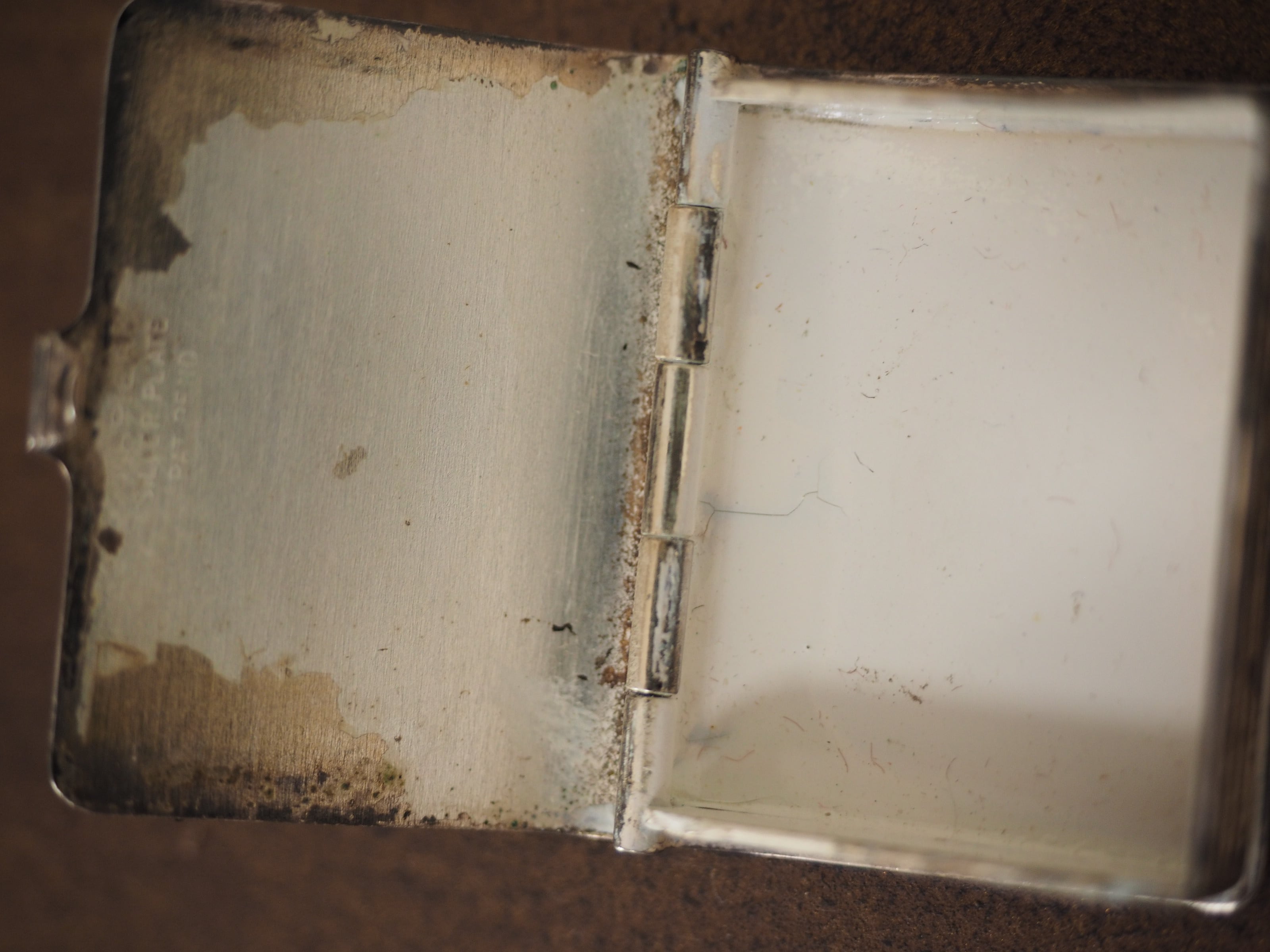 NAPIER SILVER PLATE PAT PENDと内側に刻印があり、Napier Co. (ネイピア社)のシルバープレート(銀メッキ)