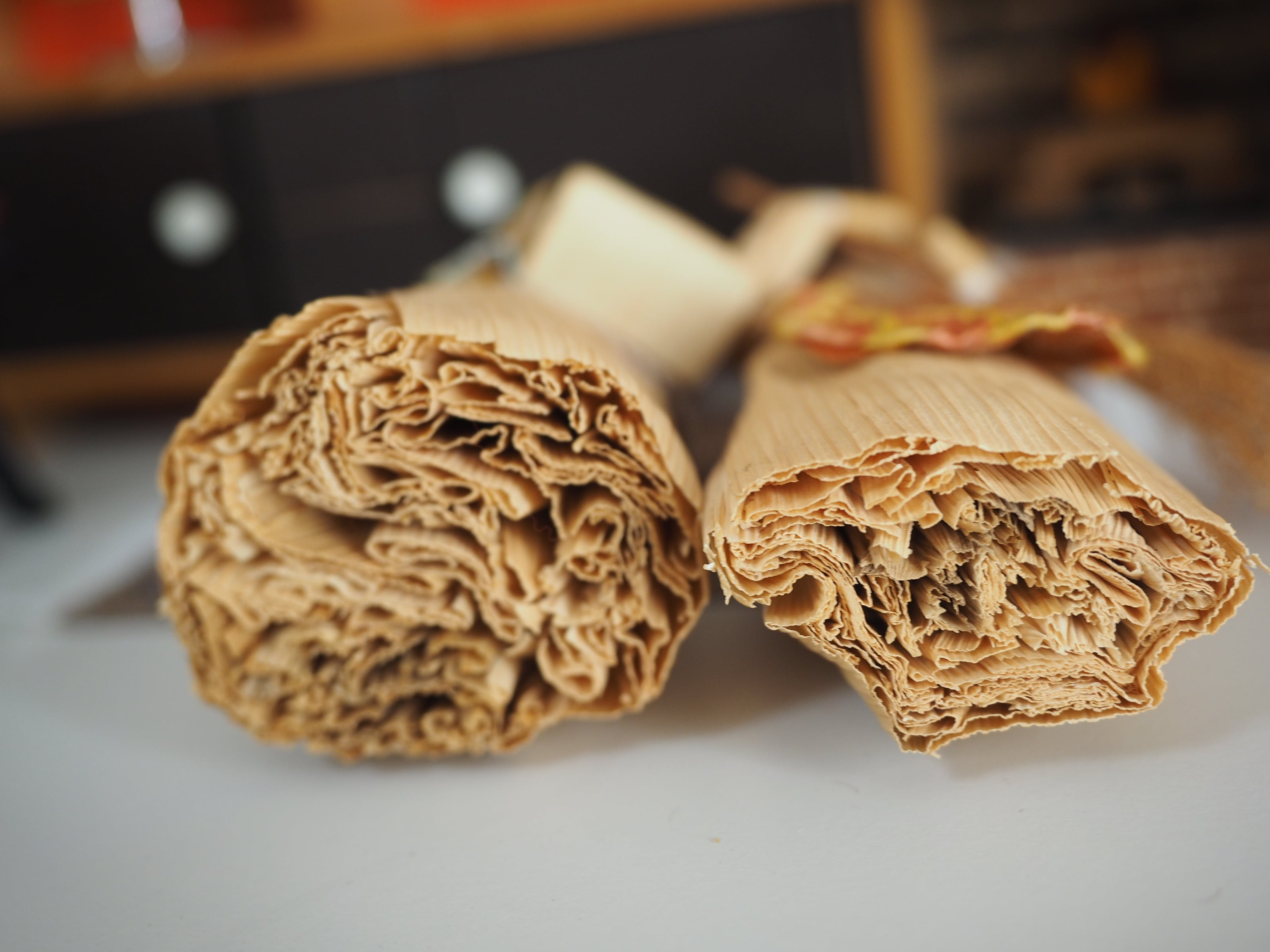 とうもろこしの皮は乾燥してカサカサしていますが、自然の手触りと柔らかさがあります。