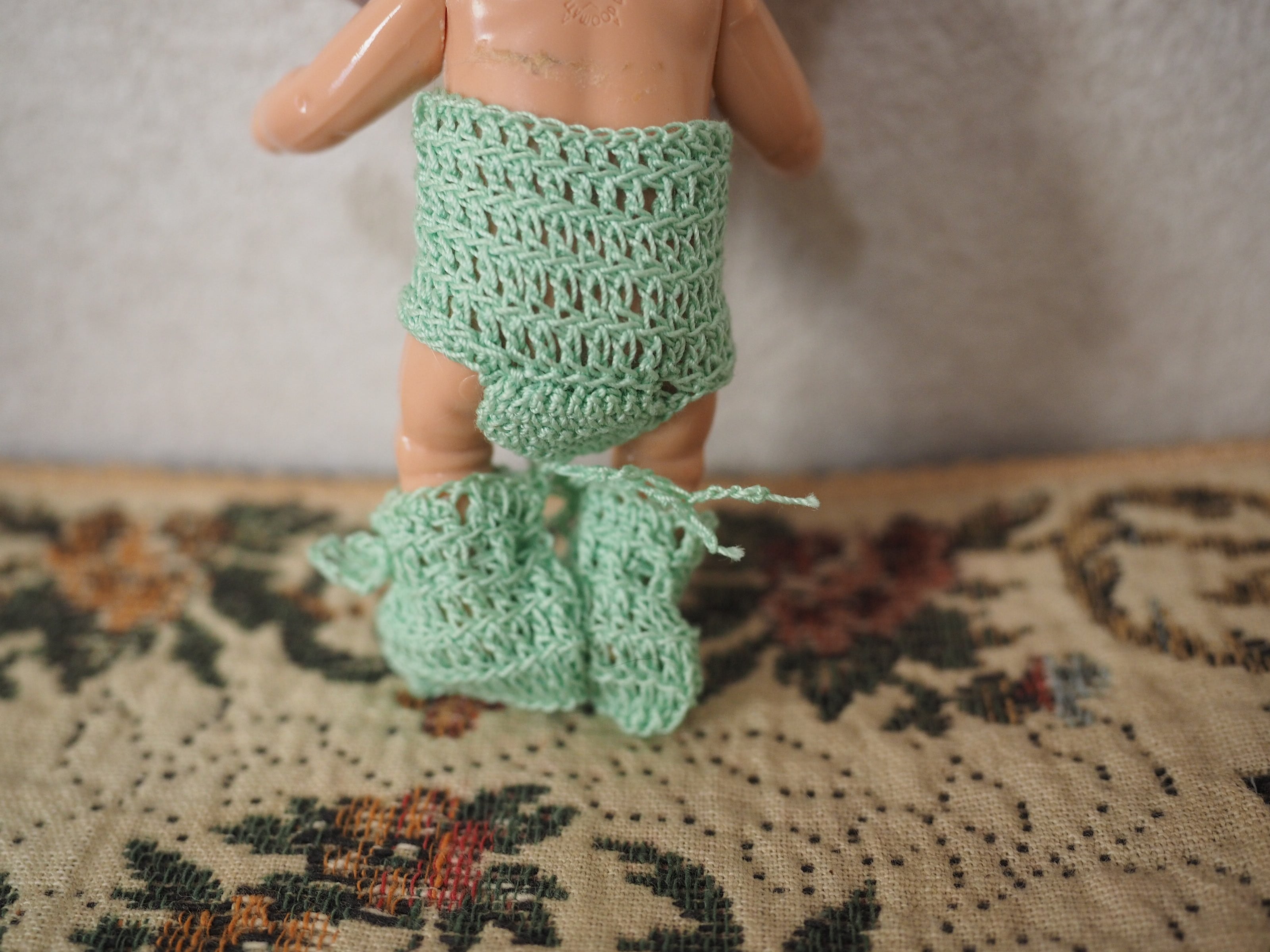 実際履いてもらえるかどうか、小さなベビーで着用しました。ベビーは約11.5㎝で、手足は細いです。手の大きさ約1㎝、太もも約1.3㎝