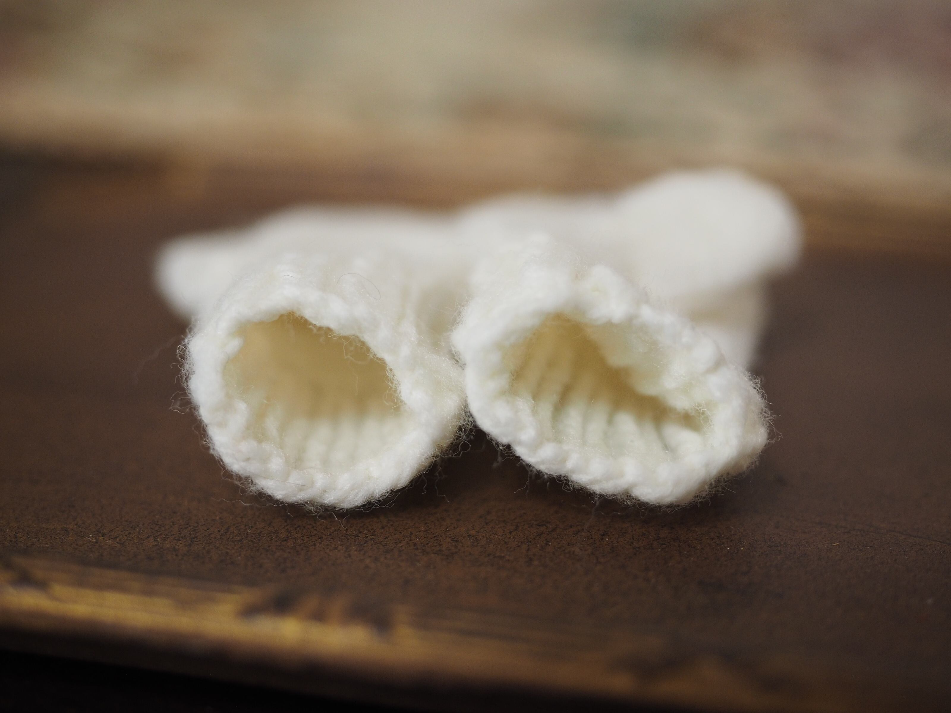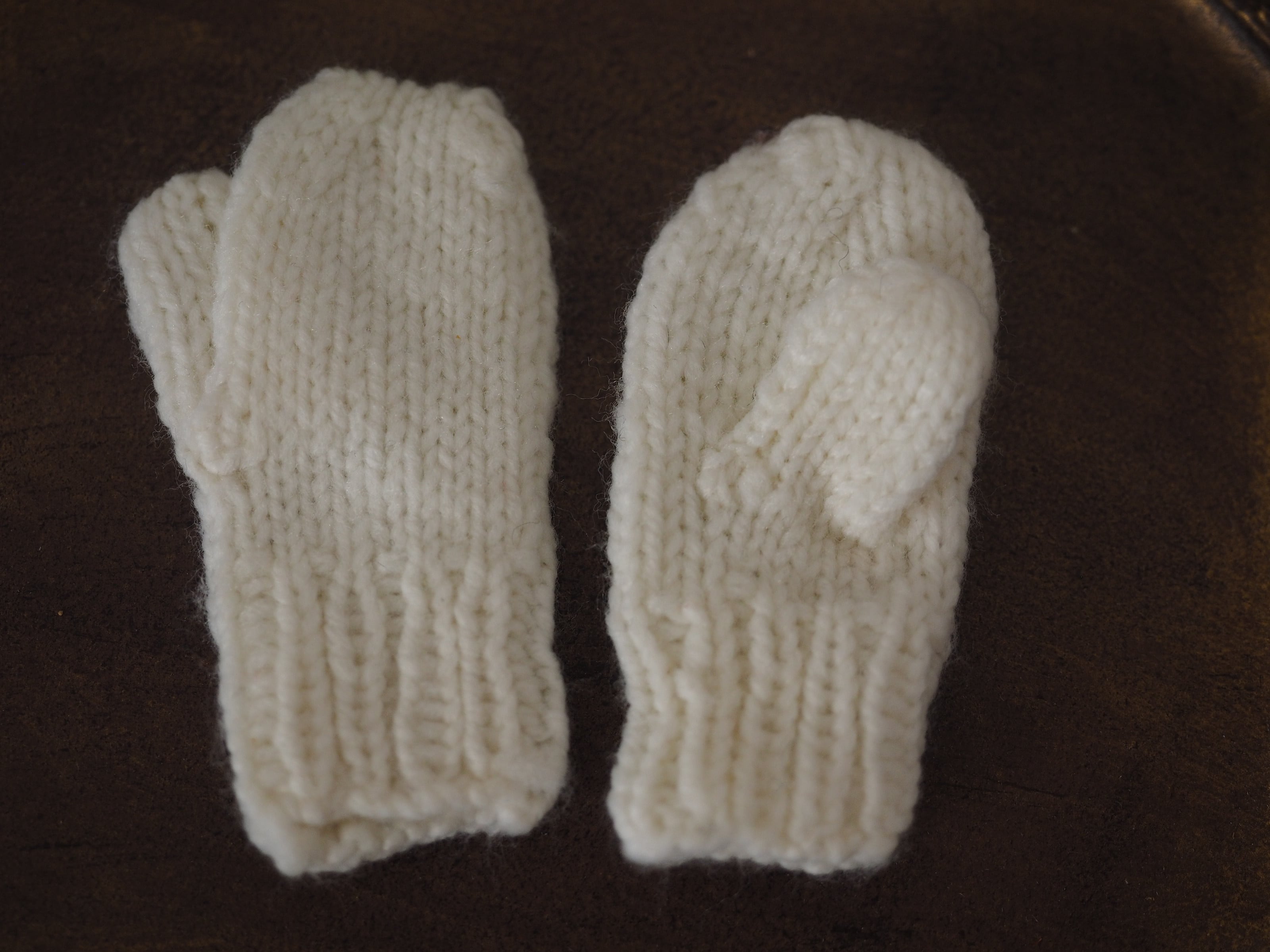 左右でちょっぴり長さが違ったり、てっぺんが平らになっていたり、お母さんが編んでくれたような小さなミトンです。