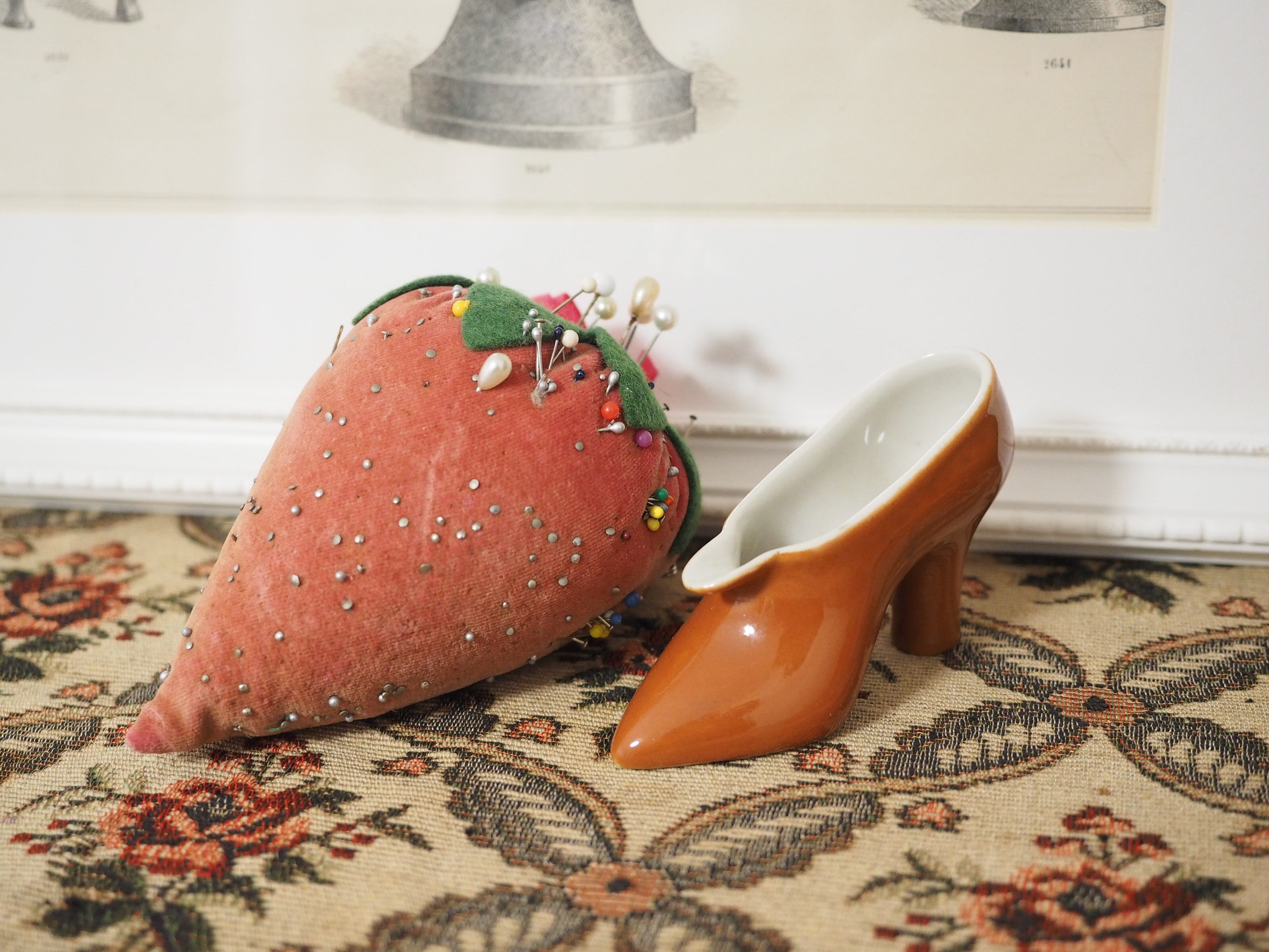 イチゴはビンテージでよく見かけるトマトのピンクッションと同じく、19世紀から20世紀にかけ人気のモチーフだったそうです。