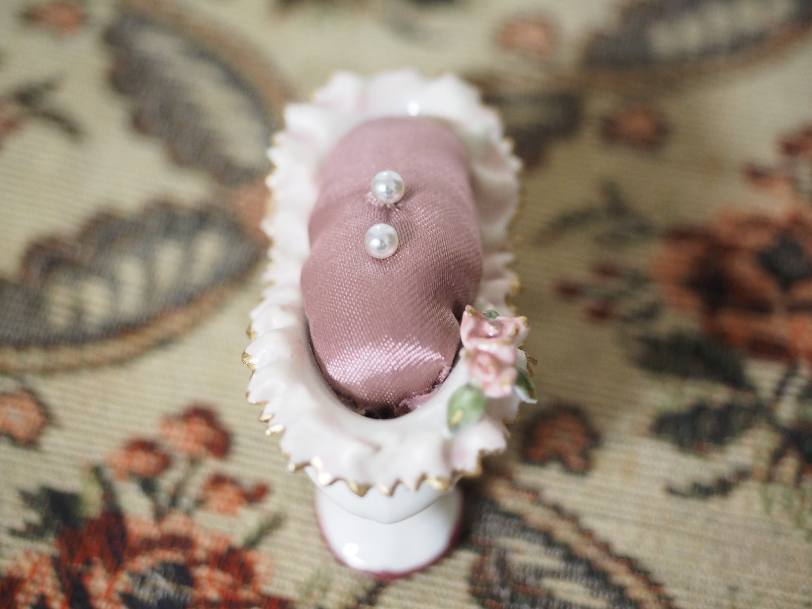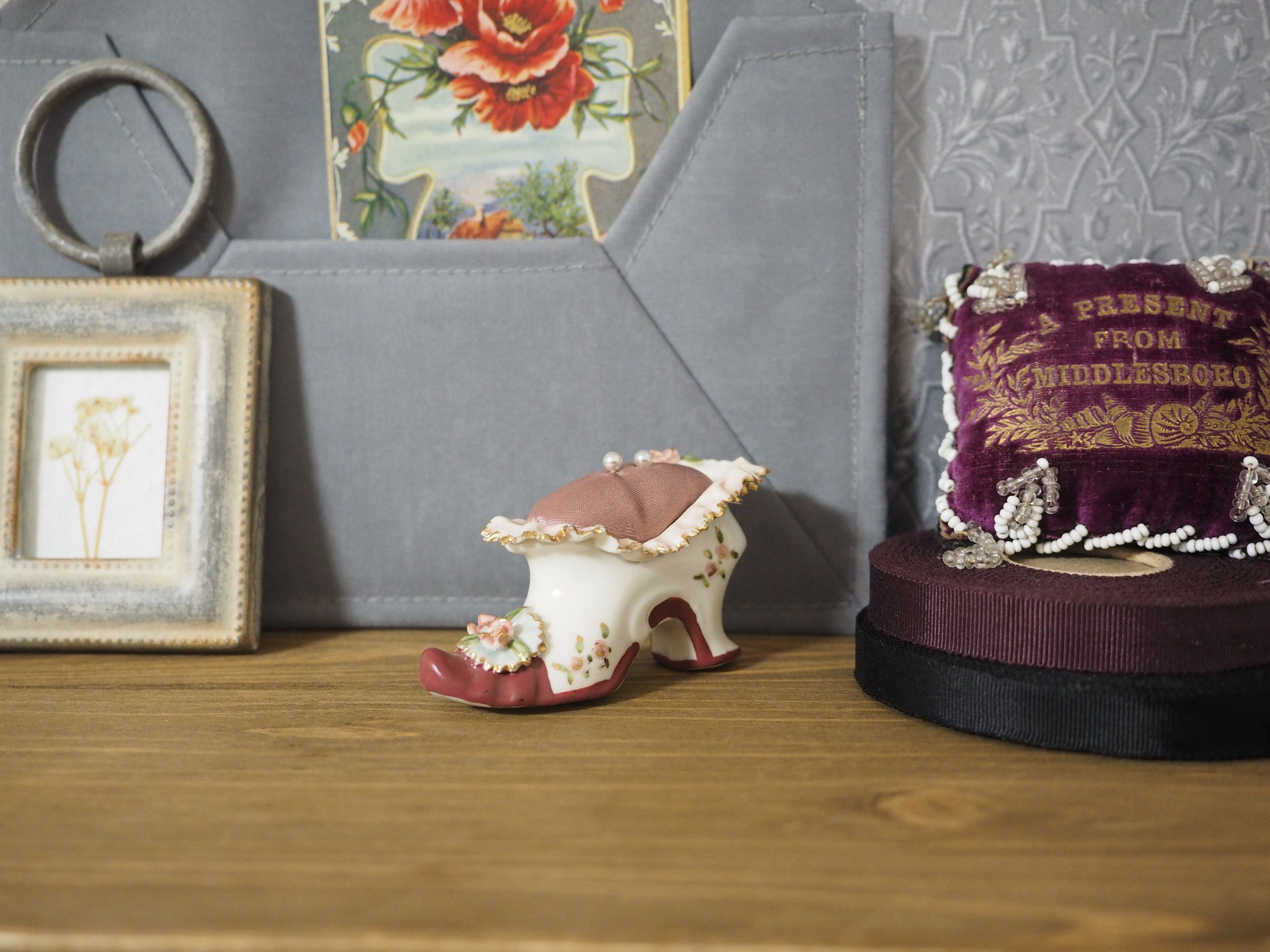 小さなサイズですが華やかな存在感のあるピンクッションです。