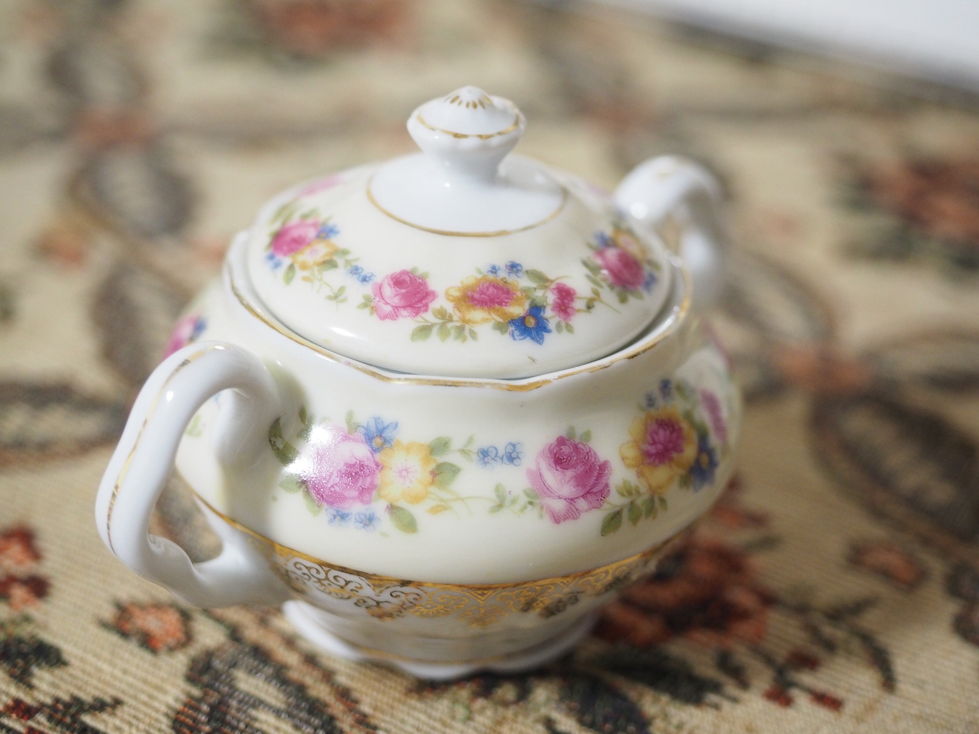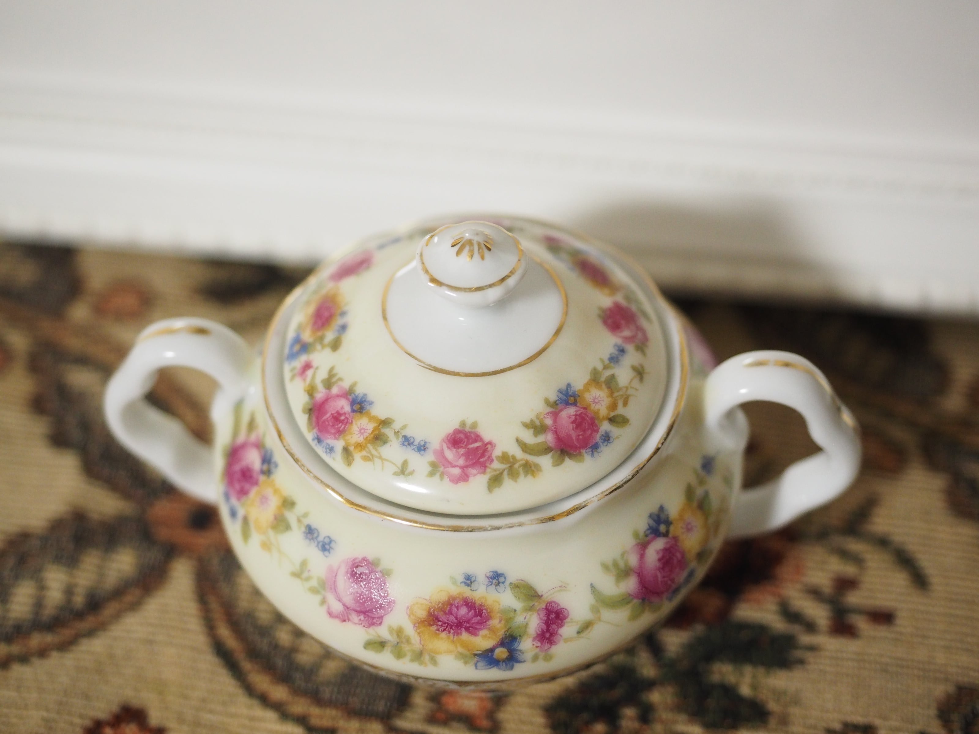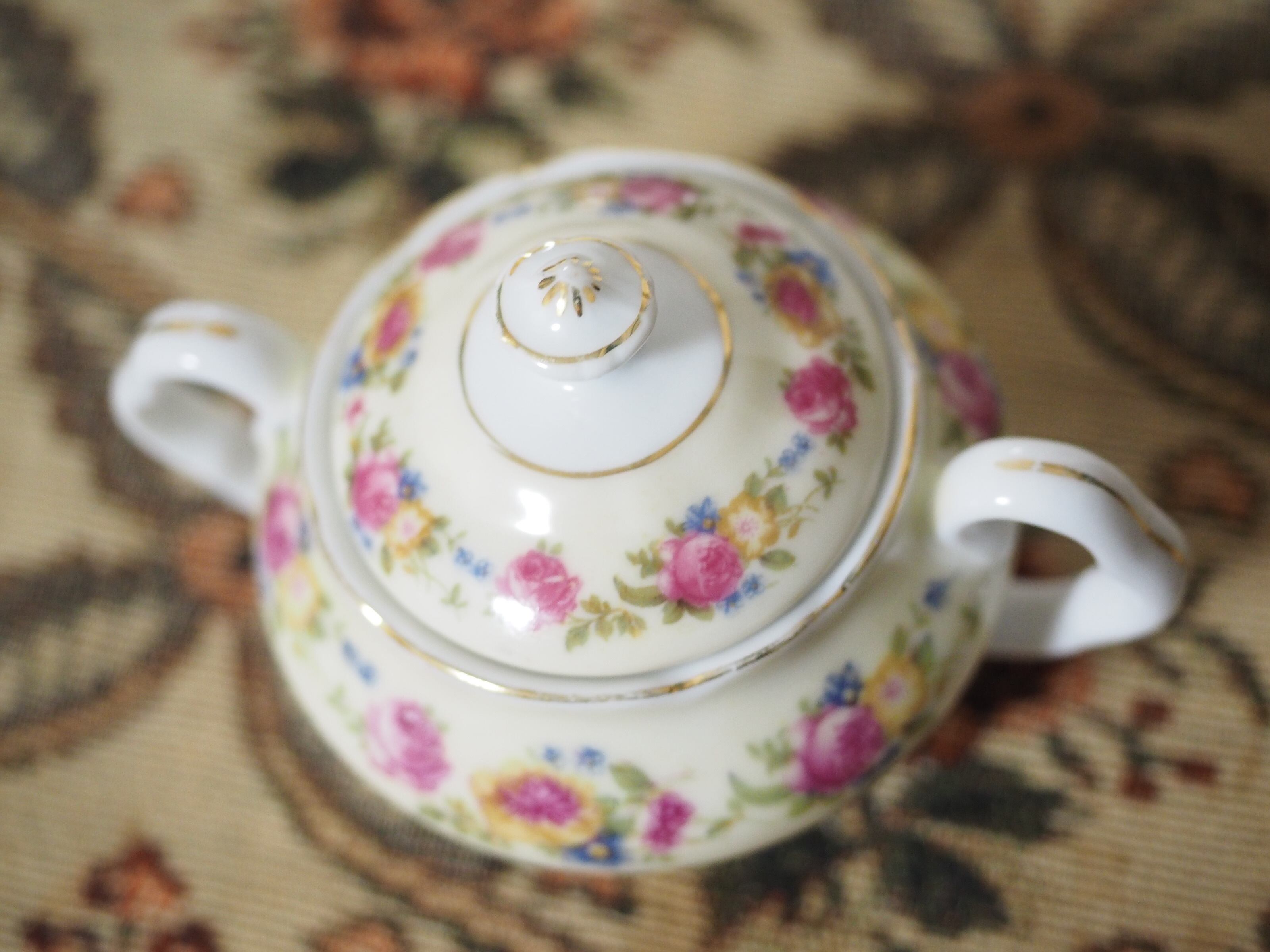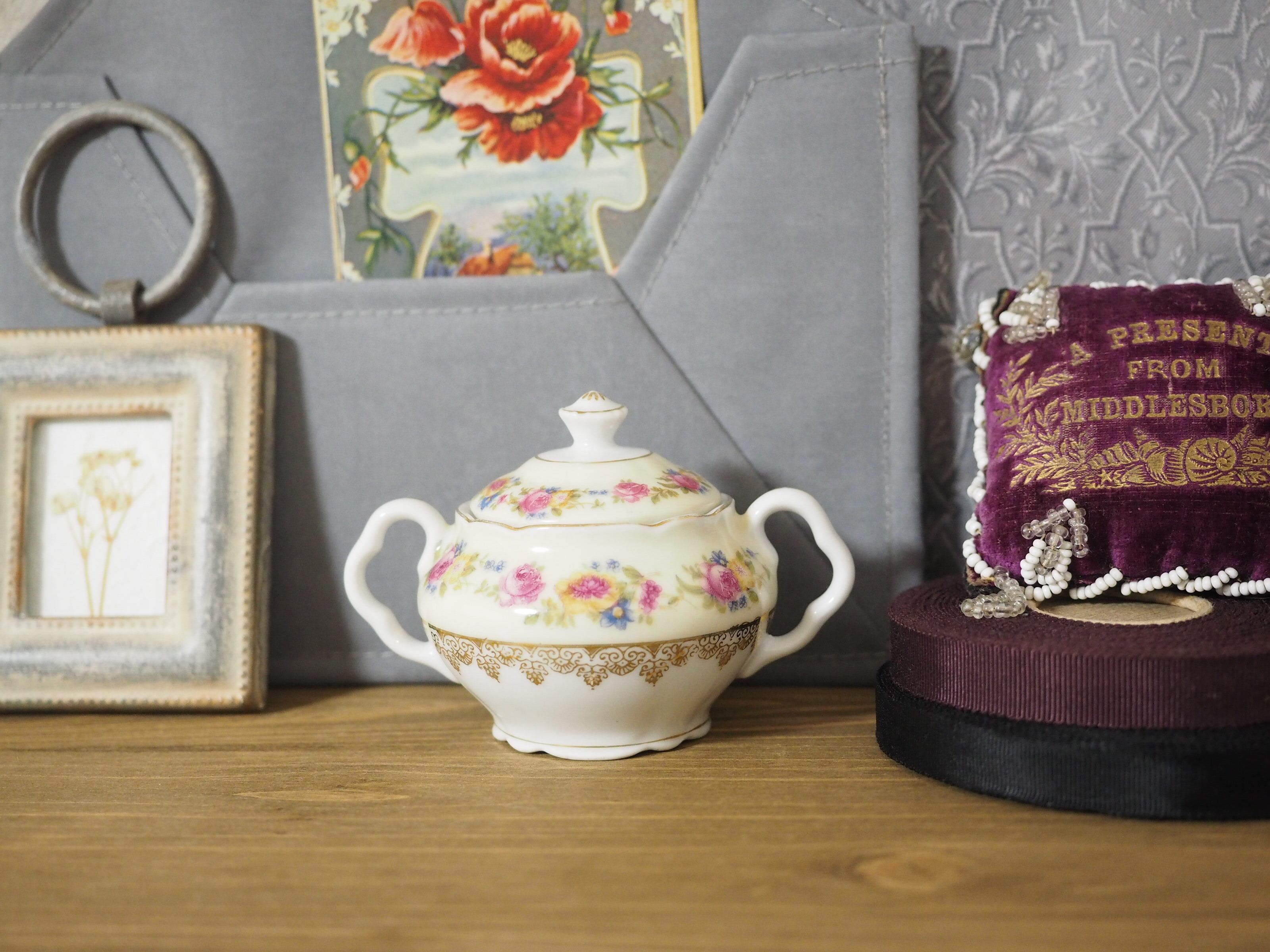 優しい華やかさのシュガーポットで、小物入れにしていただいたり、お好きな雑貨やお人形と飾っても素敵です。