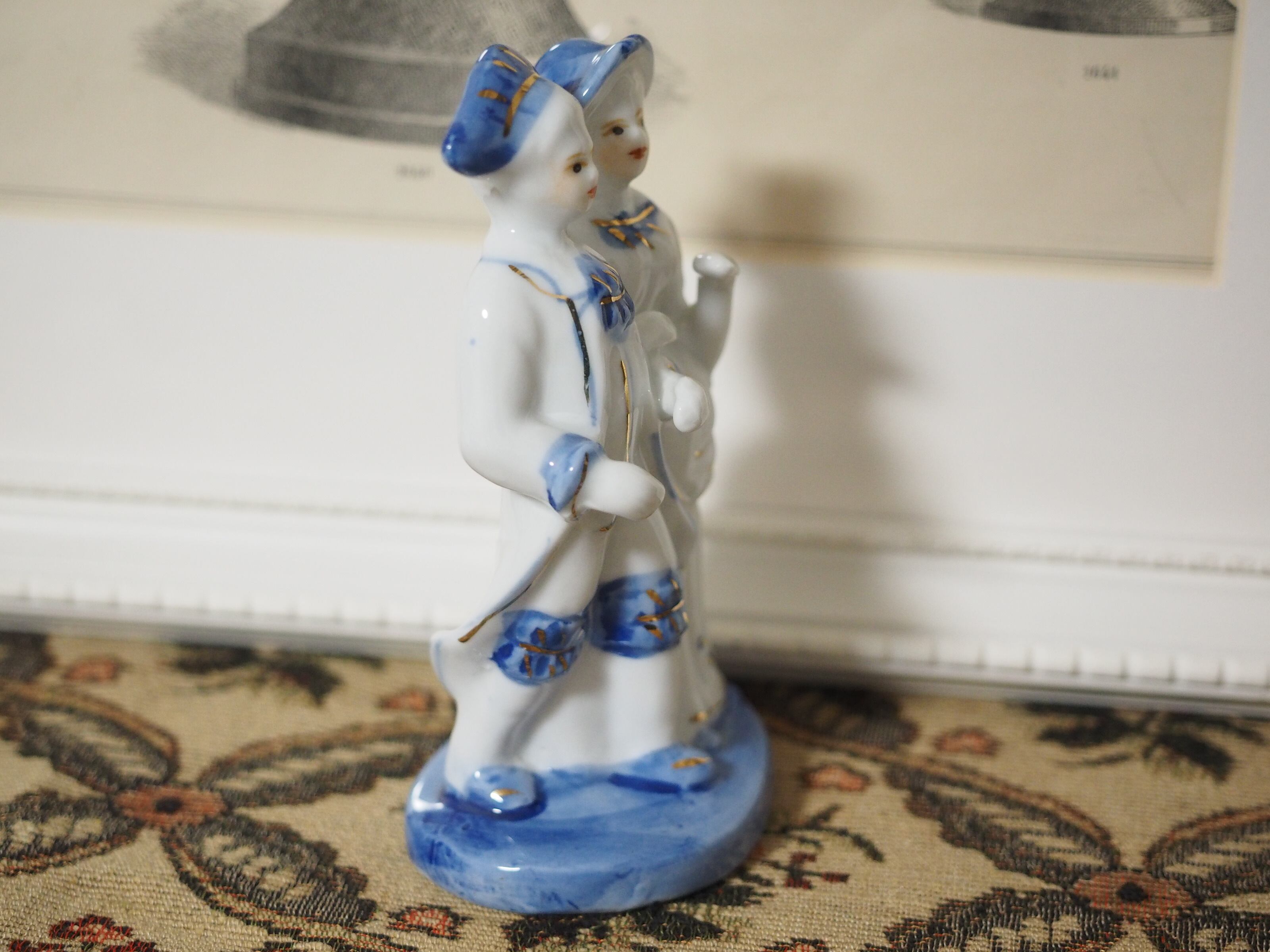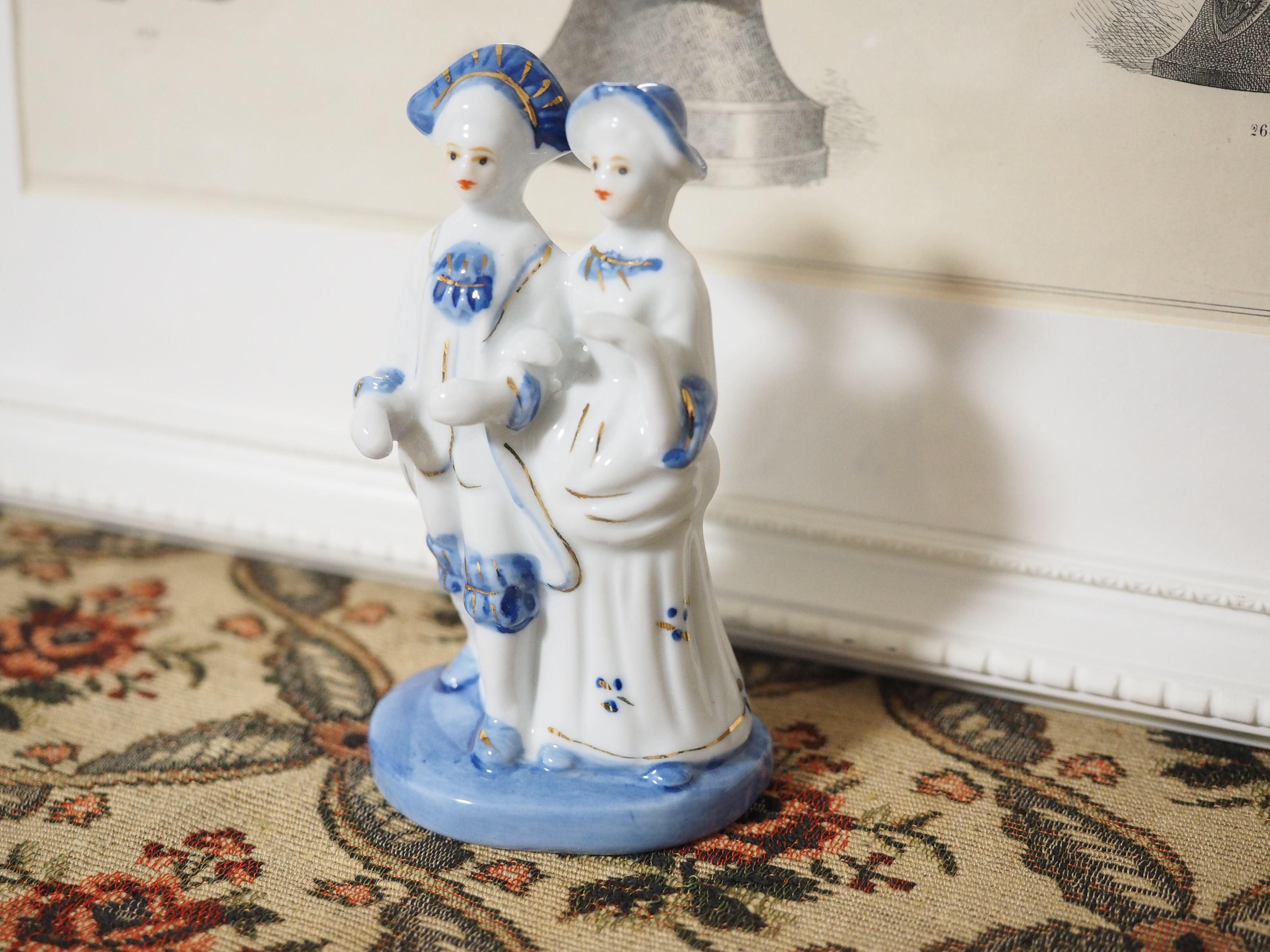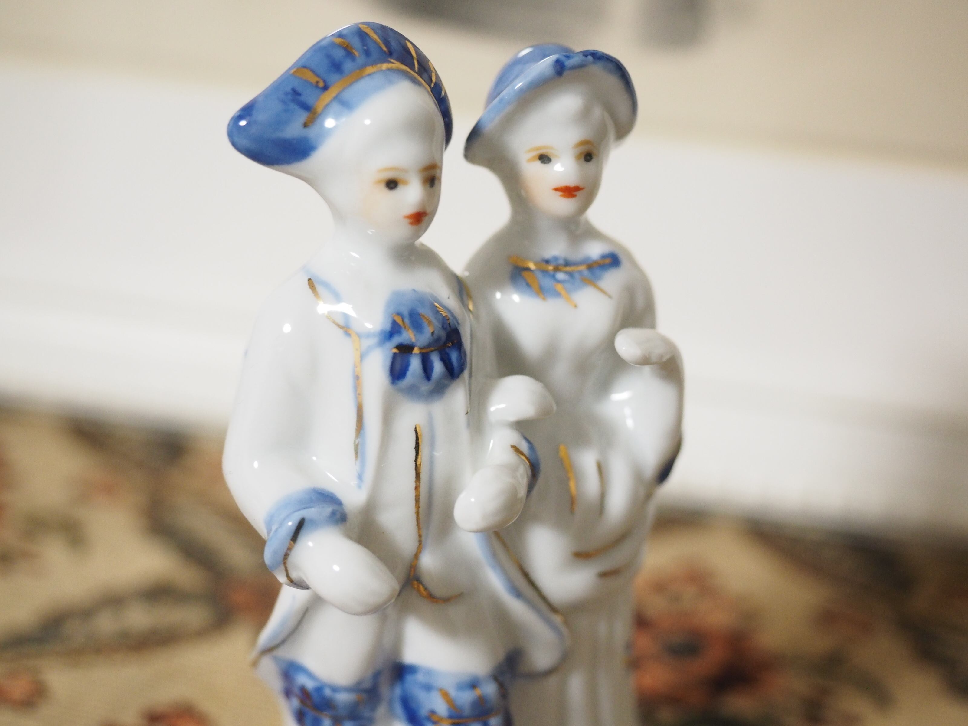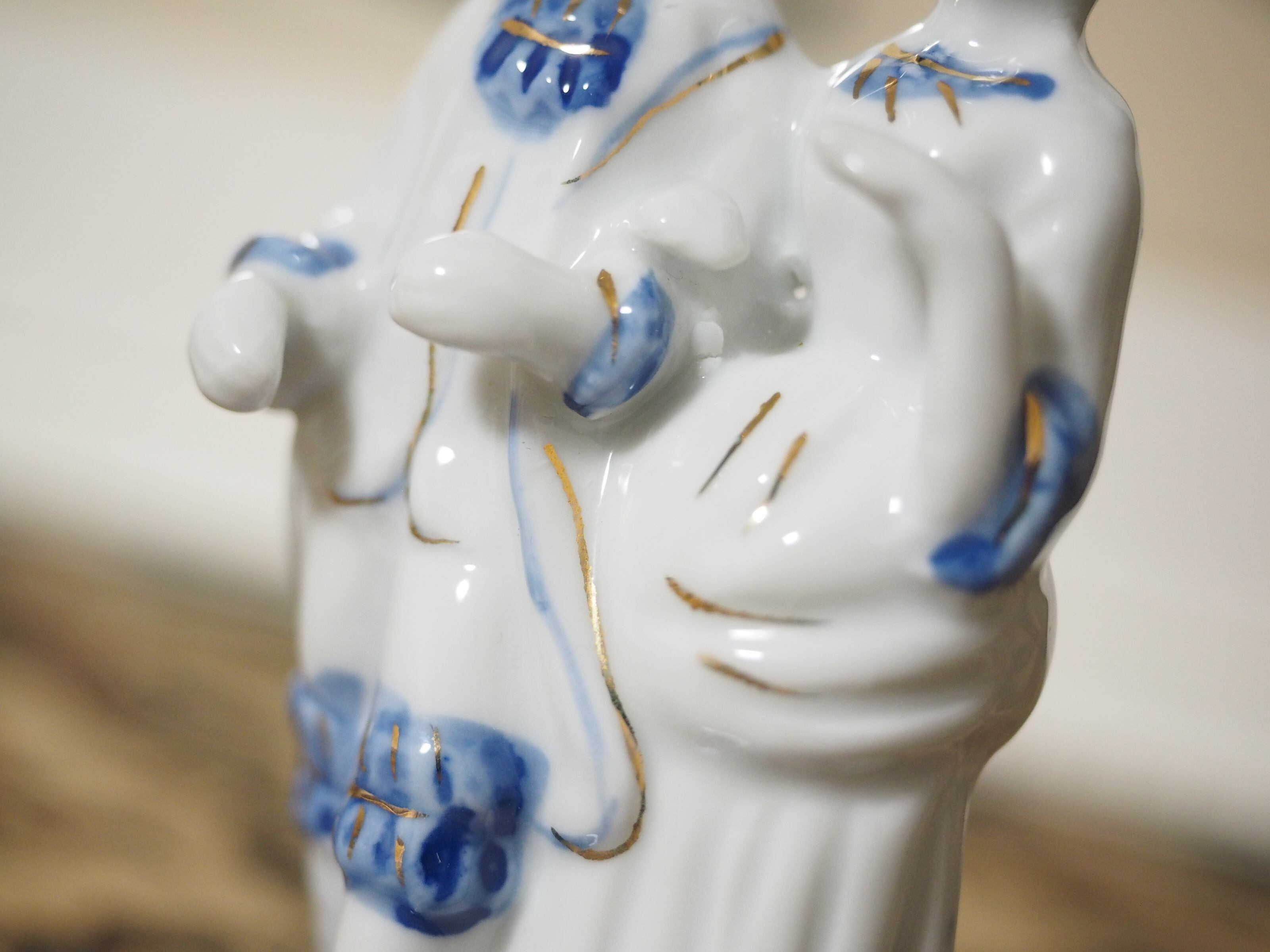 美しいブルーと手描きのペイントのフィギュリン
