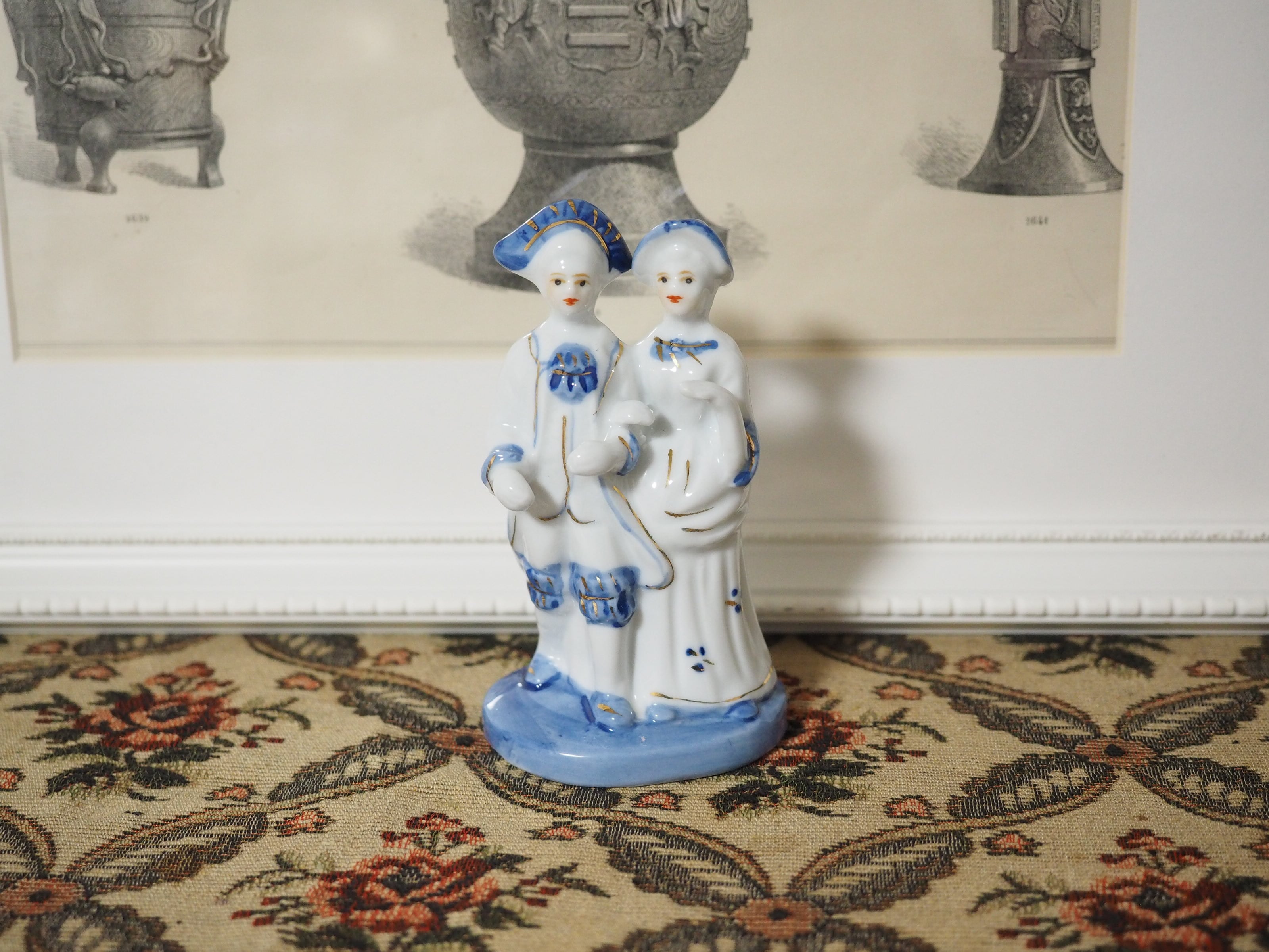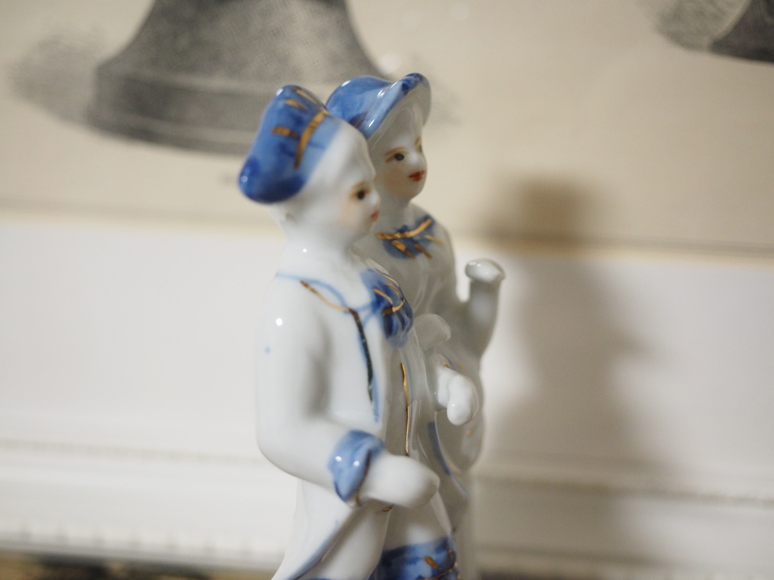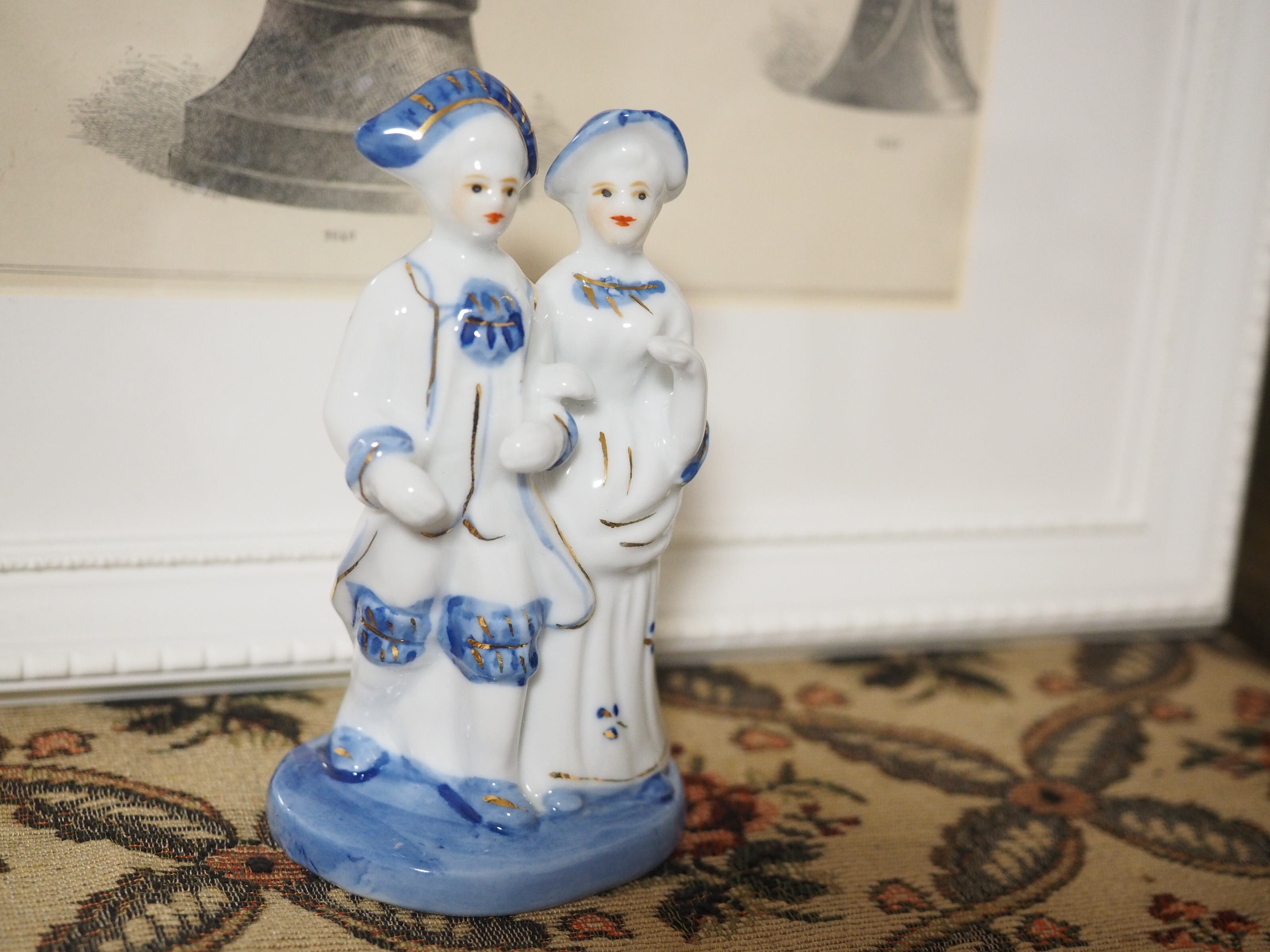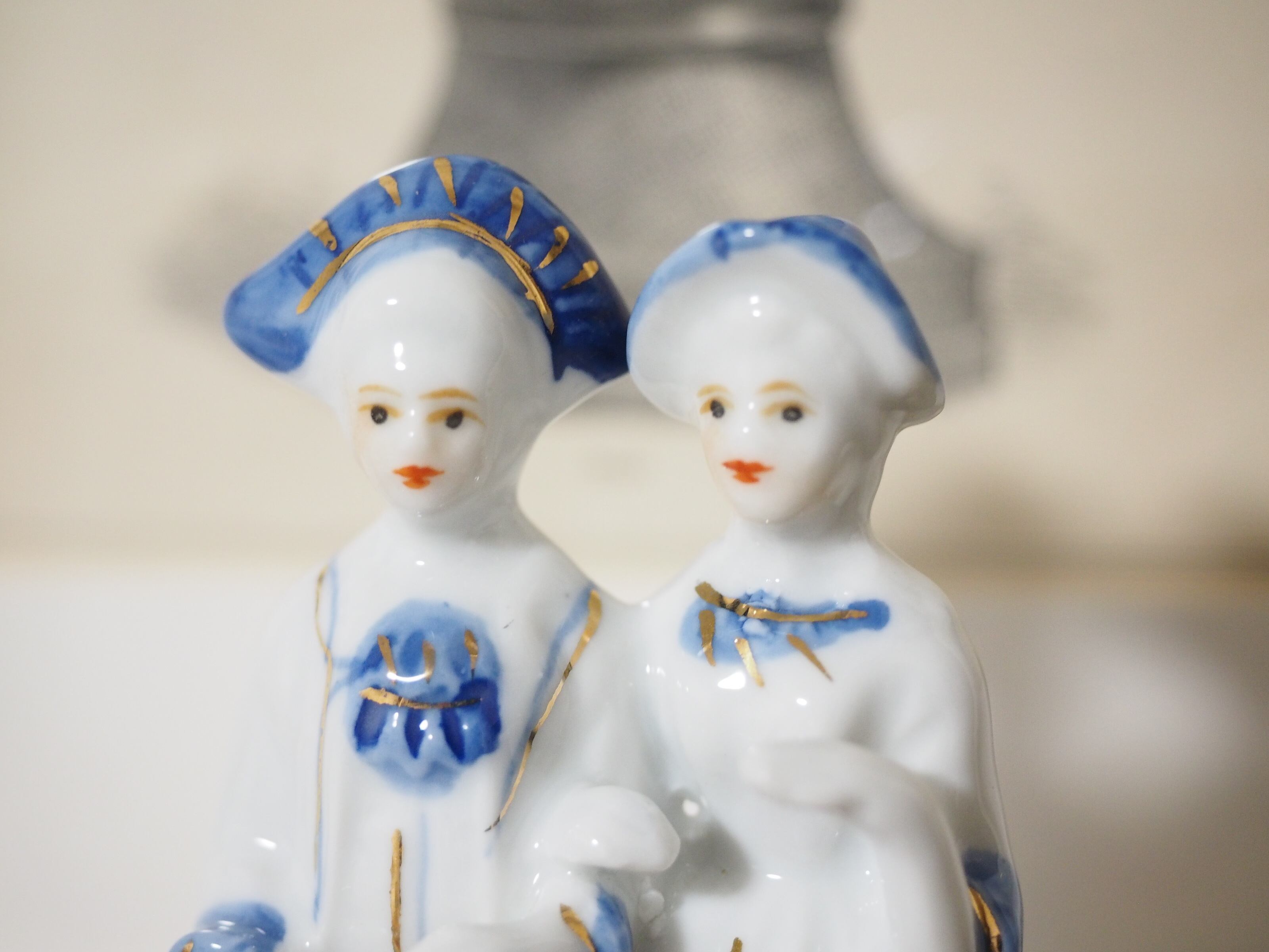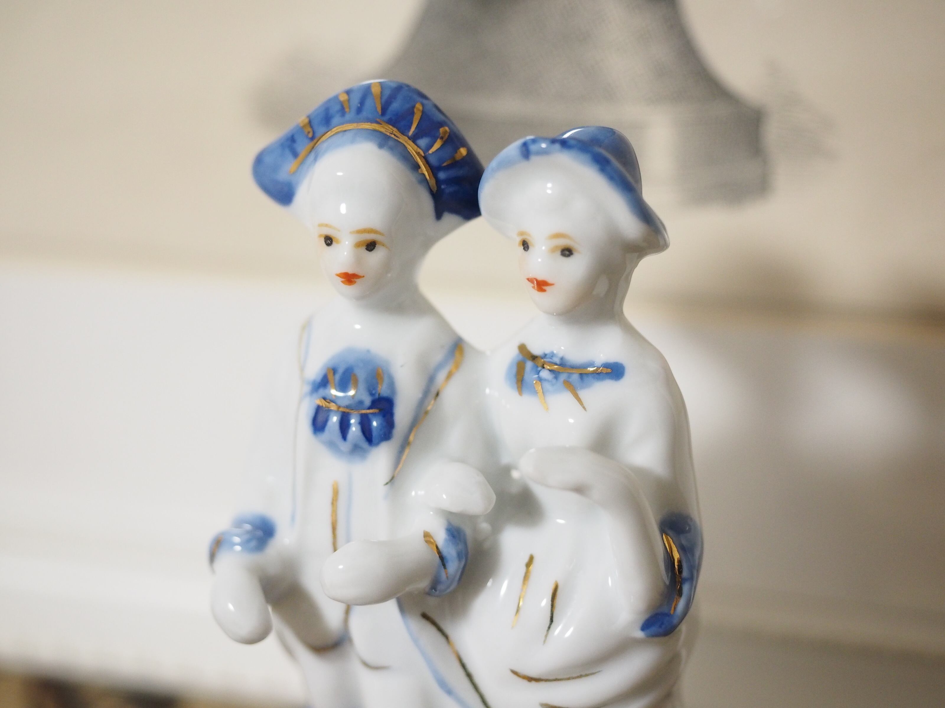 美しいブルーと手描きのペイントのフィギュリン