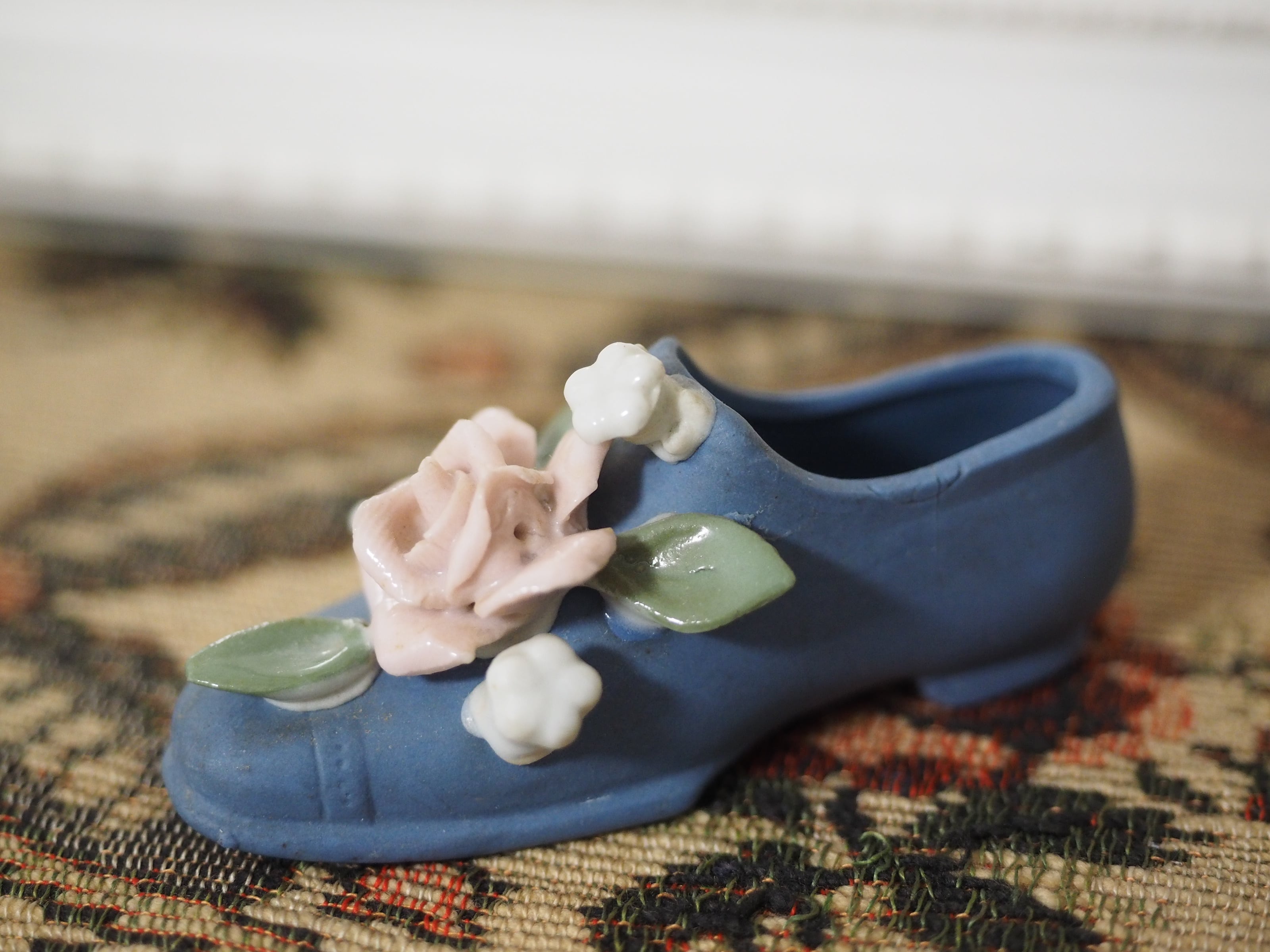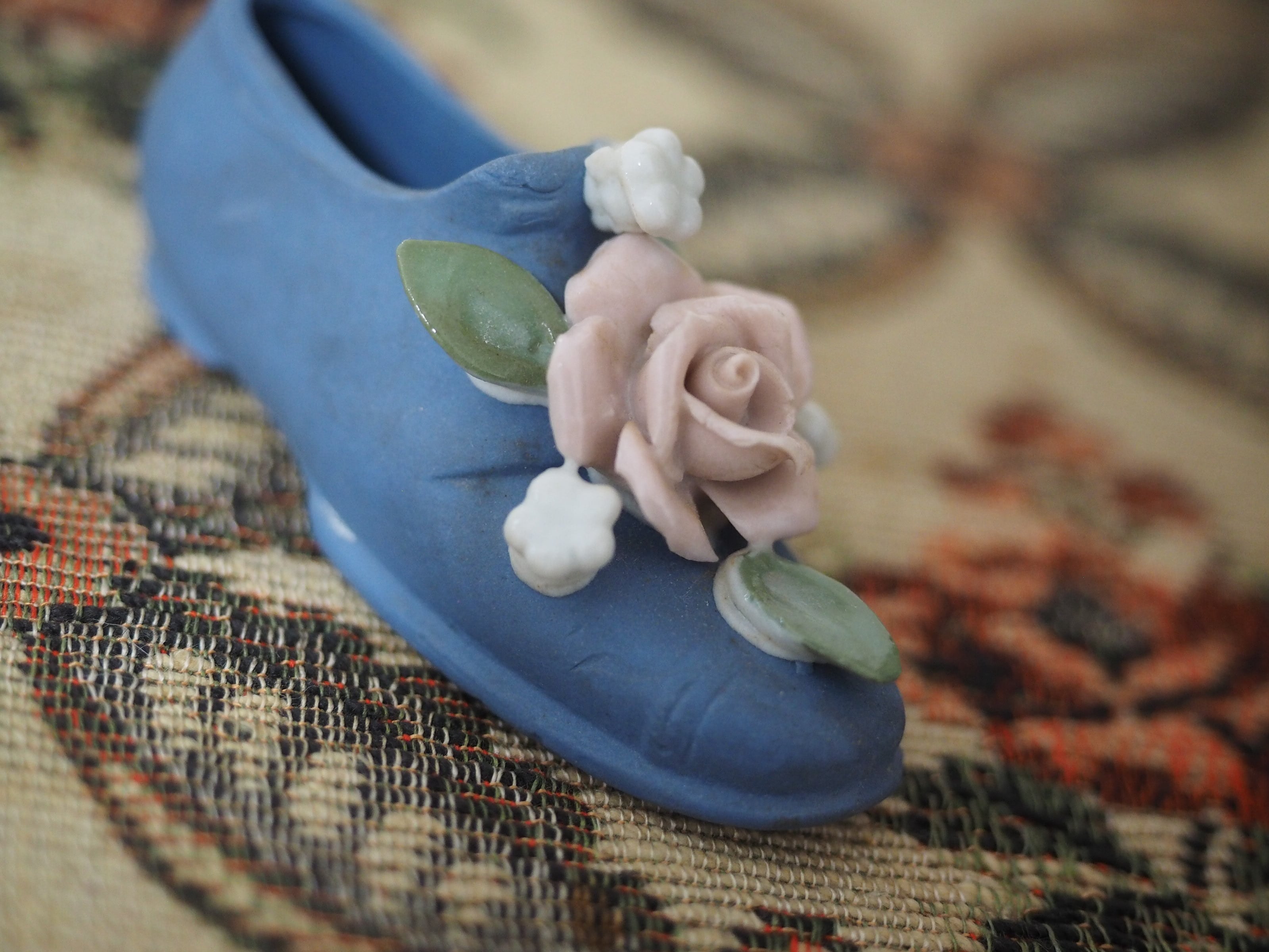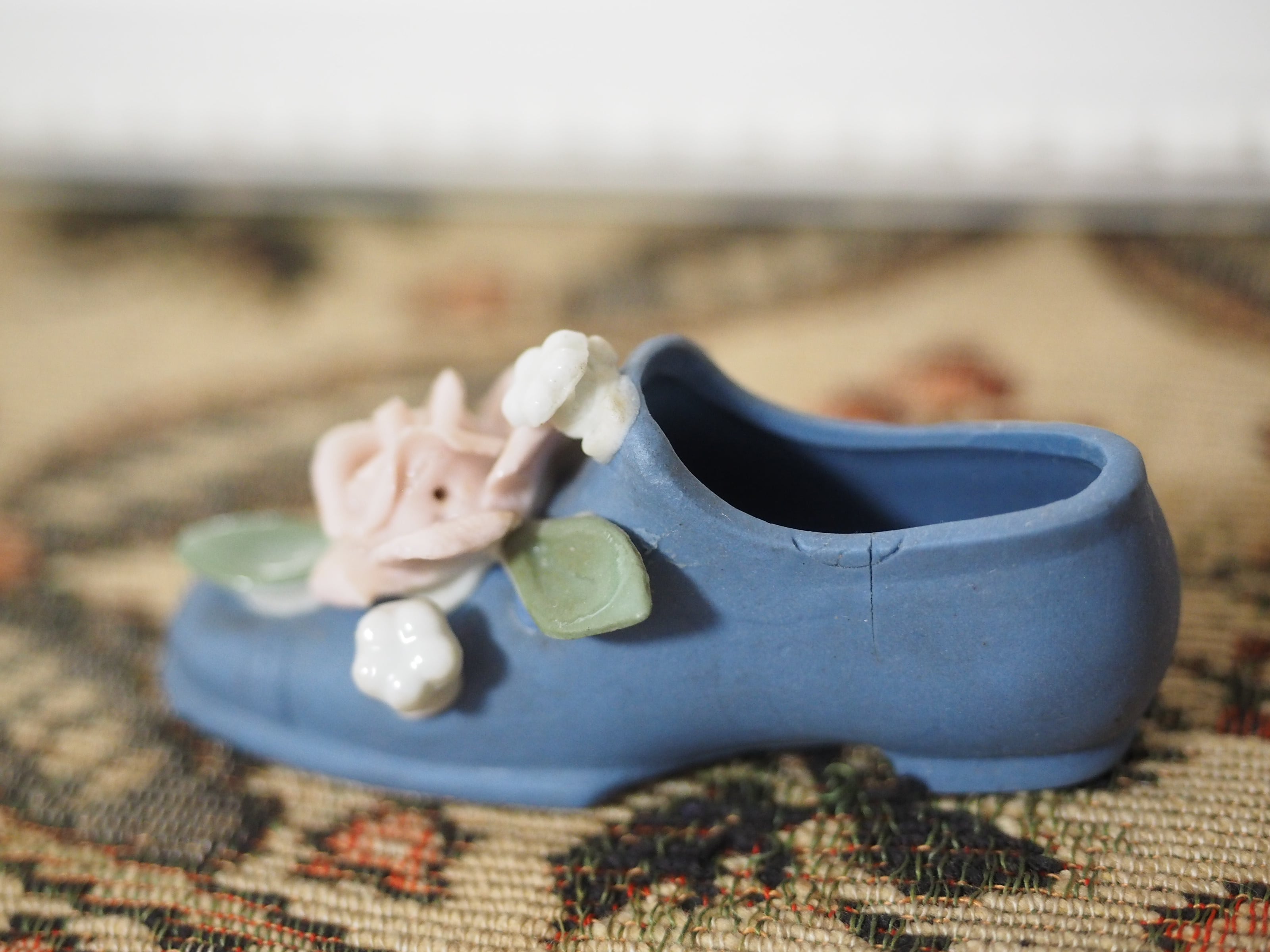 薔薇飾り 小さなブルーシューズ(キズあり)
