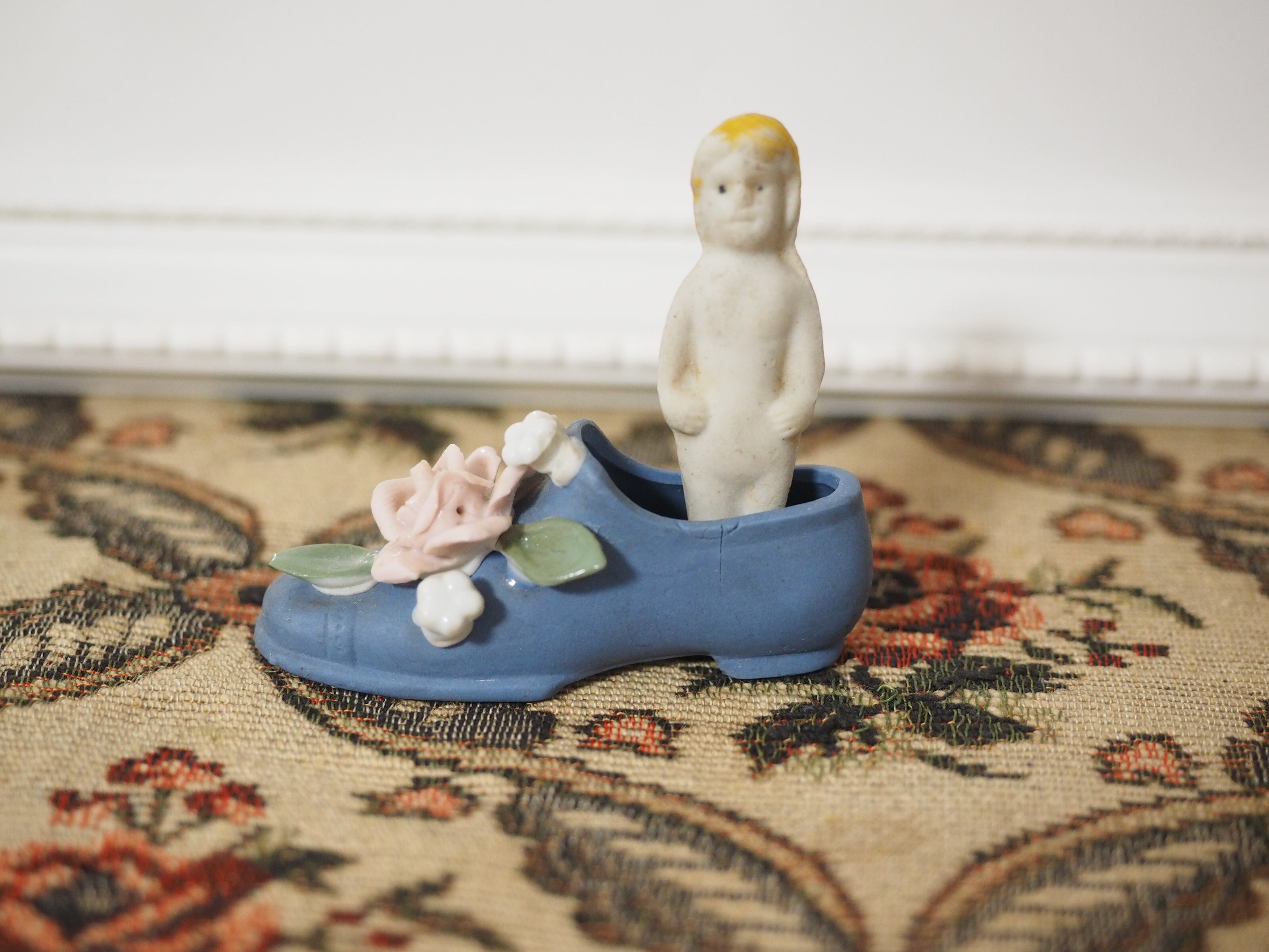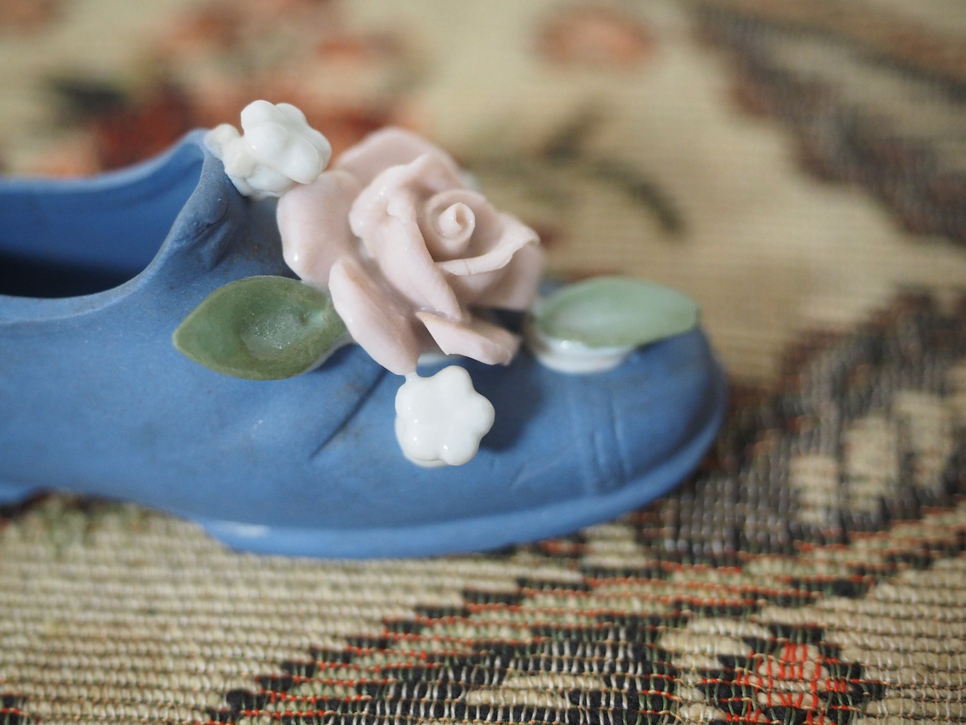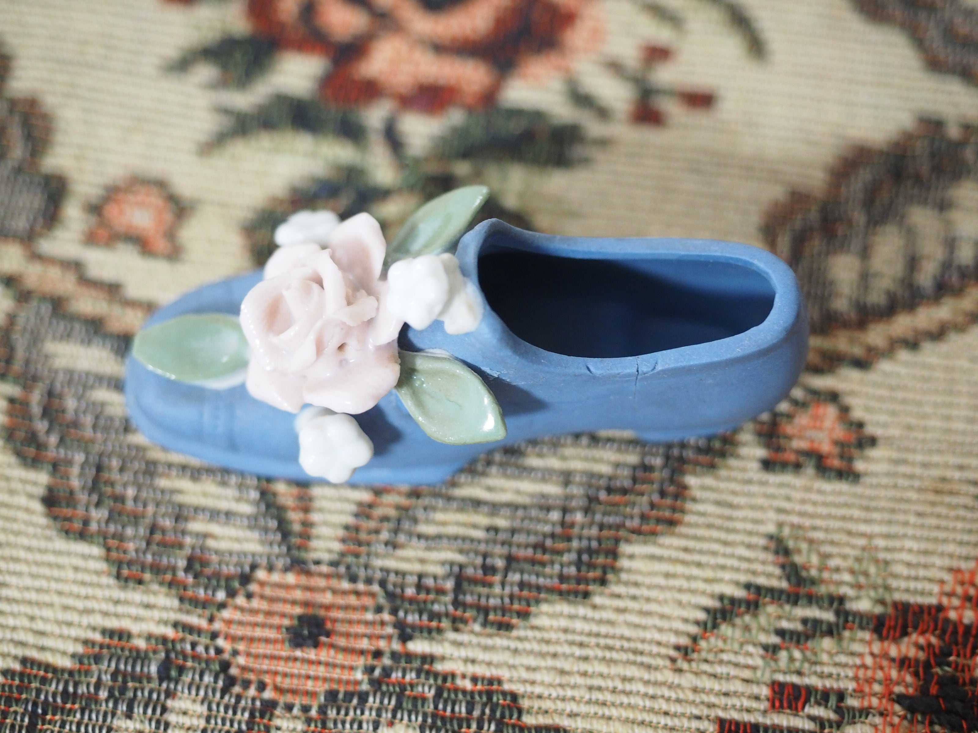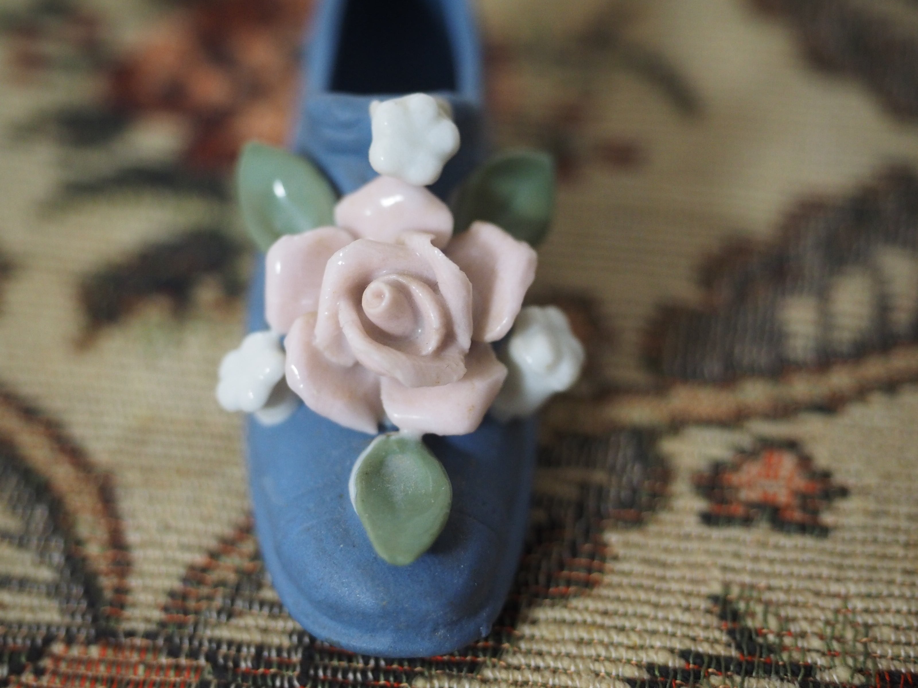 薔薇飾り 小さなブルーシューズ(キズあり)