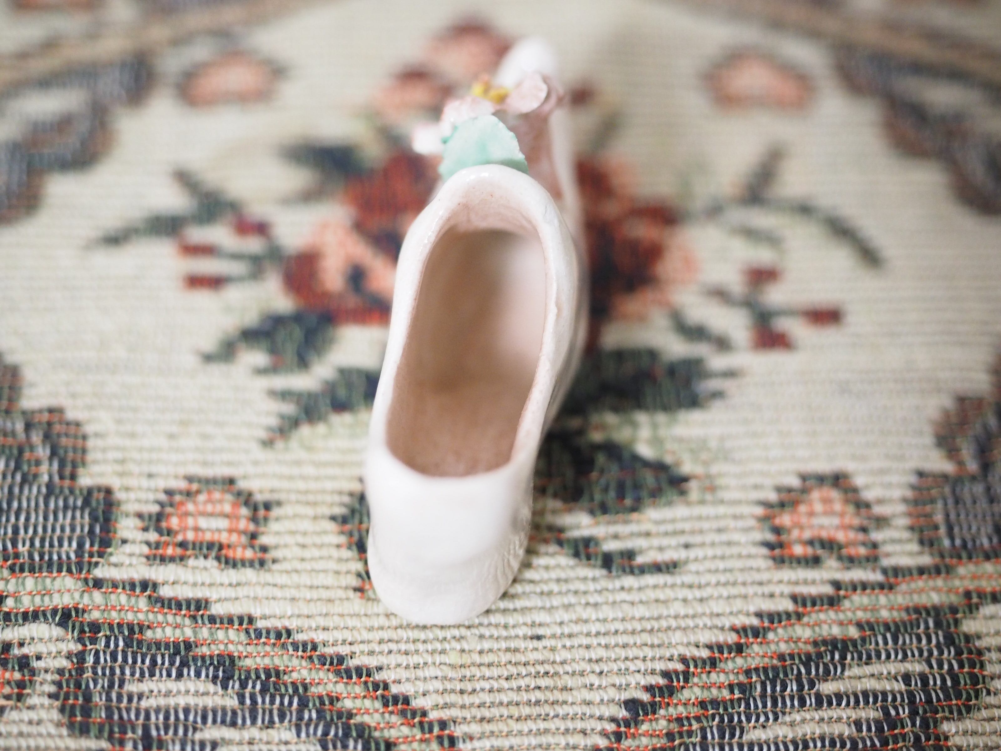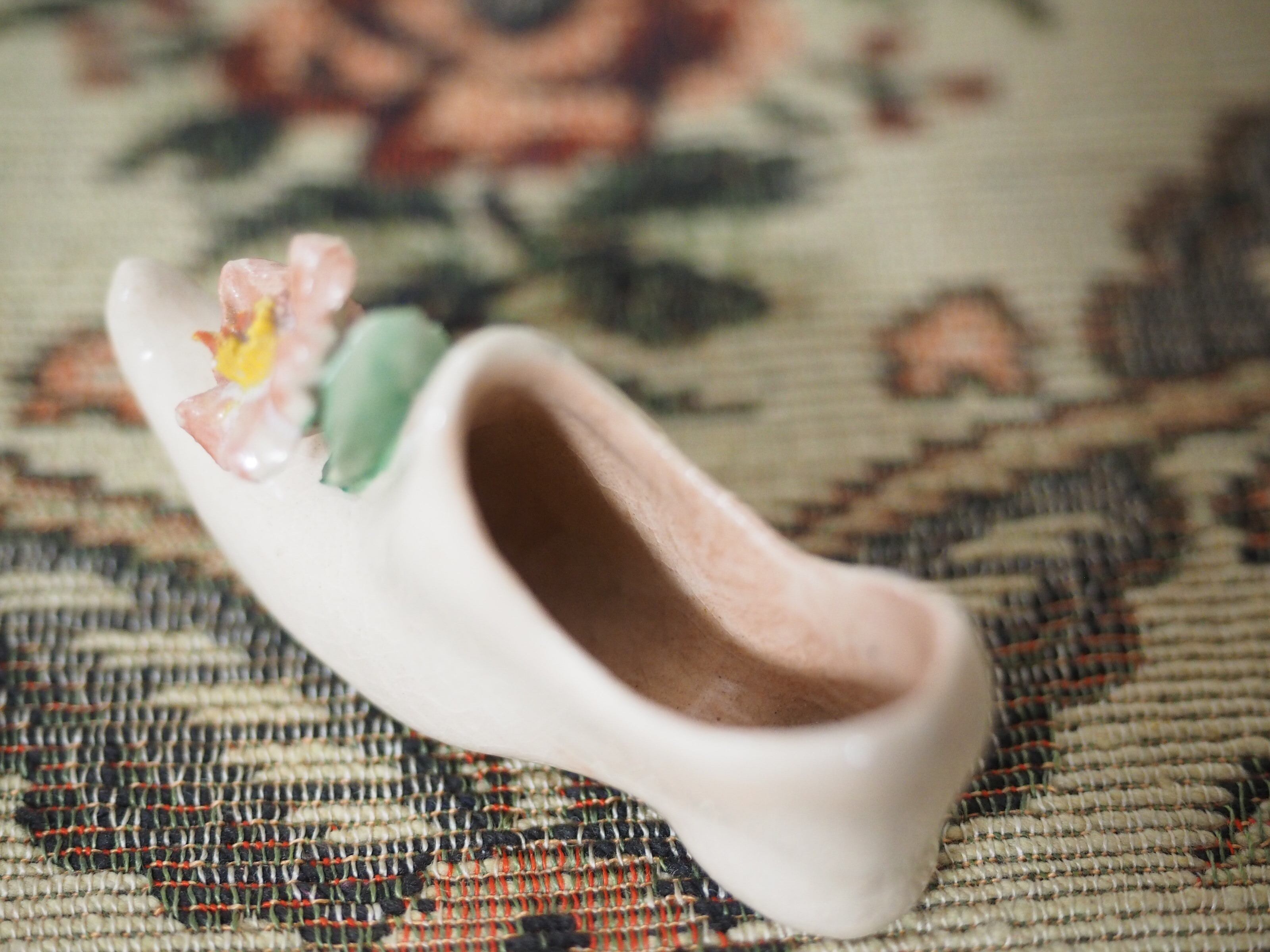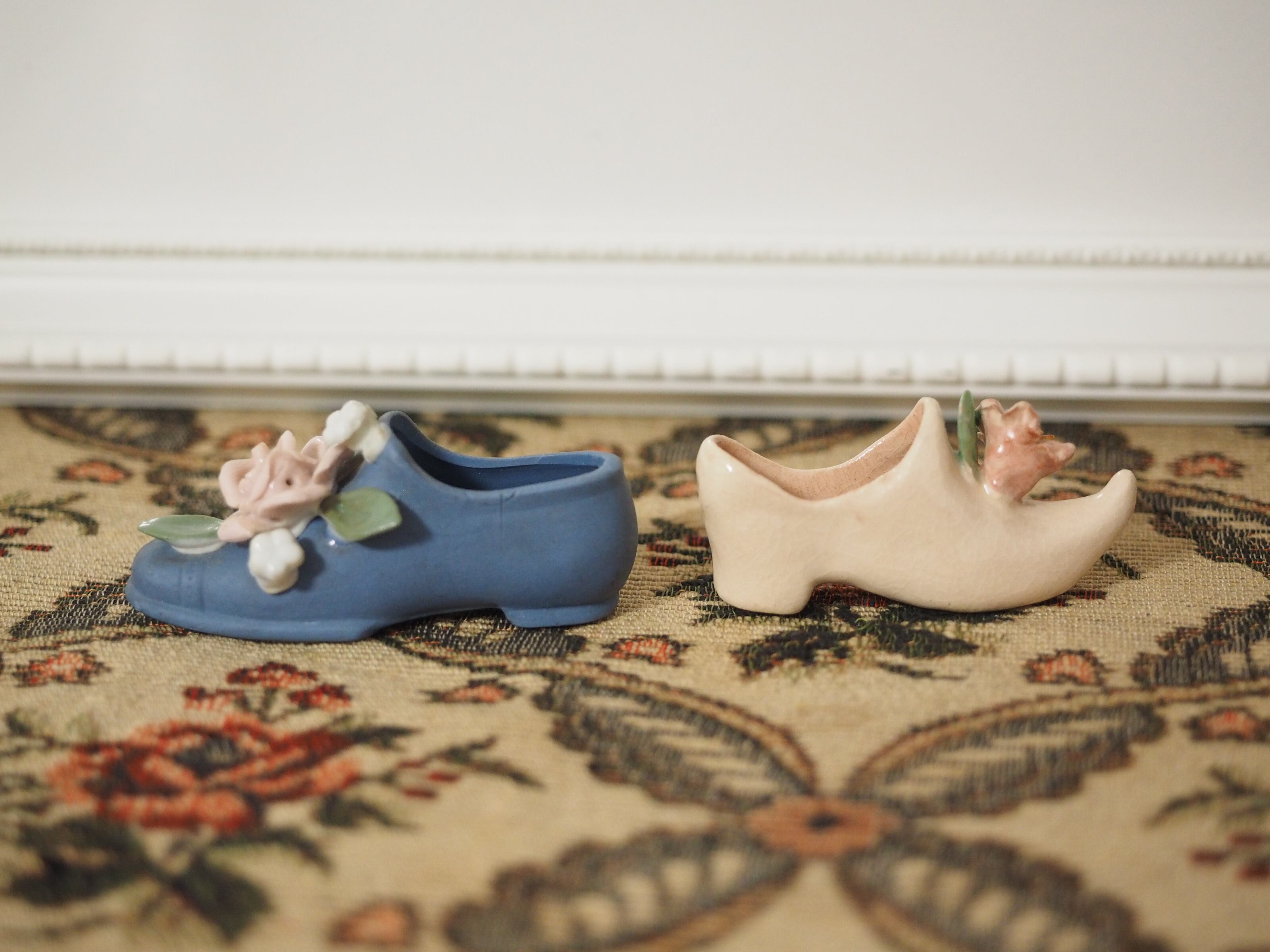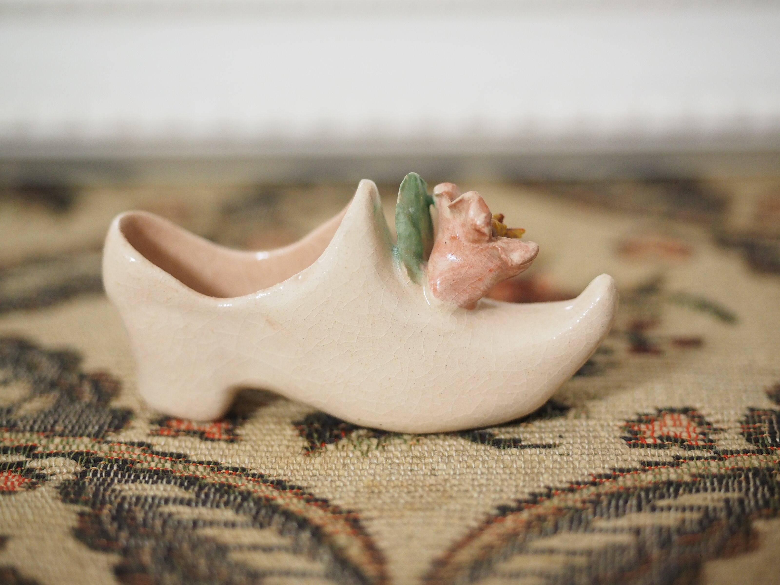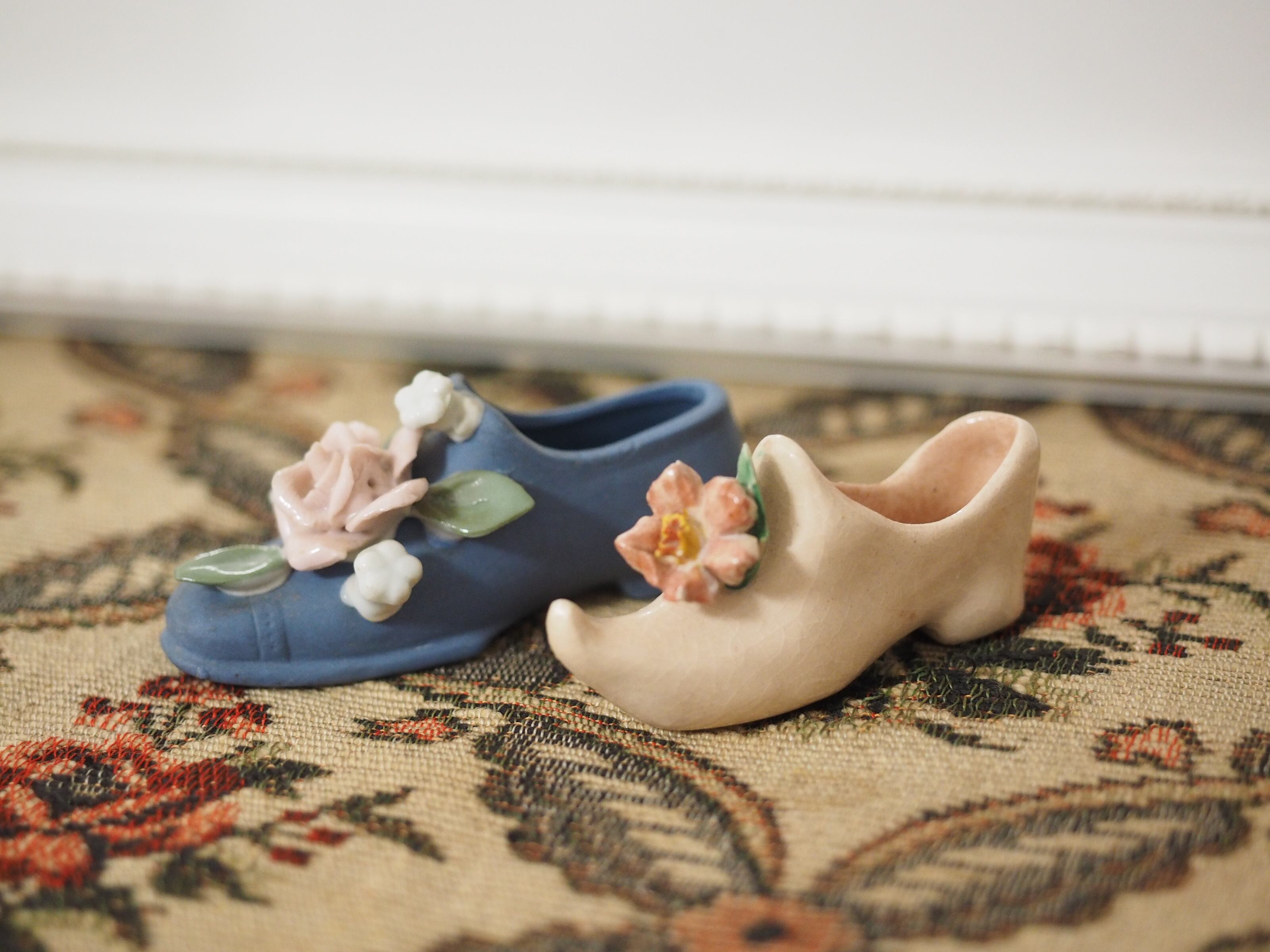 可憐な花飾り、小さな陶器製シューズ
