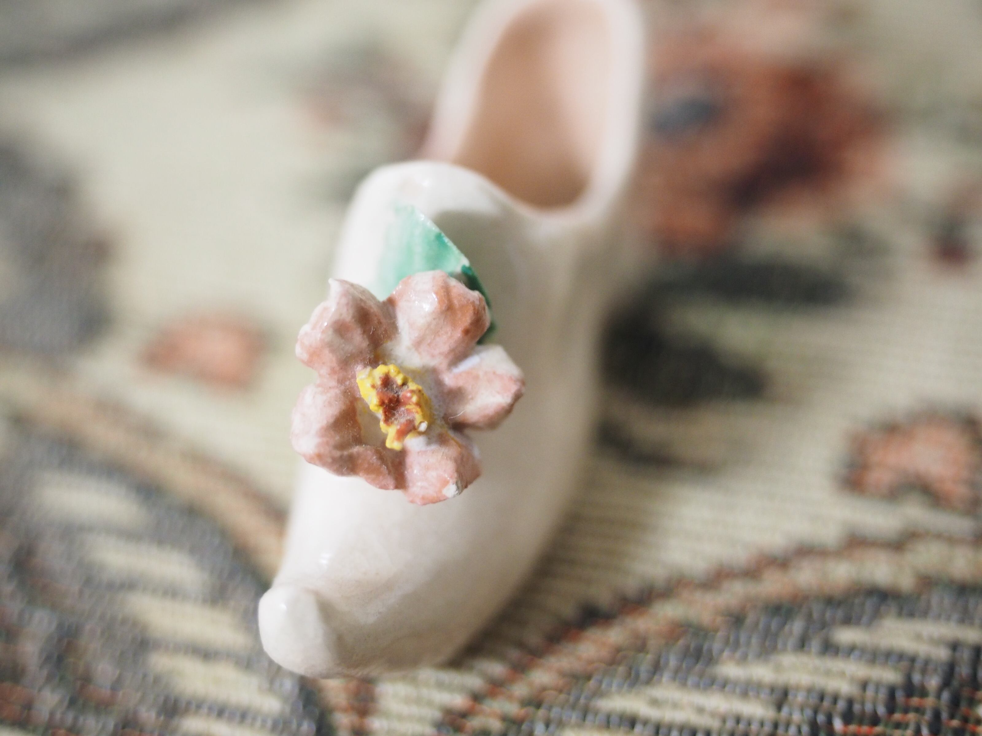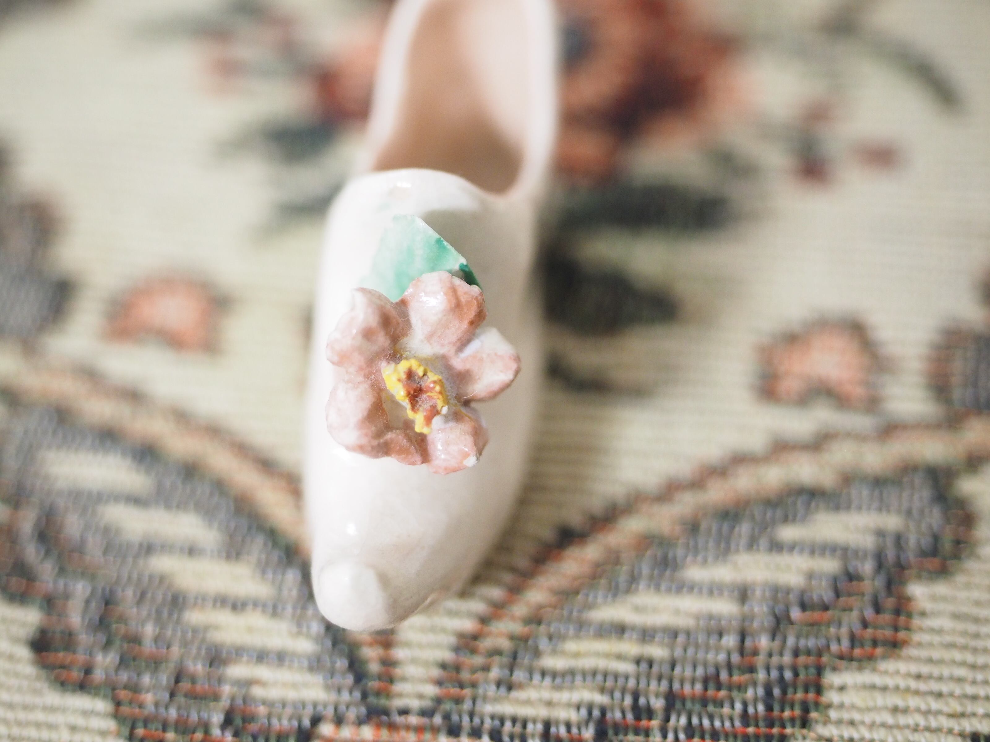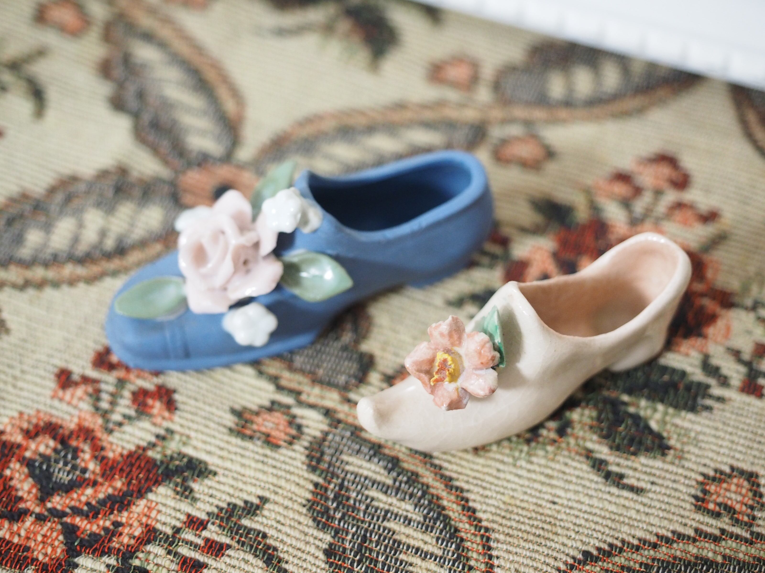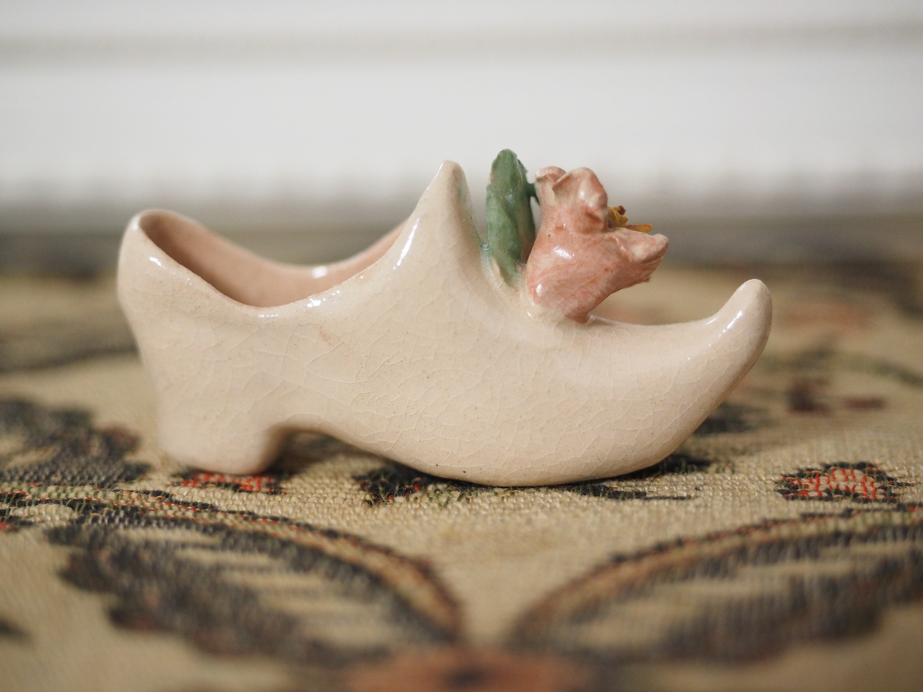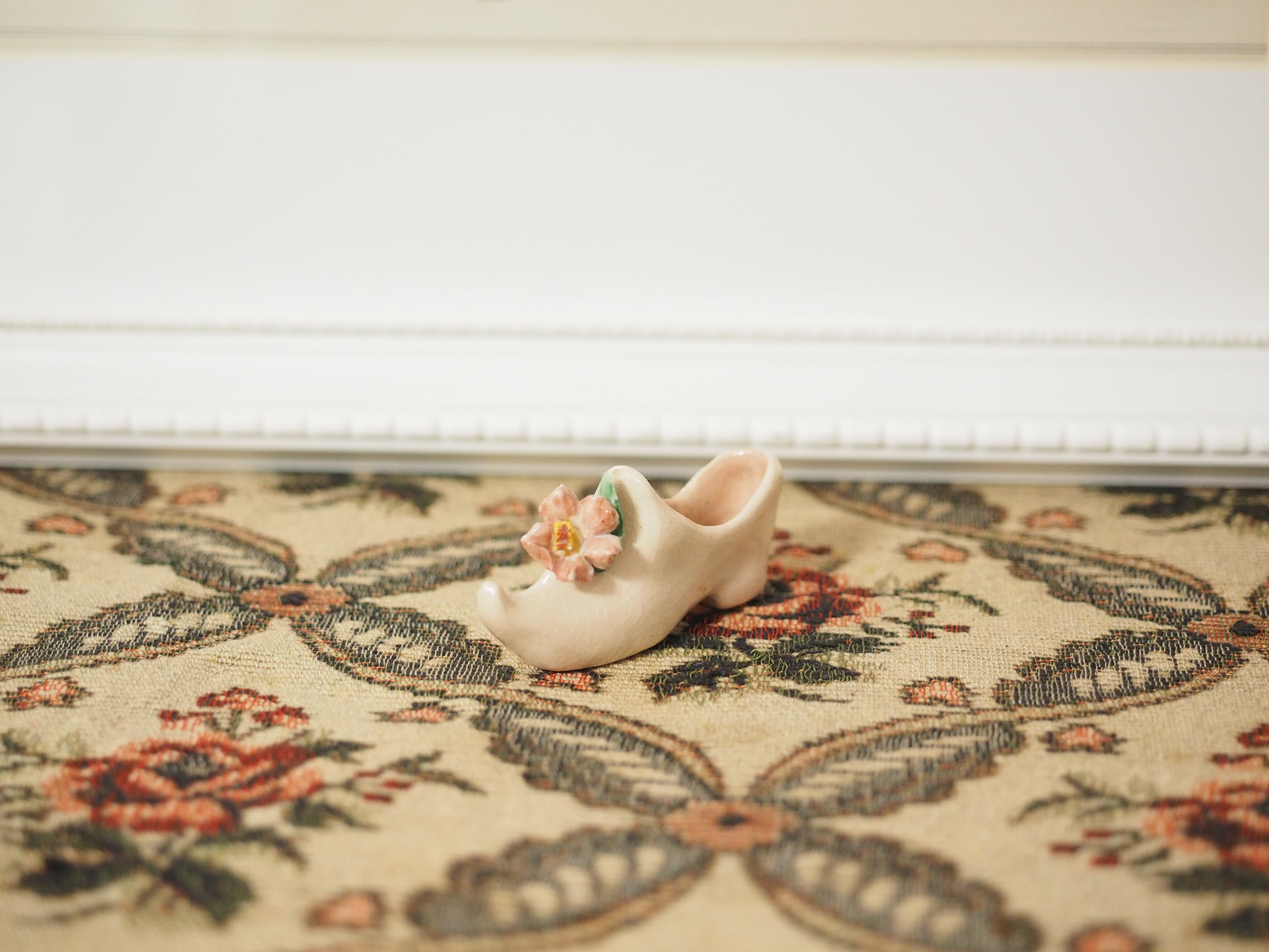 可憐な花飾り、小さな陶器製シューズ
