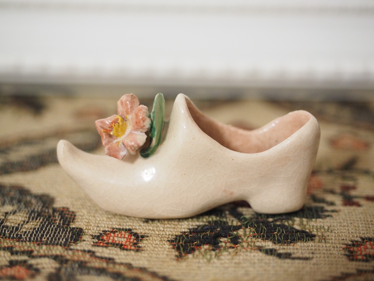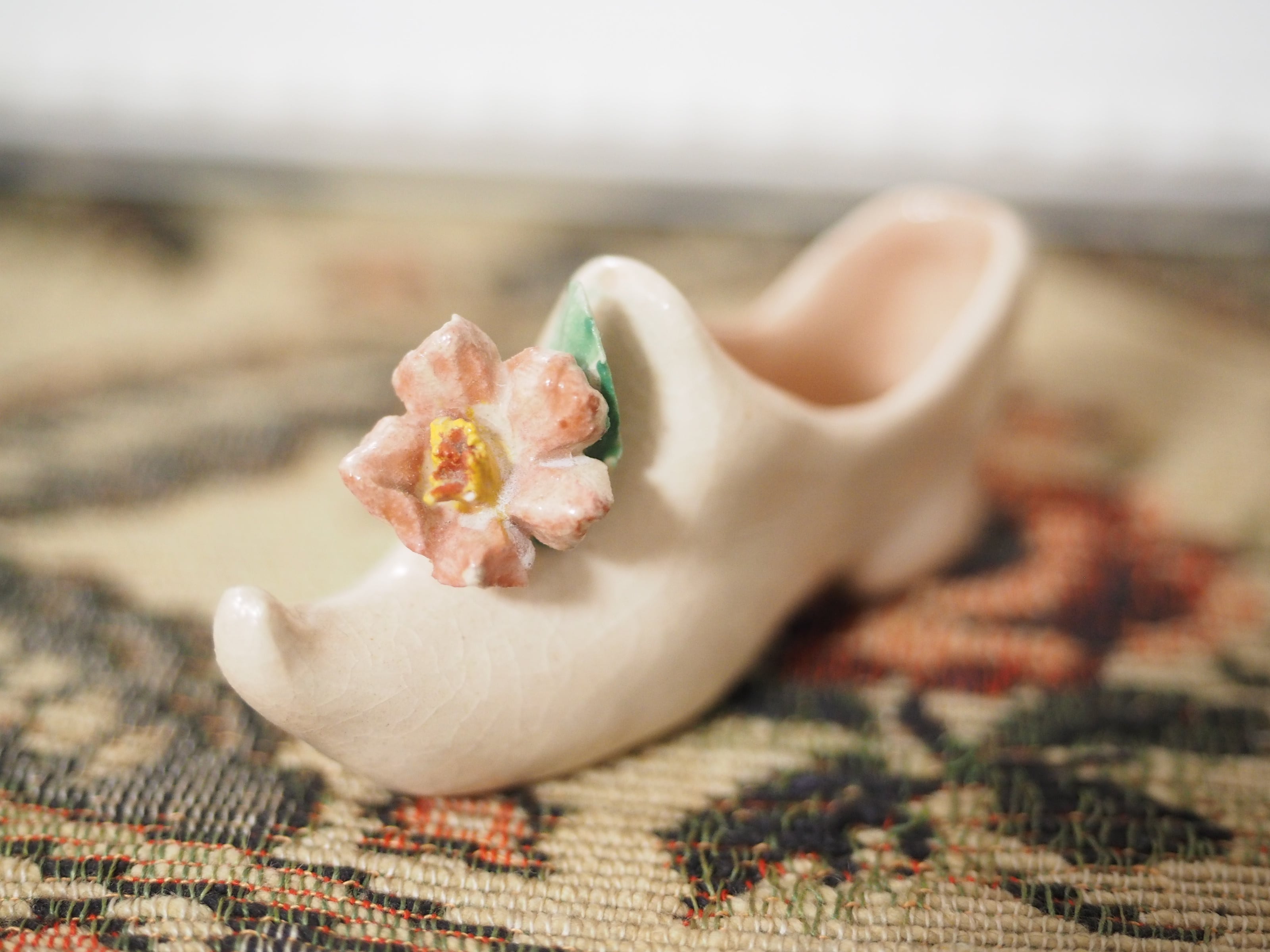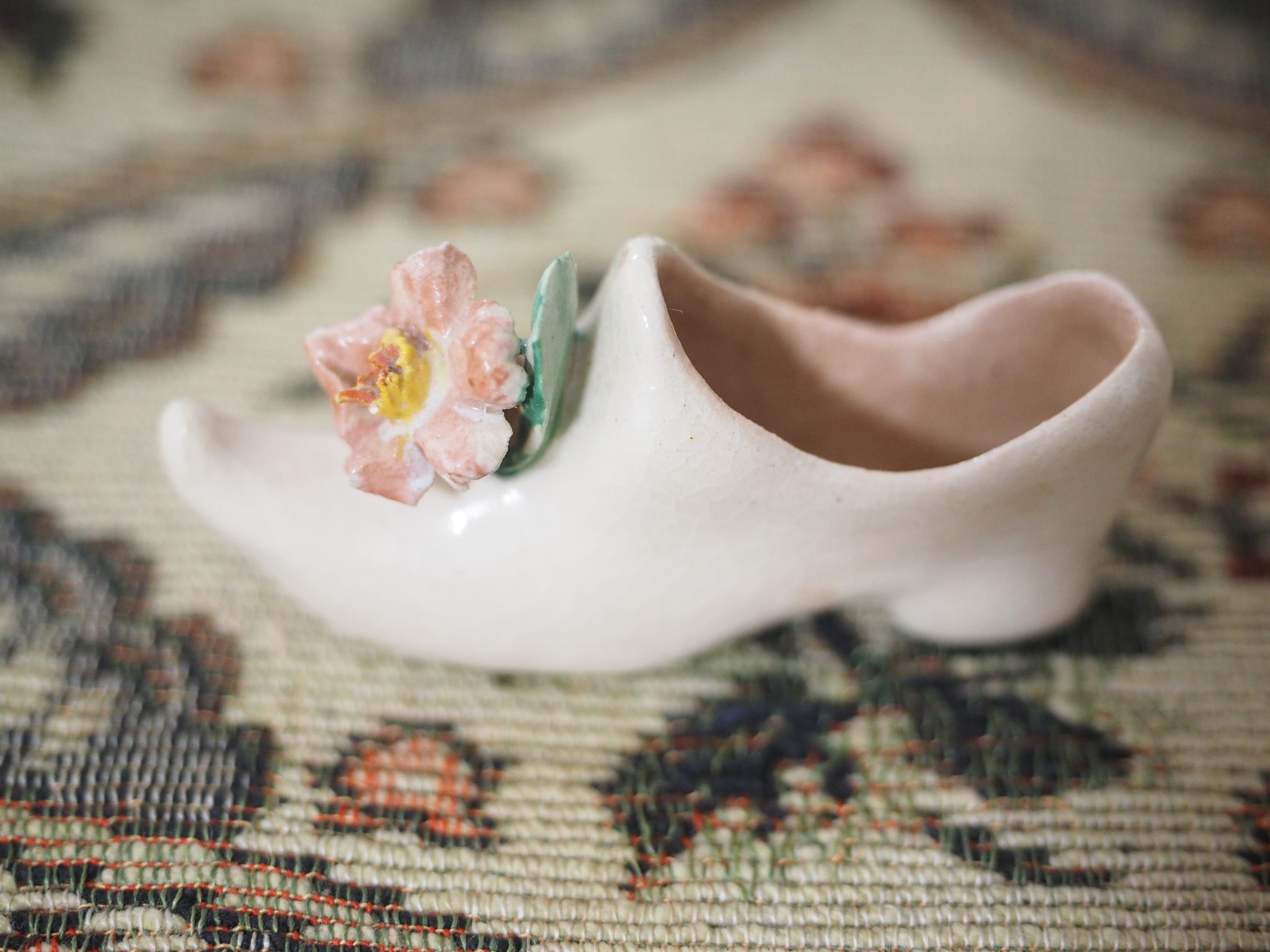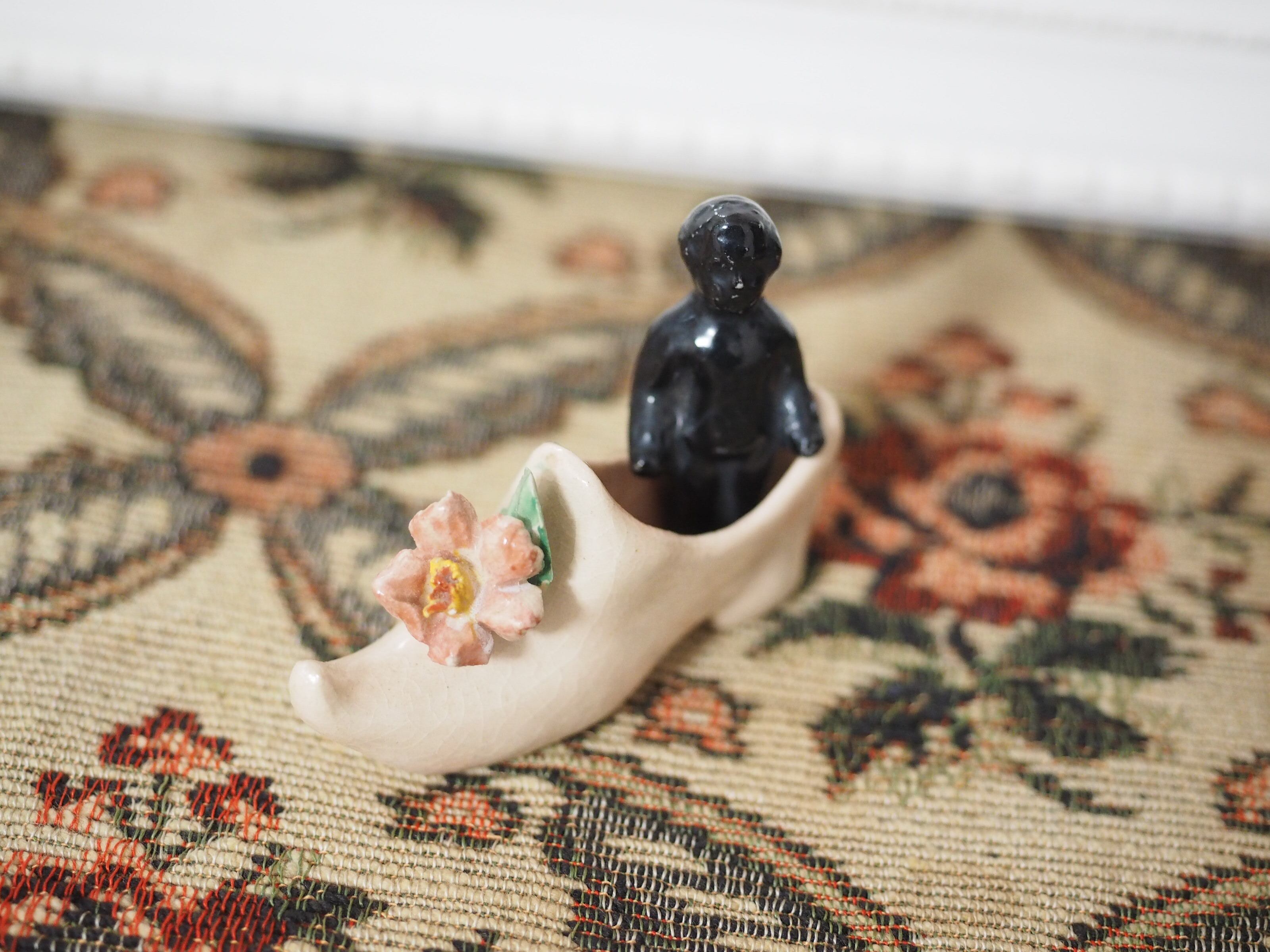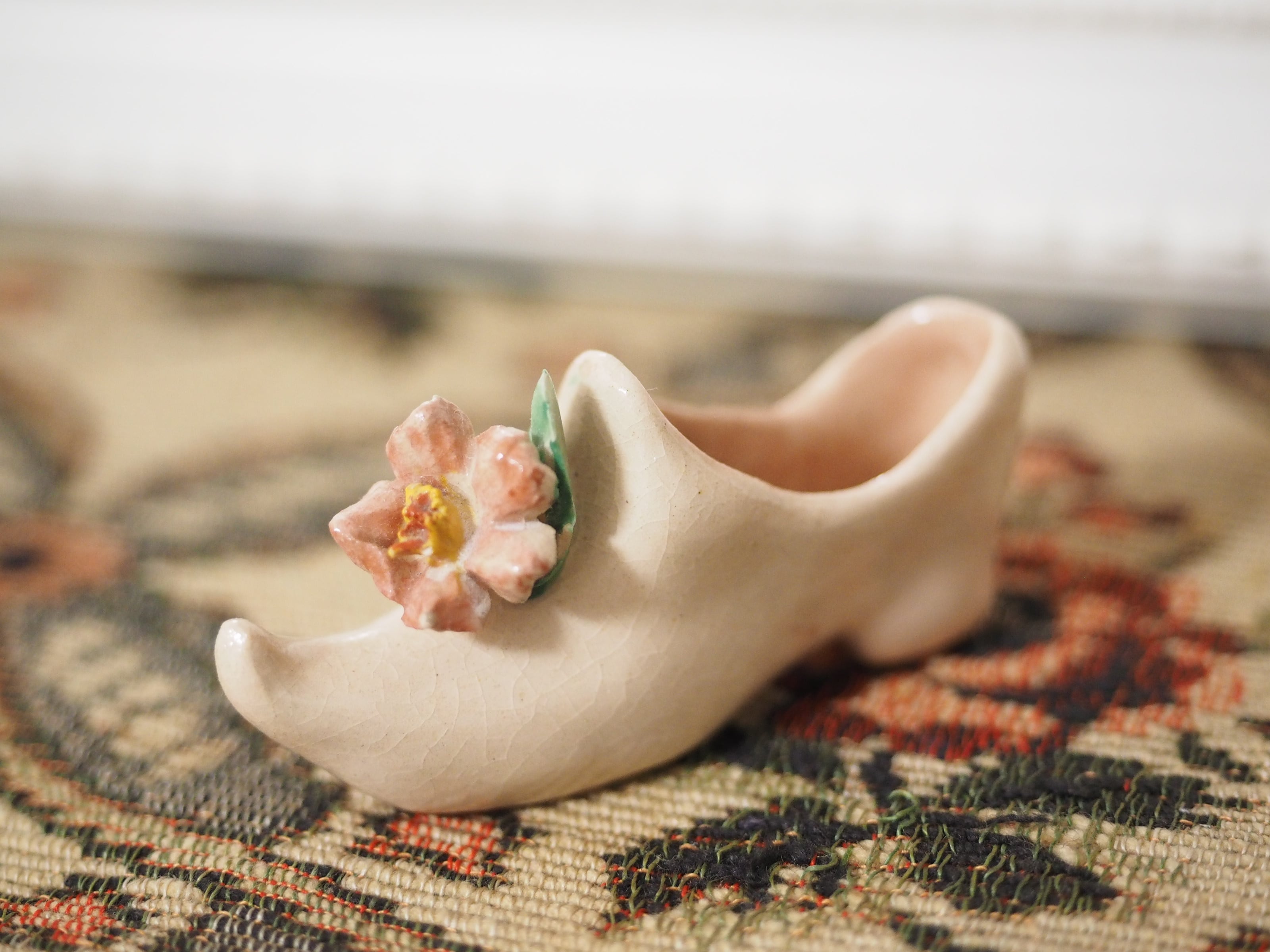 可憐な花飾り、小さな陶器製シューズ