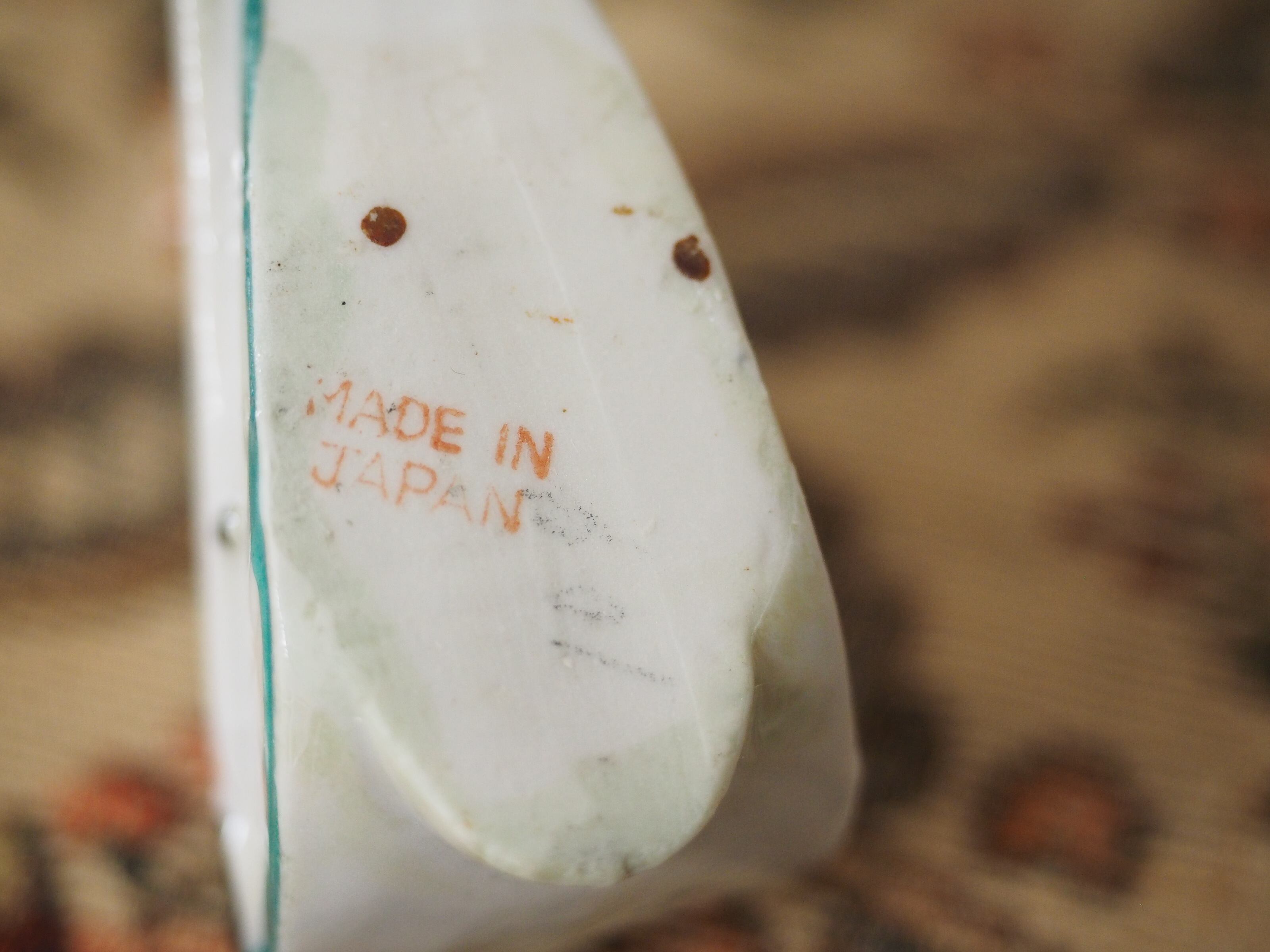 マンドリンのグリーンラインの周り、底やサイドに釉薬に薄くモスグリーンが混ざったような部分があります。