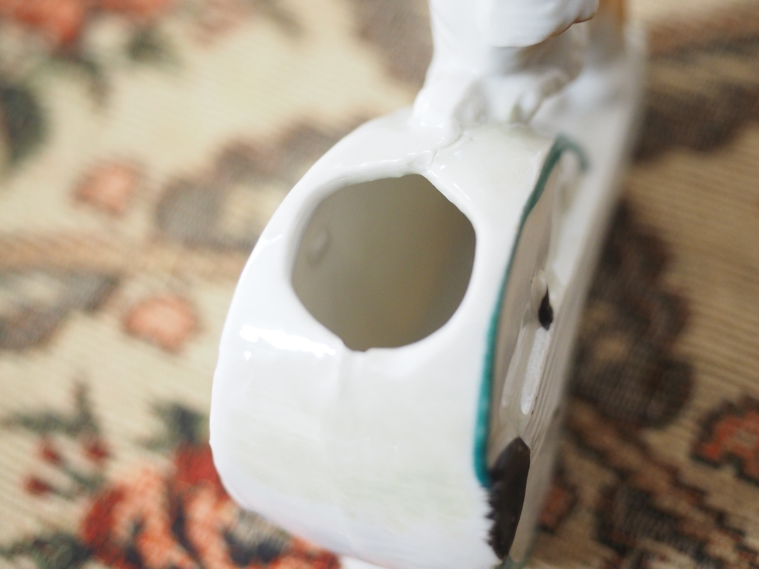 上部は内径約1.9×2㎝の穴があり、楊枝入れかと思われます。小さなお花やお人形がひょっこり頭を出してもかわいいです。