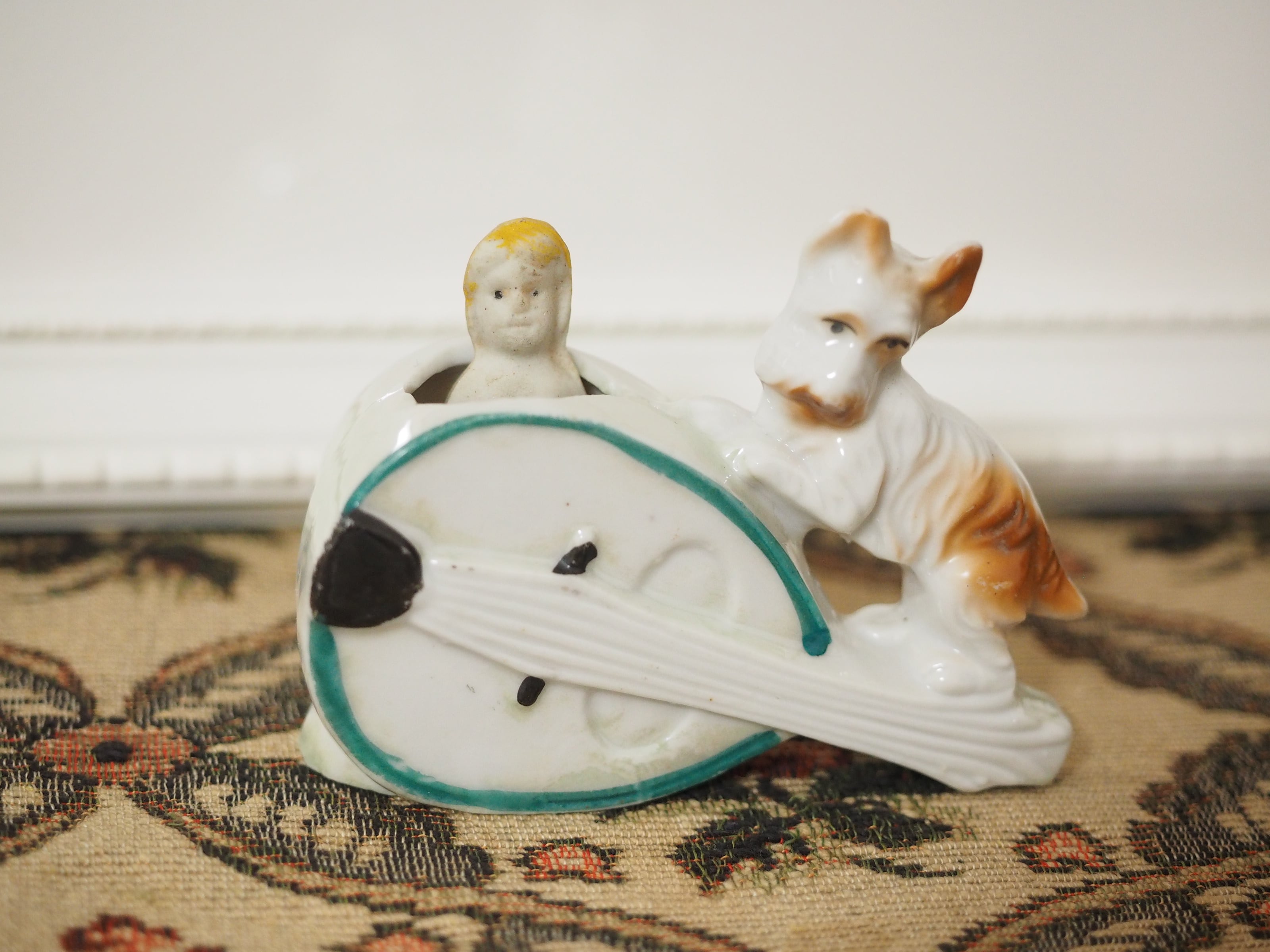 マンドリンと犬のフィギュリン(欠けあり)