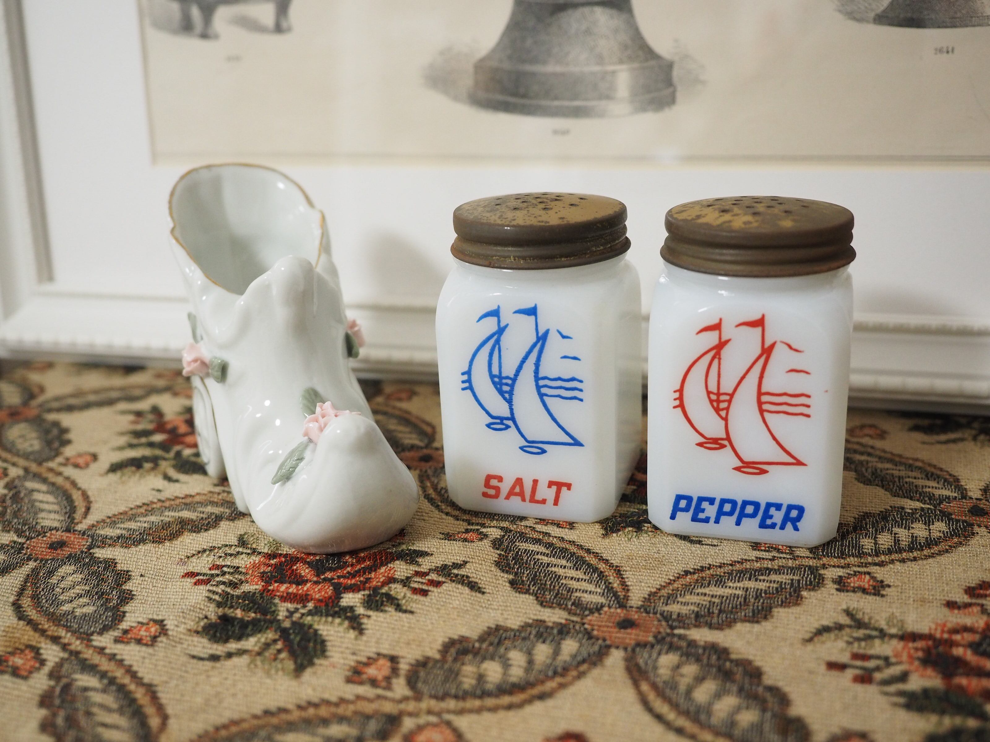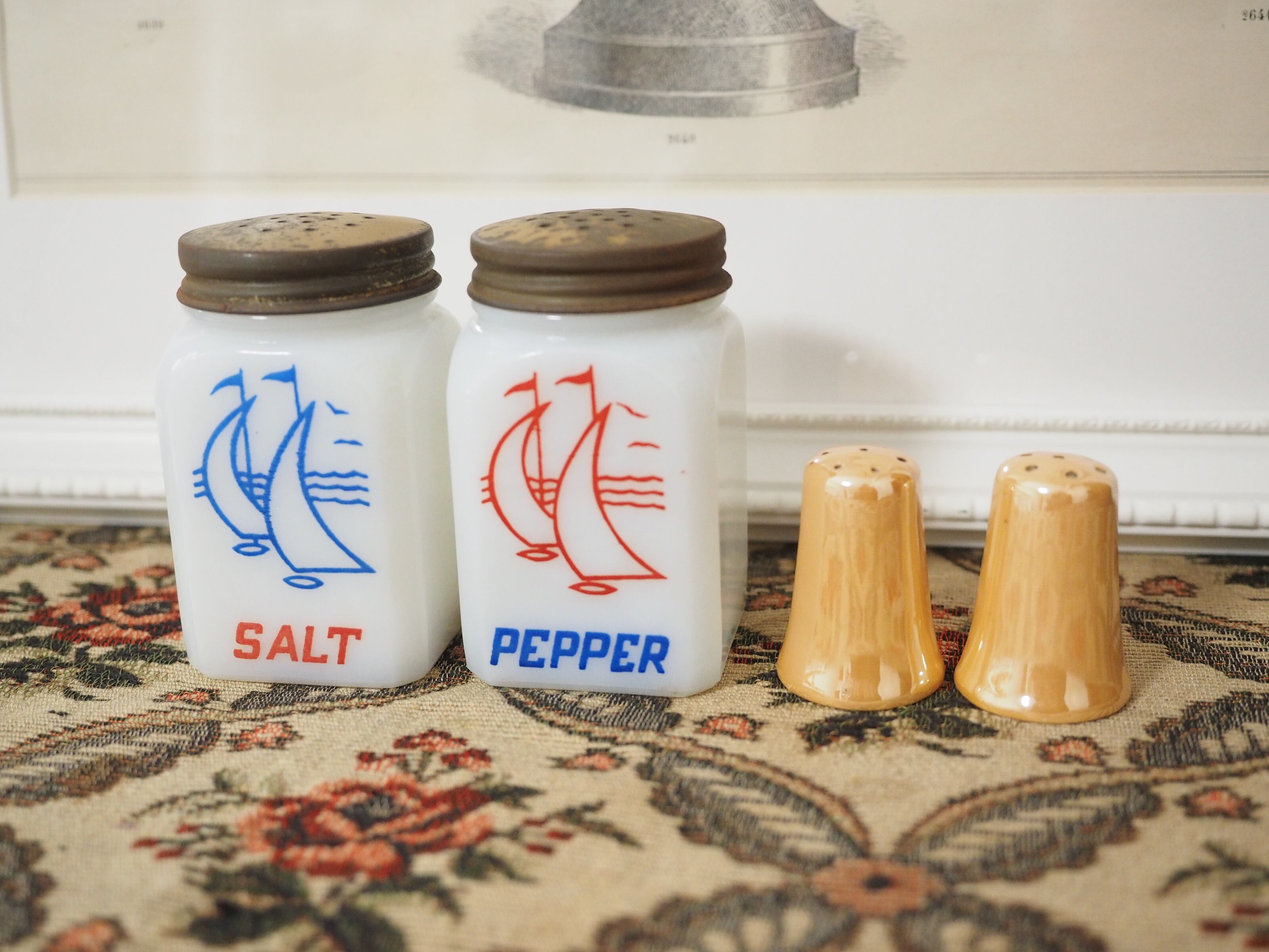 ミルクガラス ヨット柄 ソルト&ペッパー