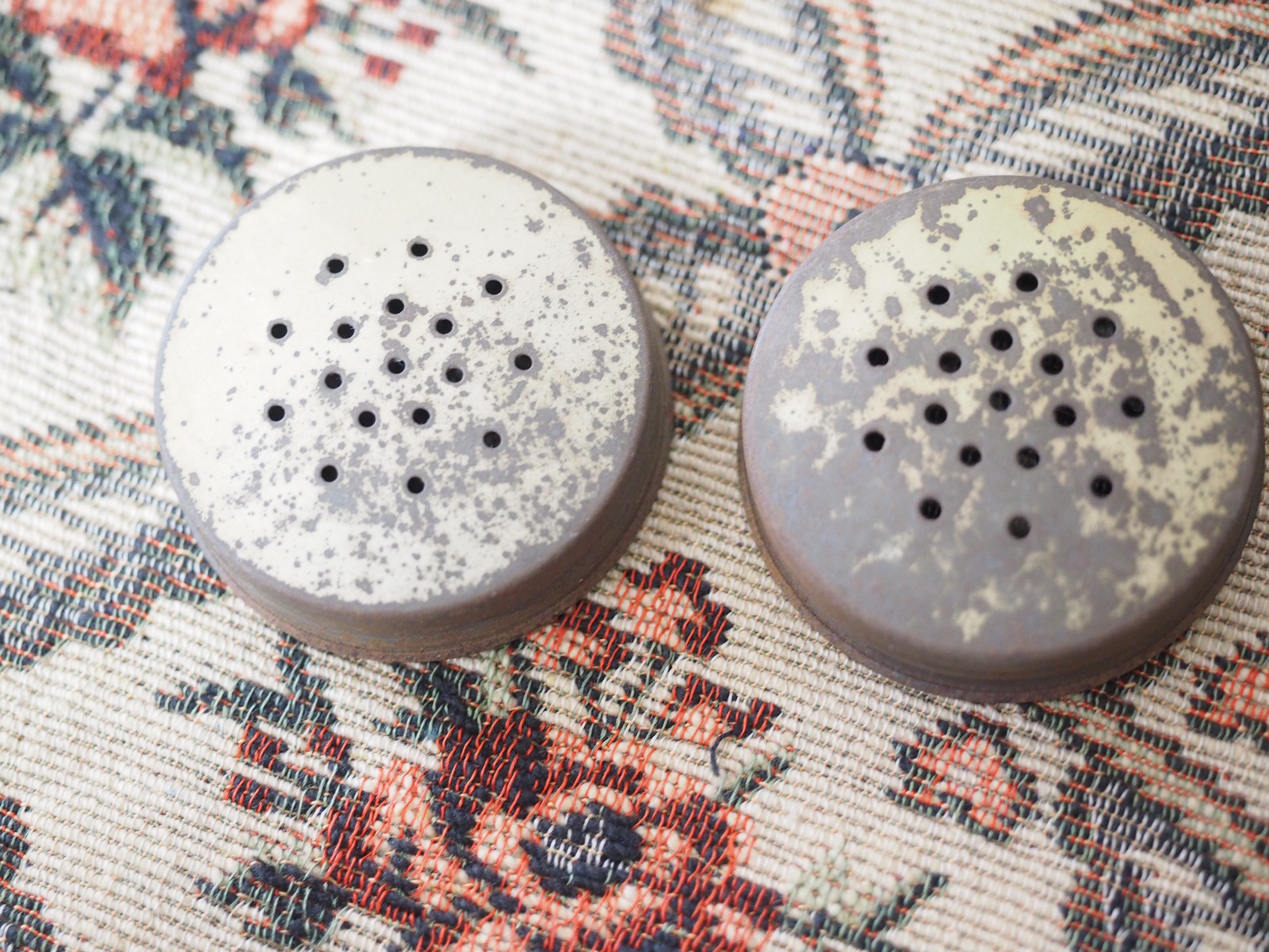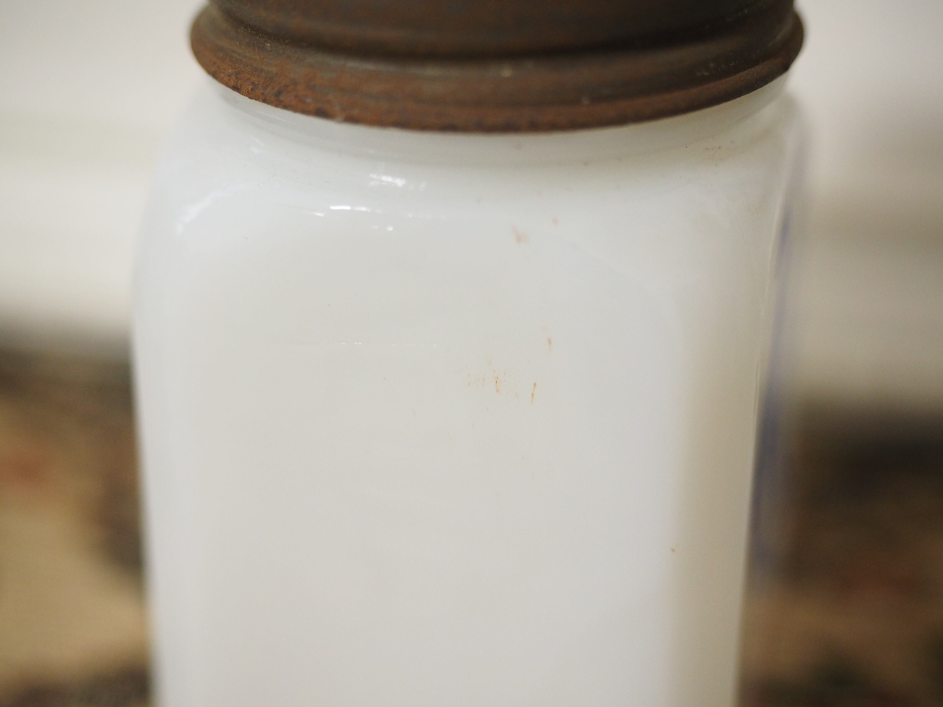 蓋に錆変色があり、ネジの溝、本体の蓋の下部に色移りがあります。