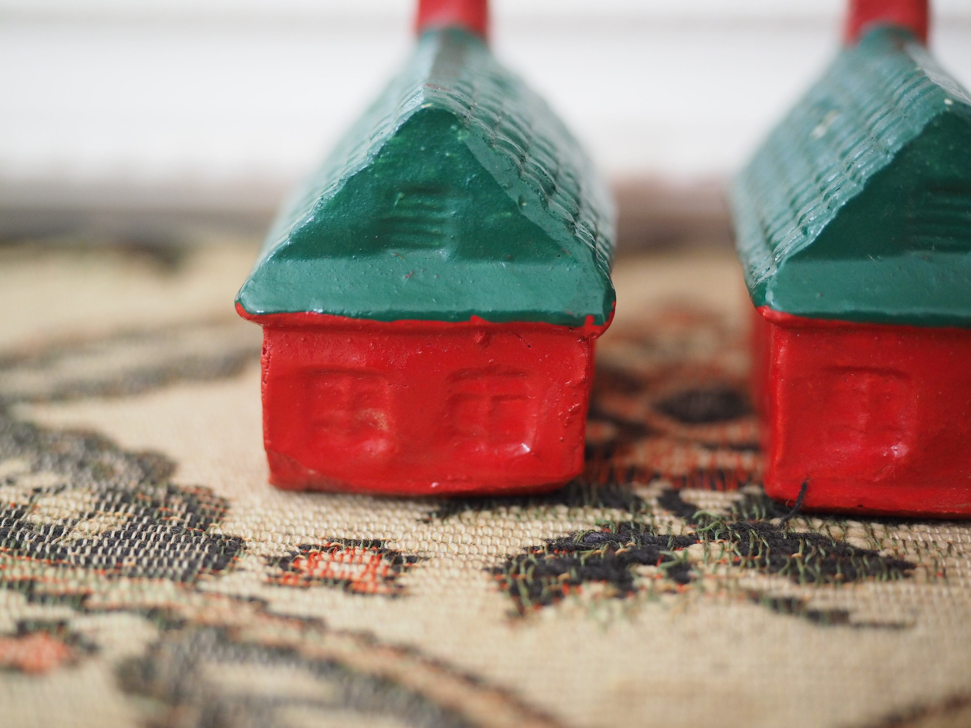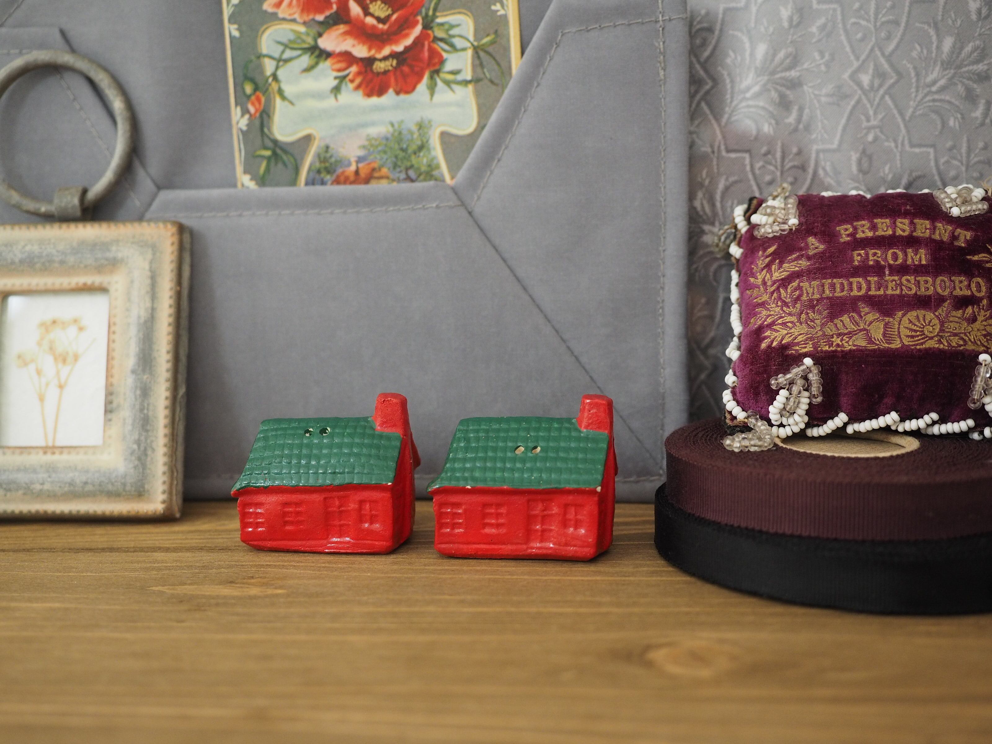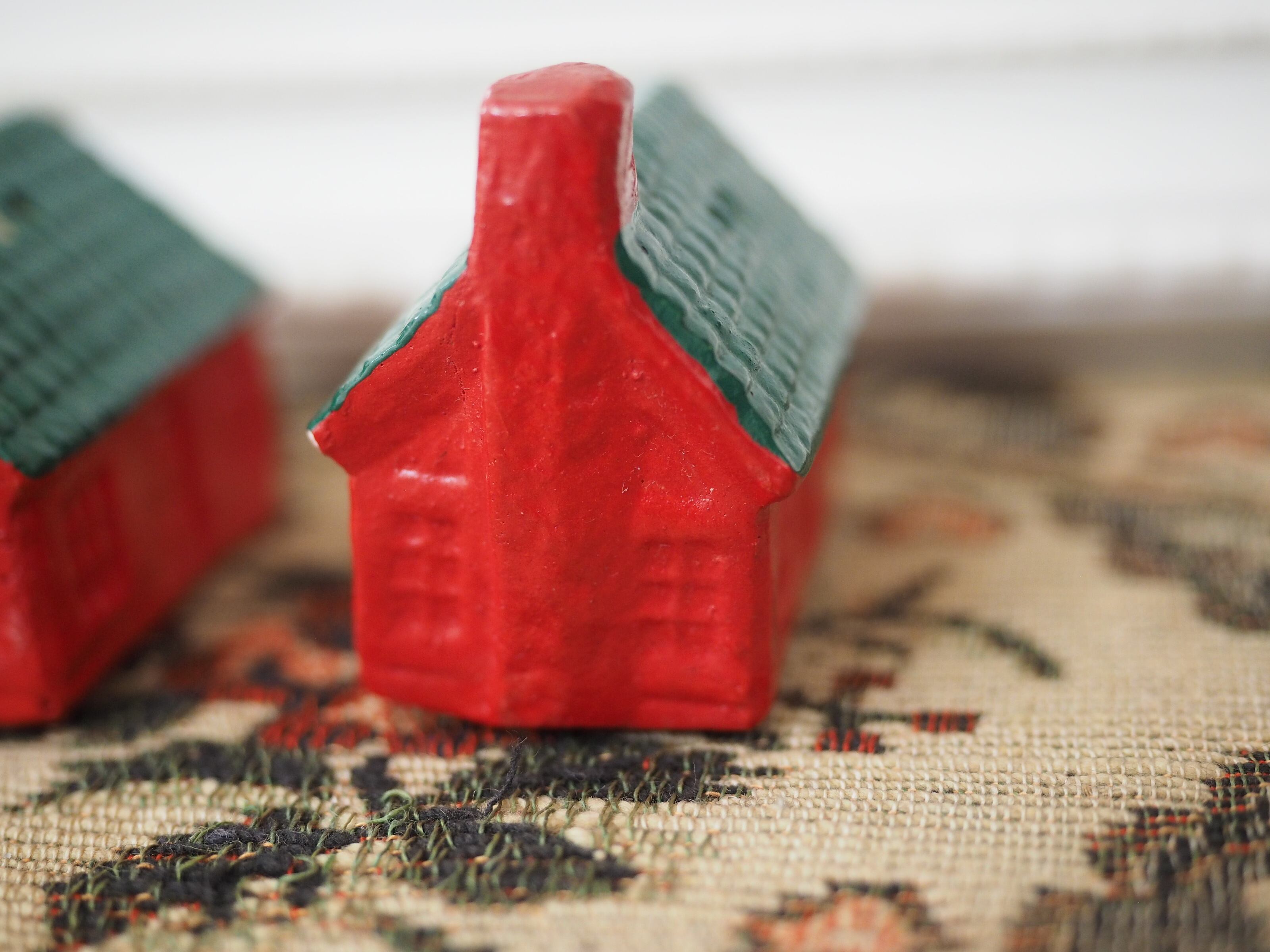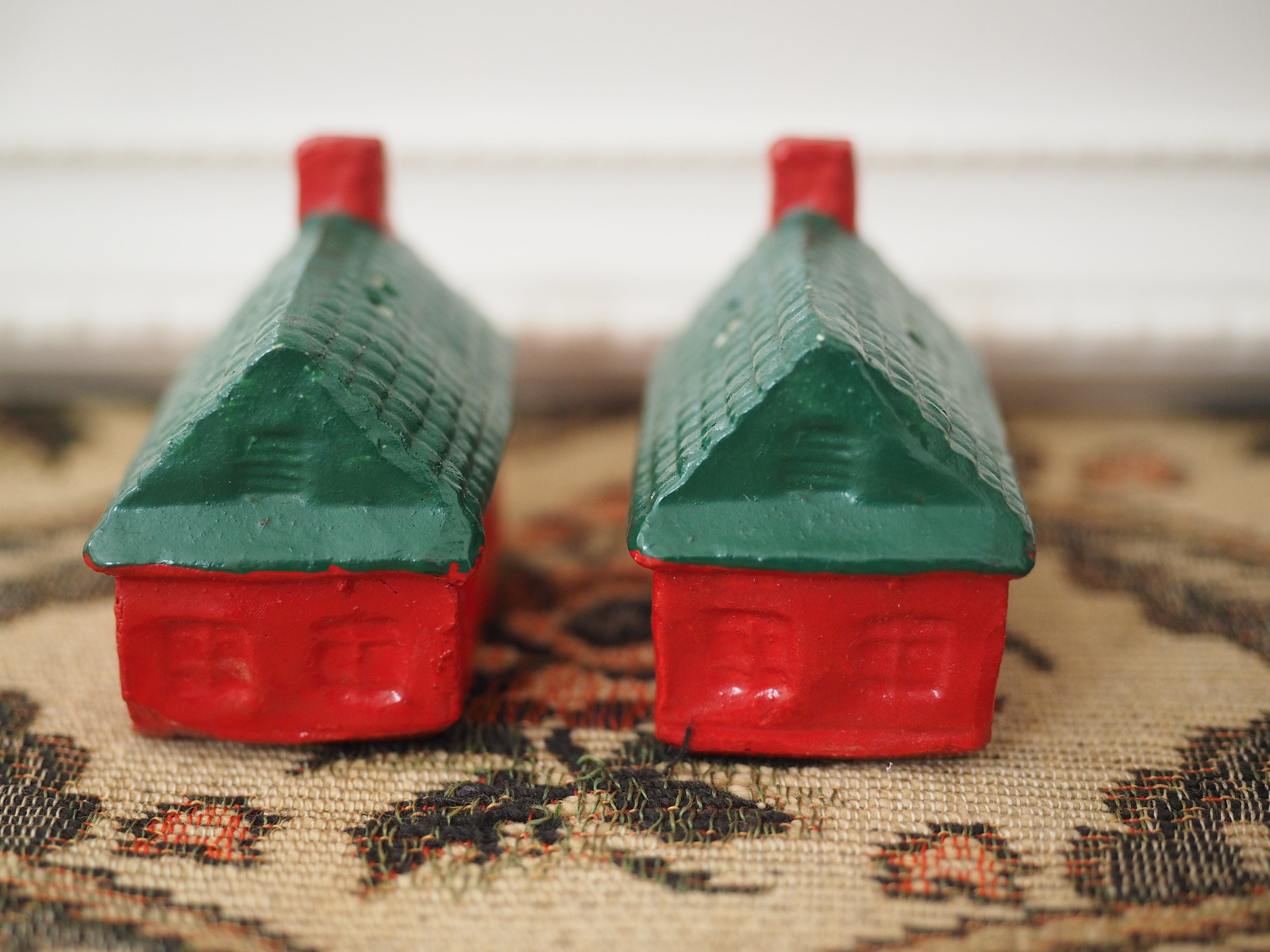 なんともかわいらしい形に、ぽってりと塗られた赤と緑の屋根が素敵なおうちのソルト&ペッパーです。