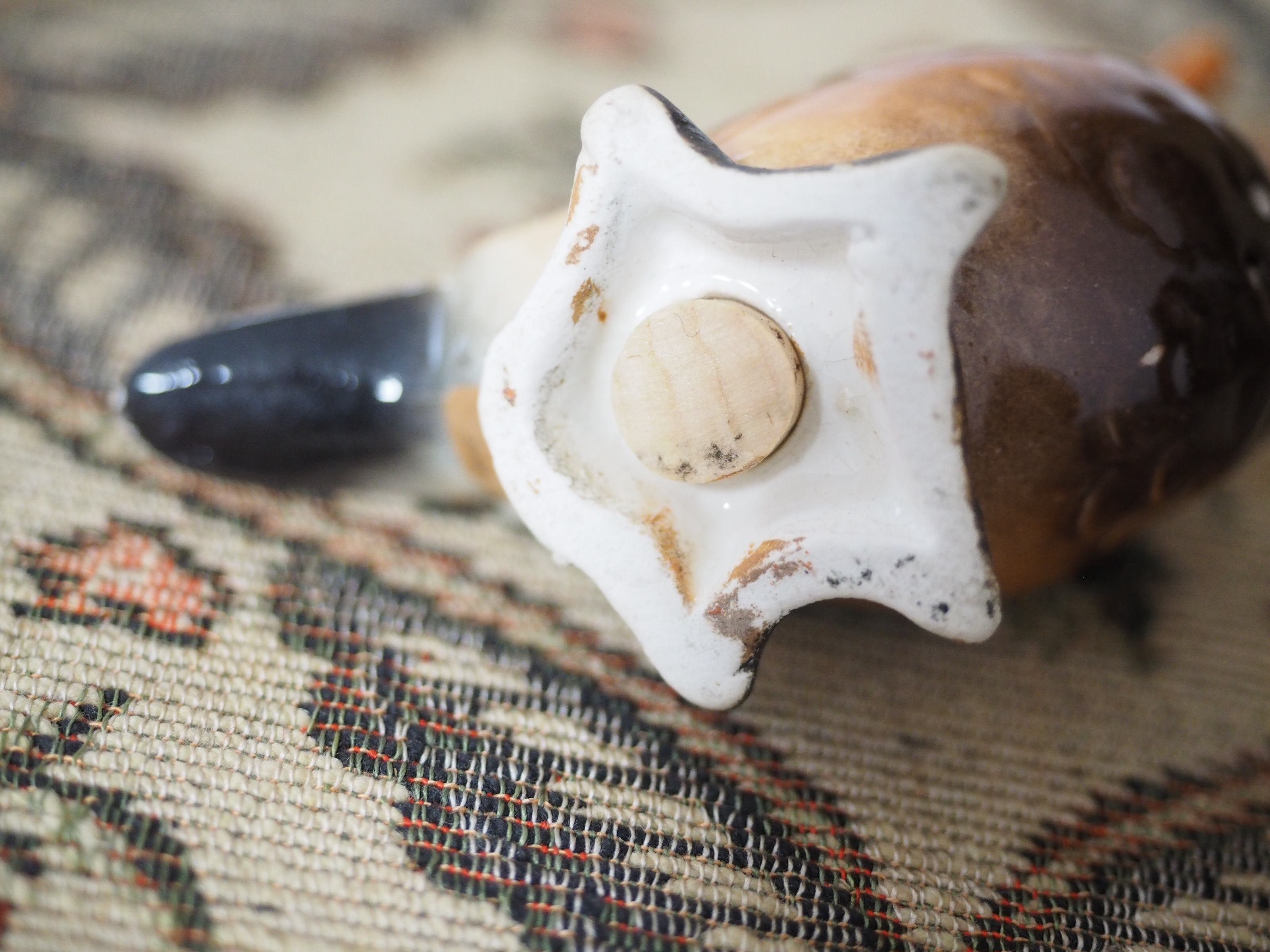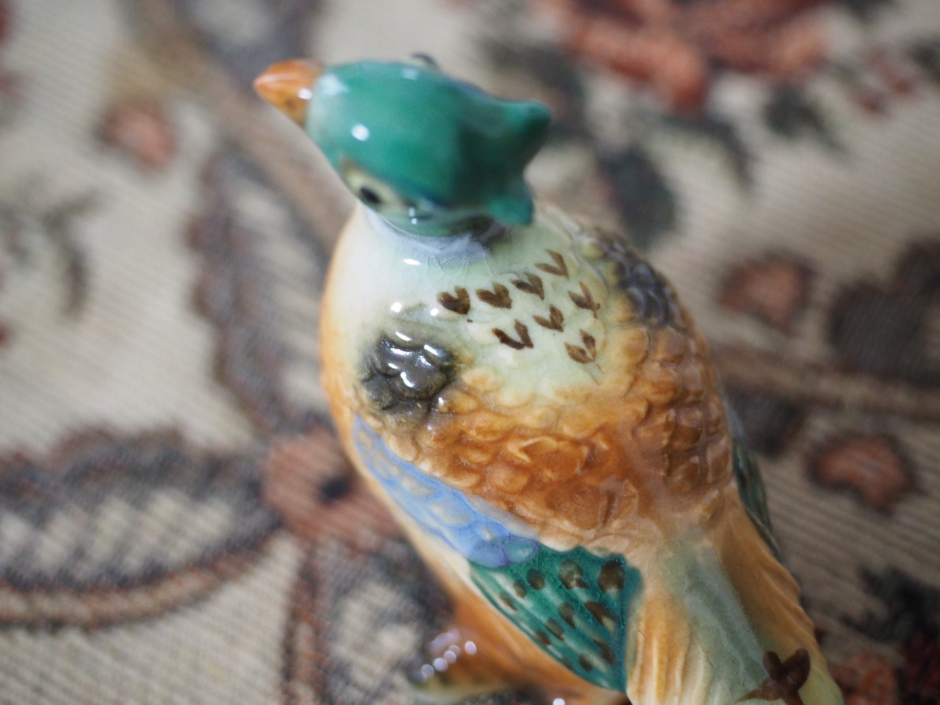 メスのお腹にペイントの欠け、しっぽのあたりに釉薬が途切れたような小さな表面穴がありますが、他はとてもきれいで状態良好です。