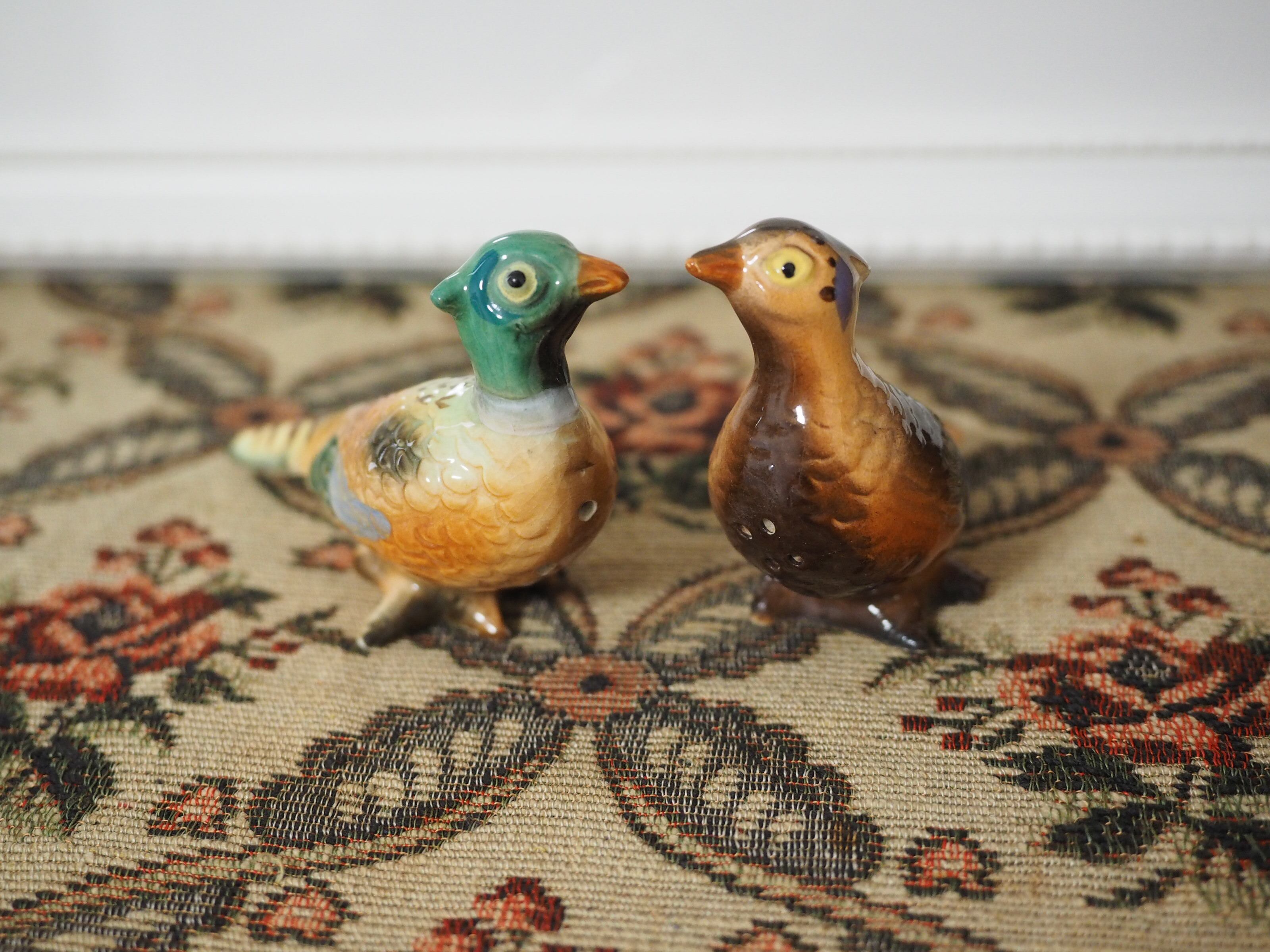 美しい雉の雌雄、ビンテージソルト&ペッパー
