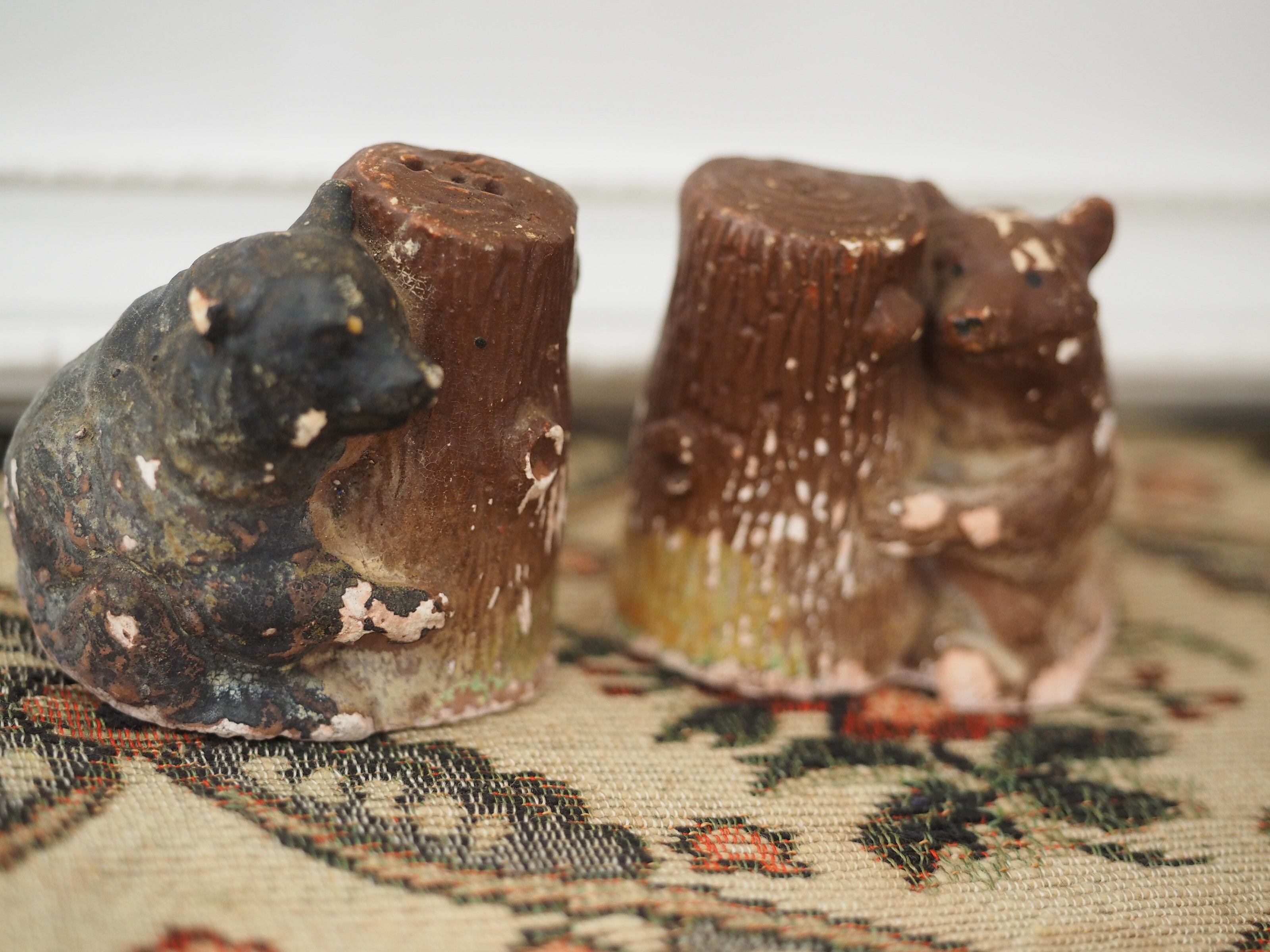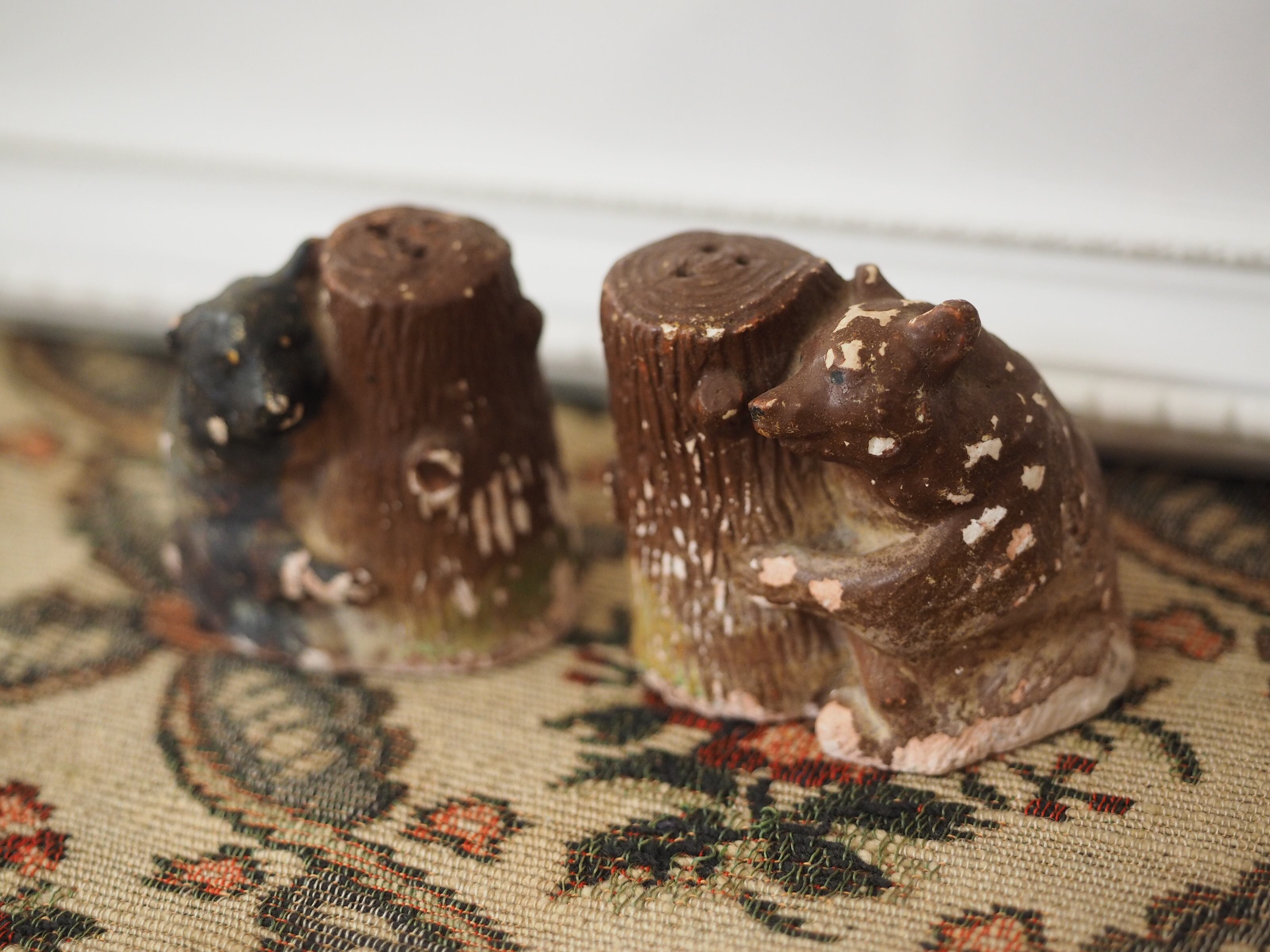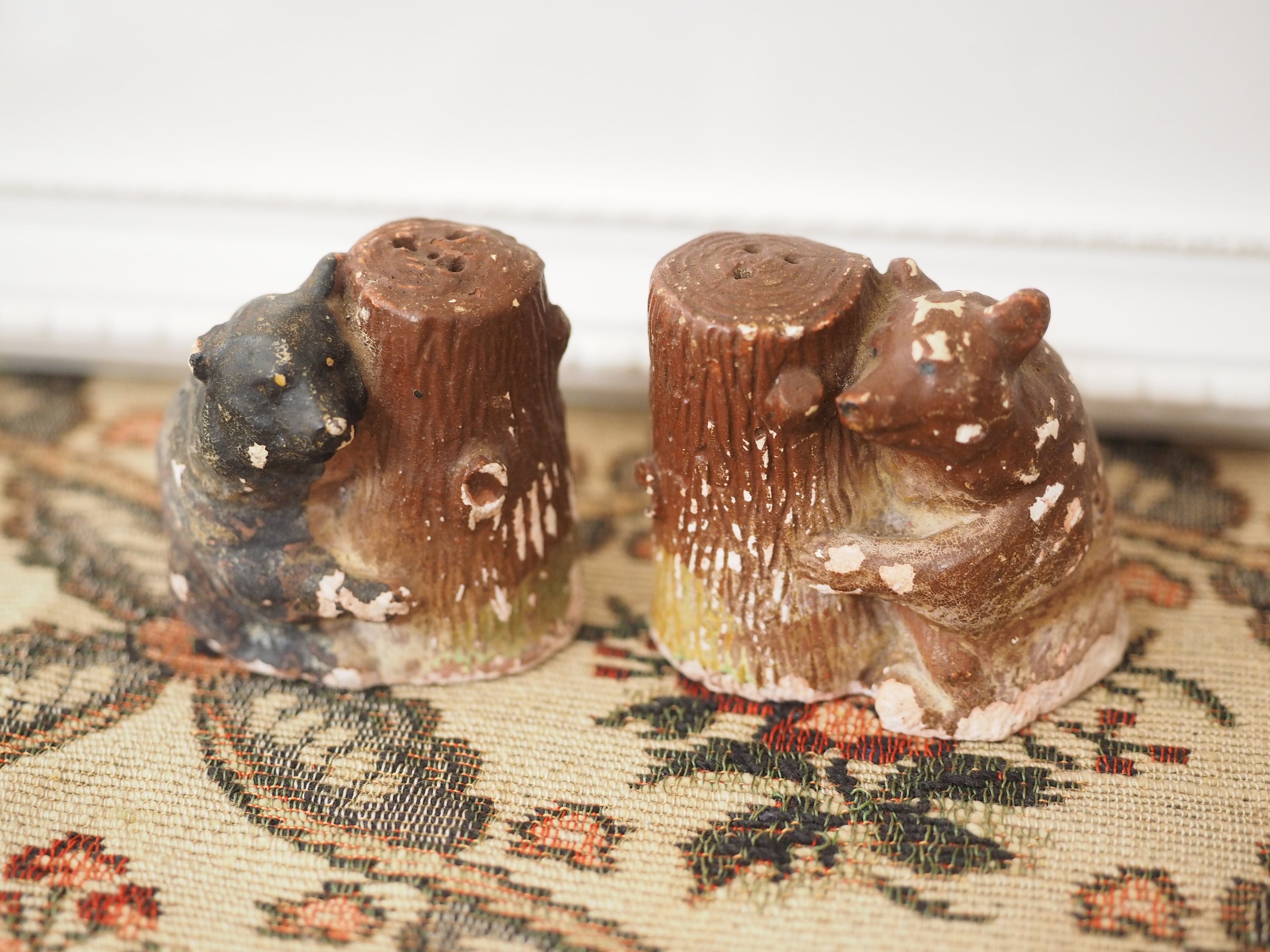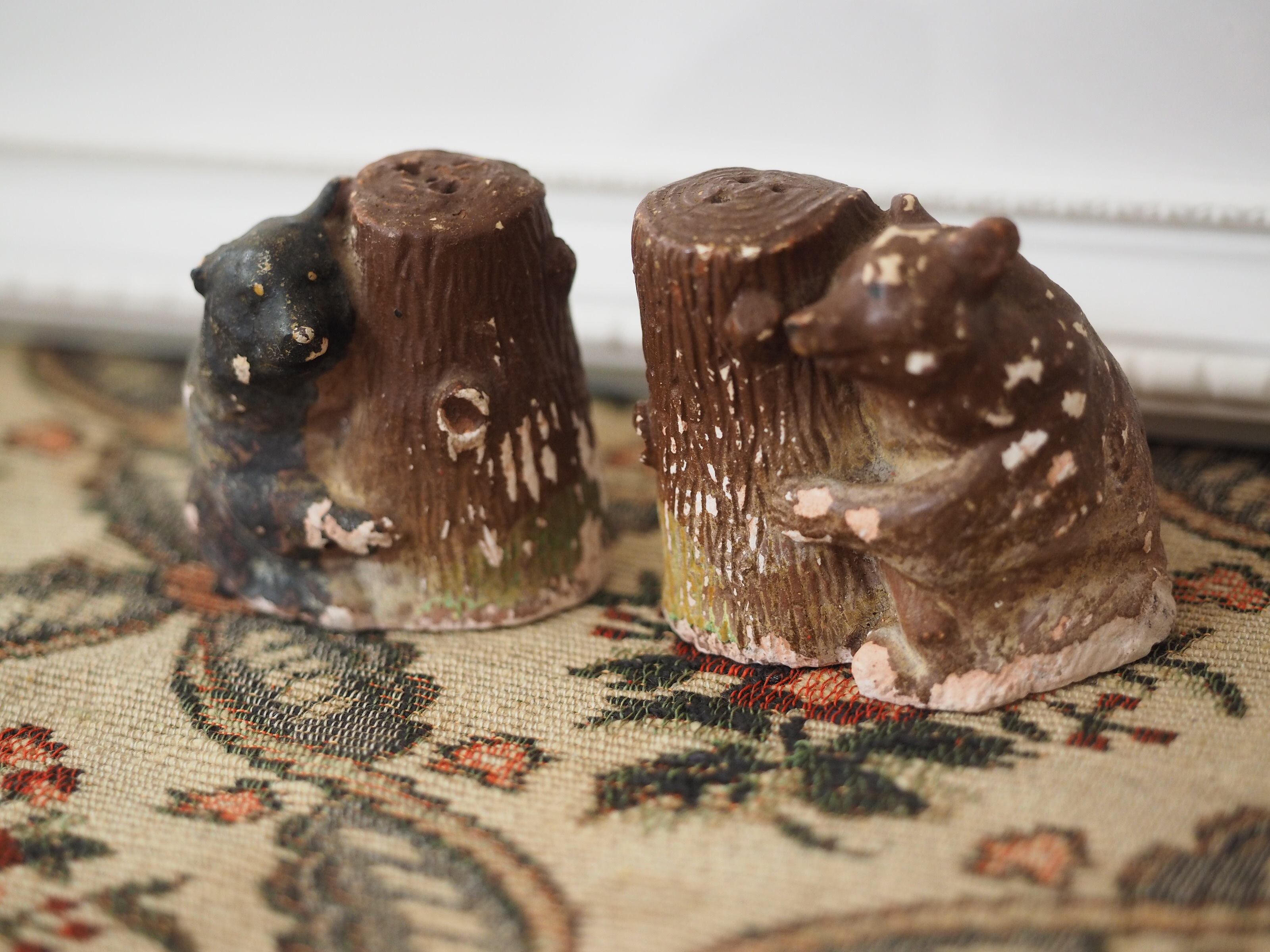 ビンテージな味わいのくまさんペアソルト&ペッパーです。