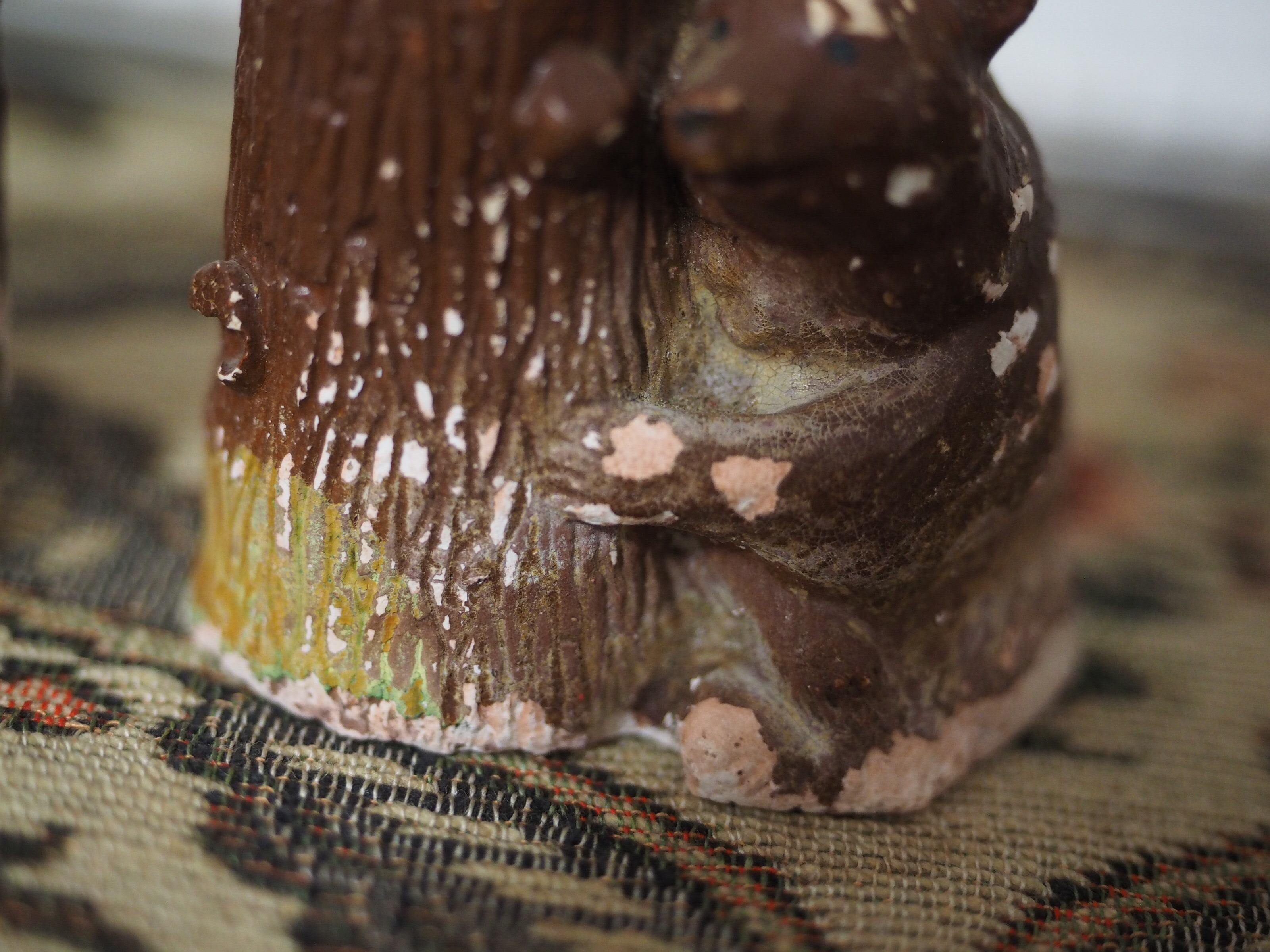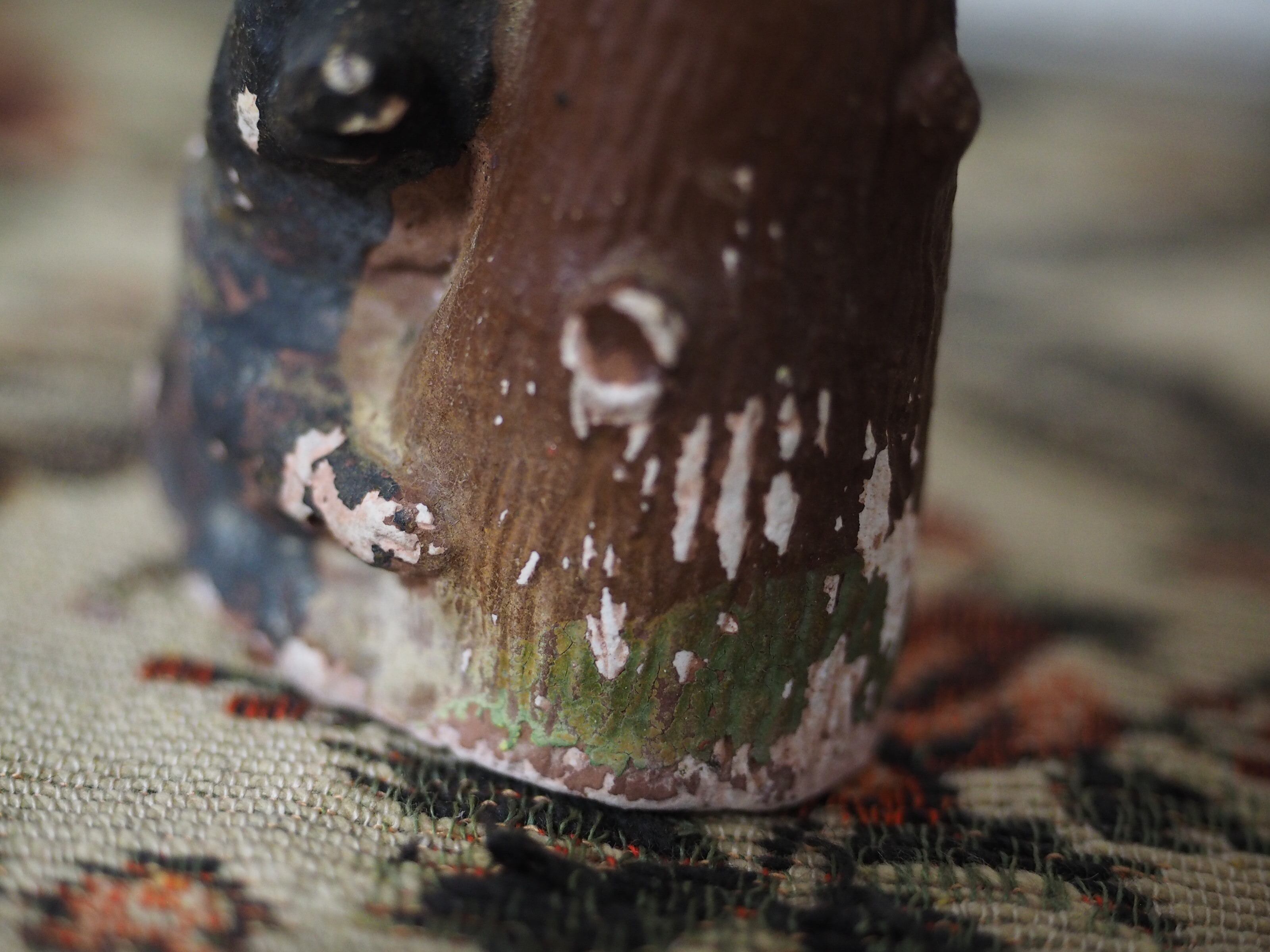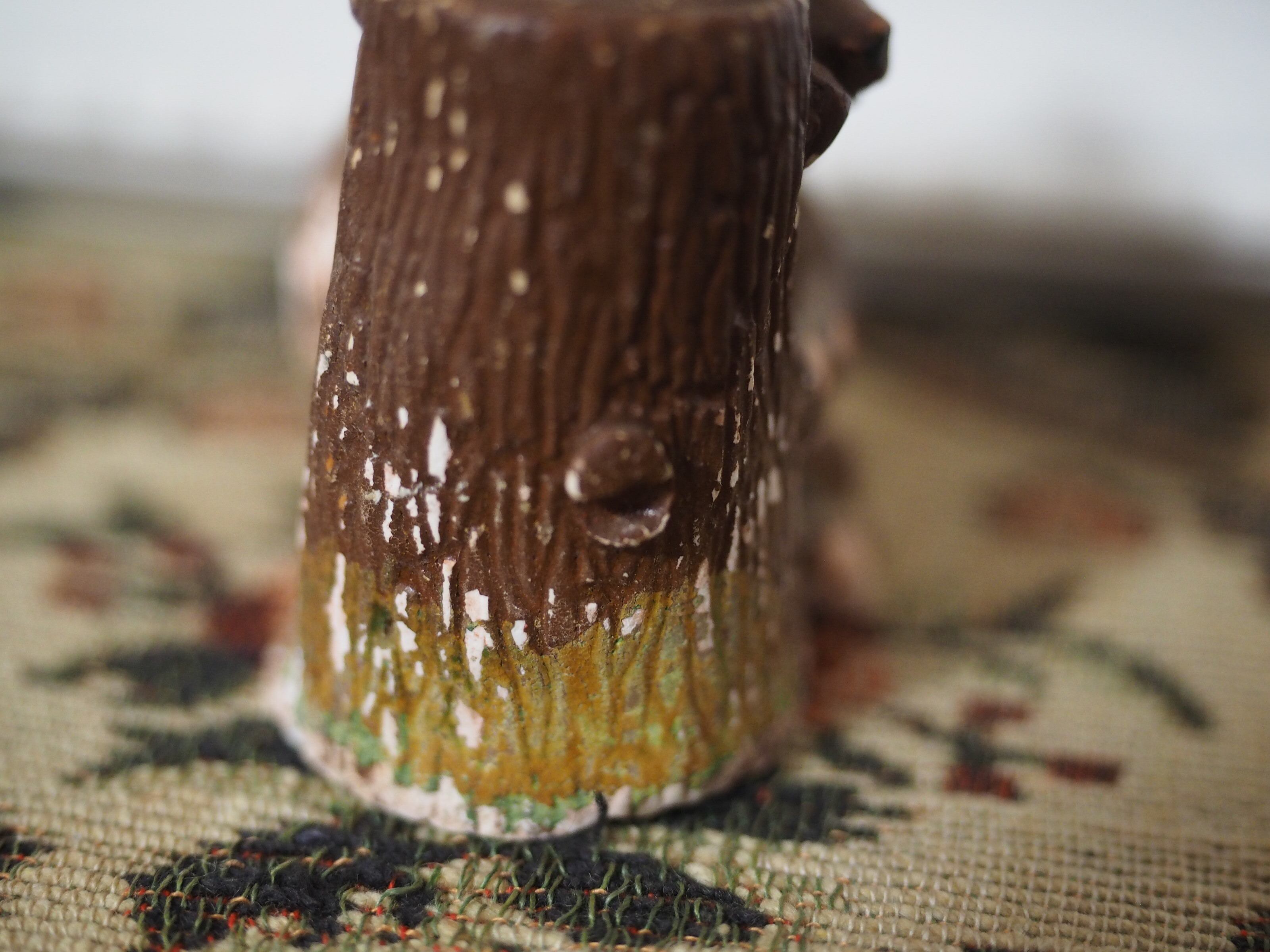 ペイントは剥がれていますが、切り株の根元はグリーンで彩られ、苔むした雰囲気です。