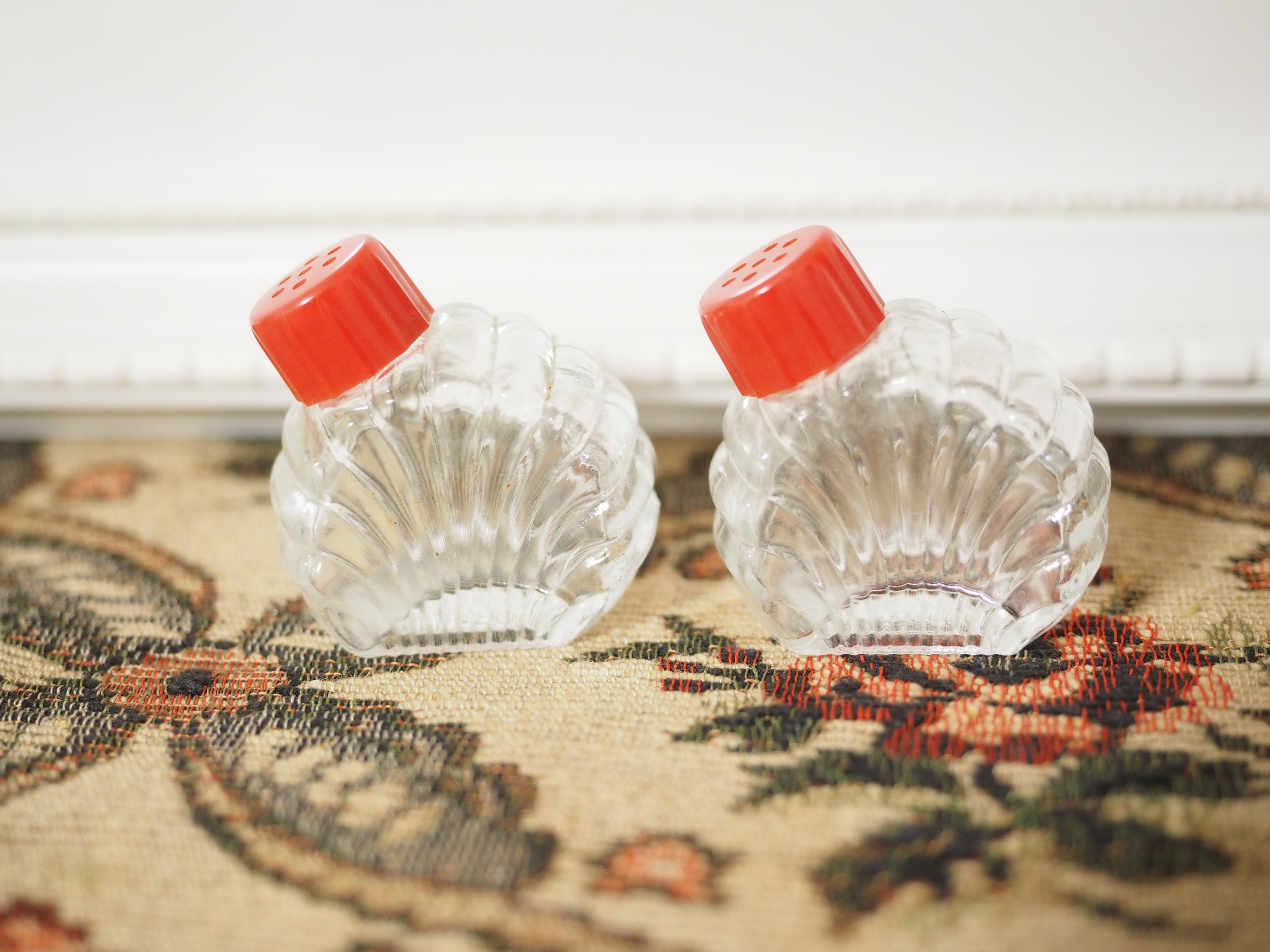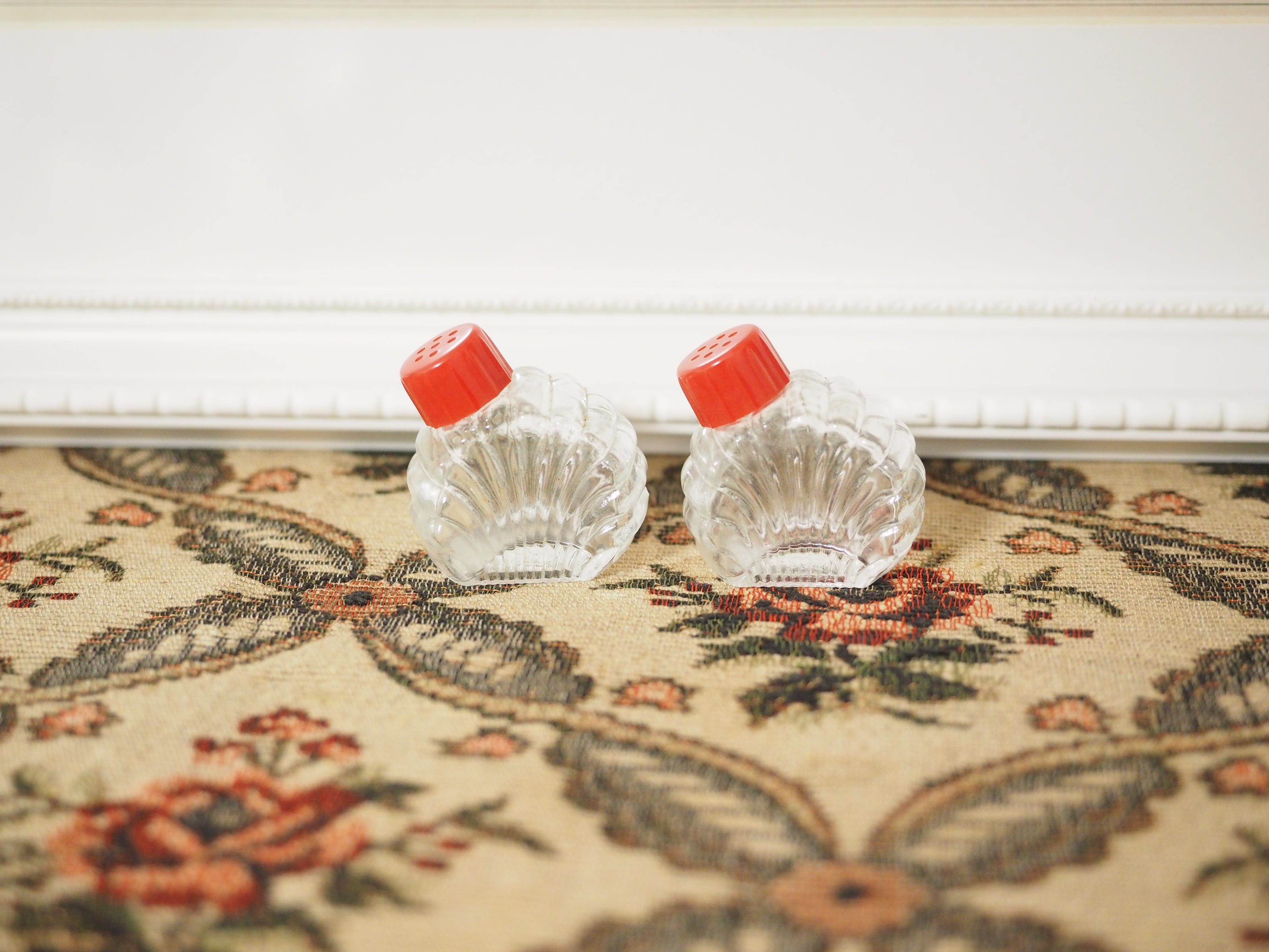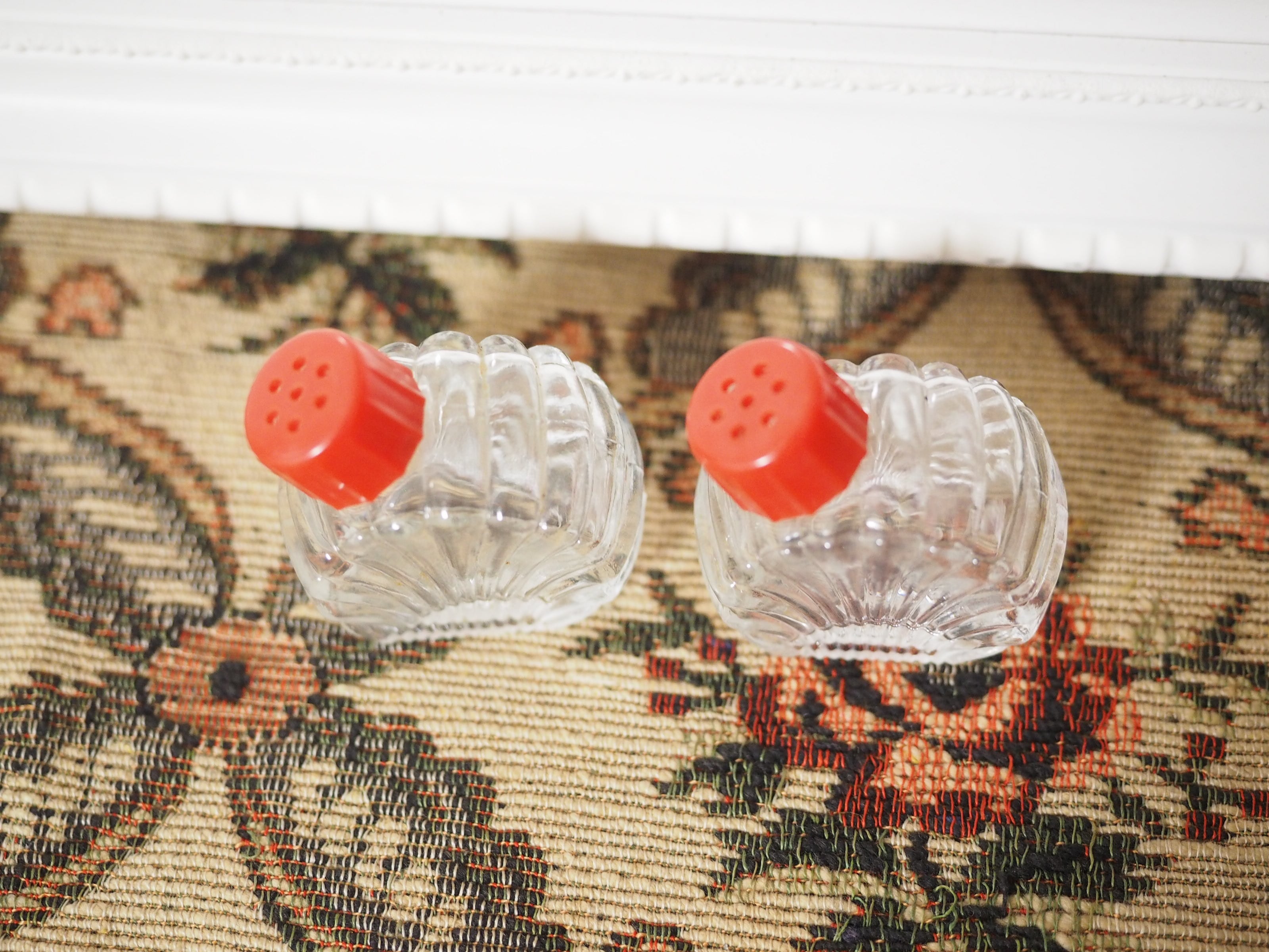 「Hazel-Atlas」貝殻型 小さなガラスのソルト&ペッパー