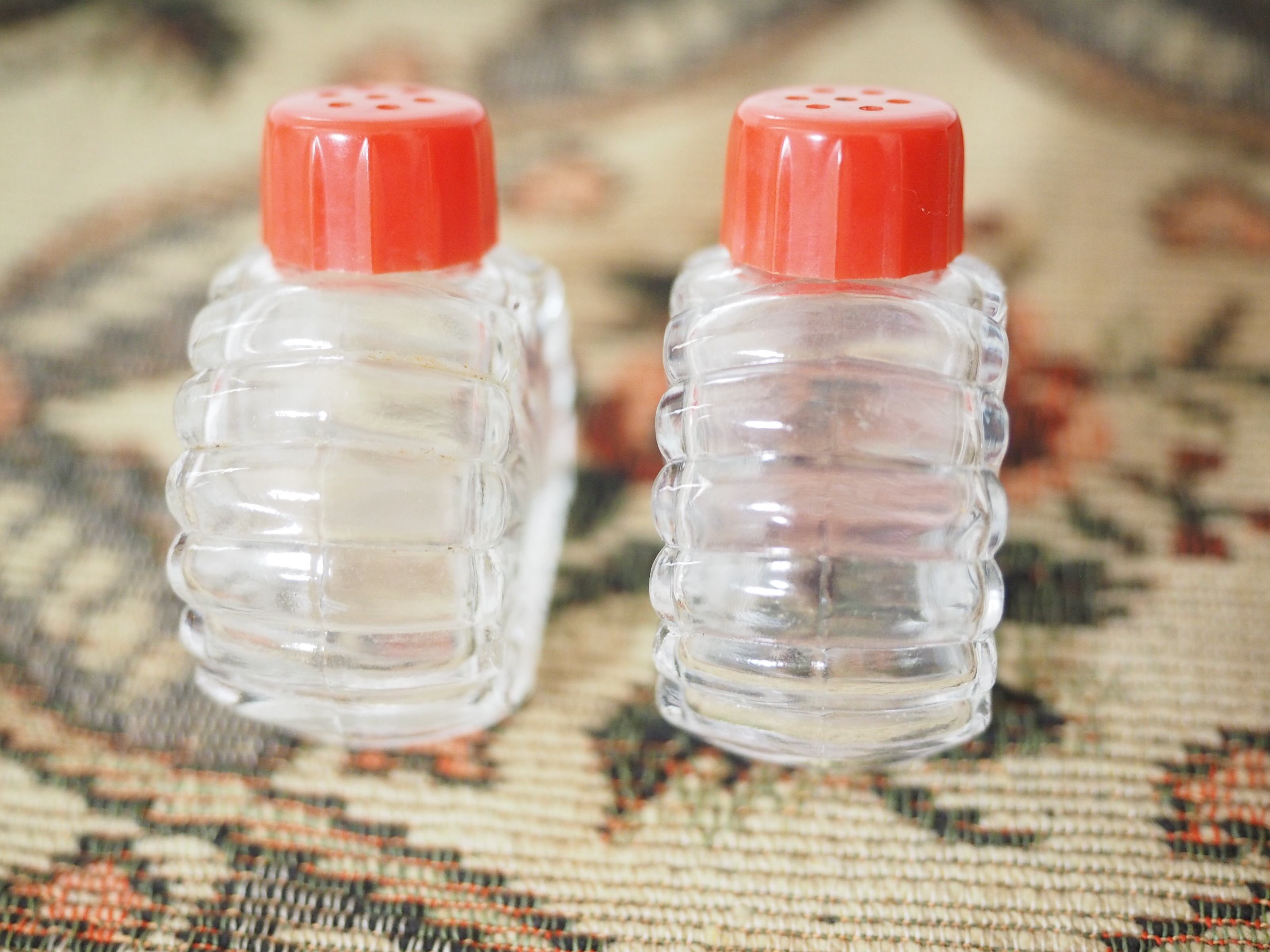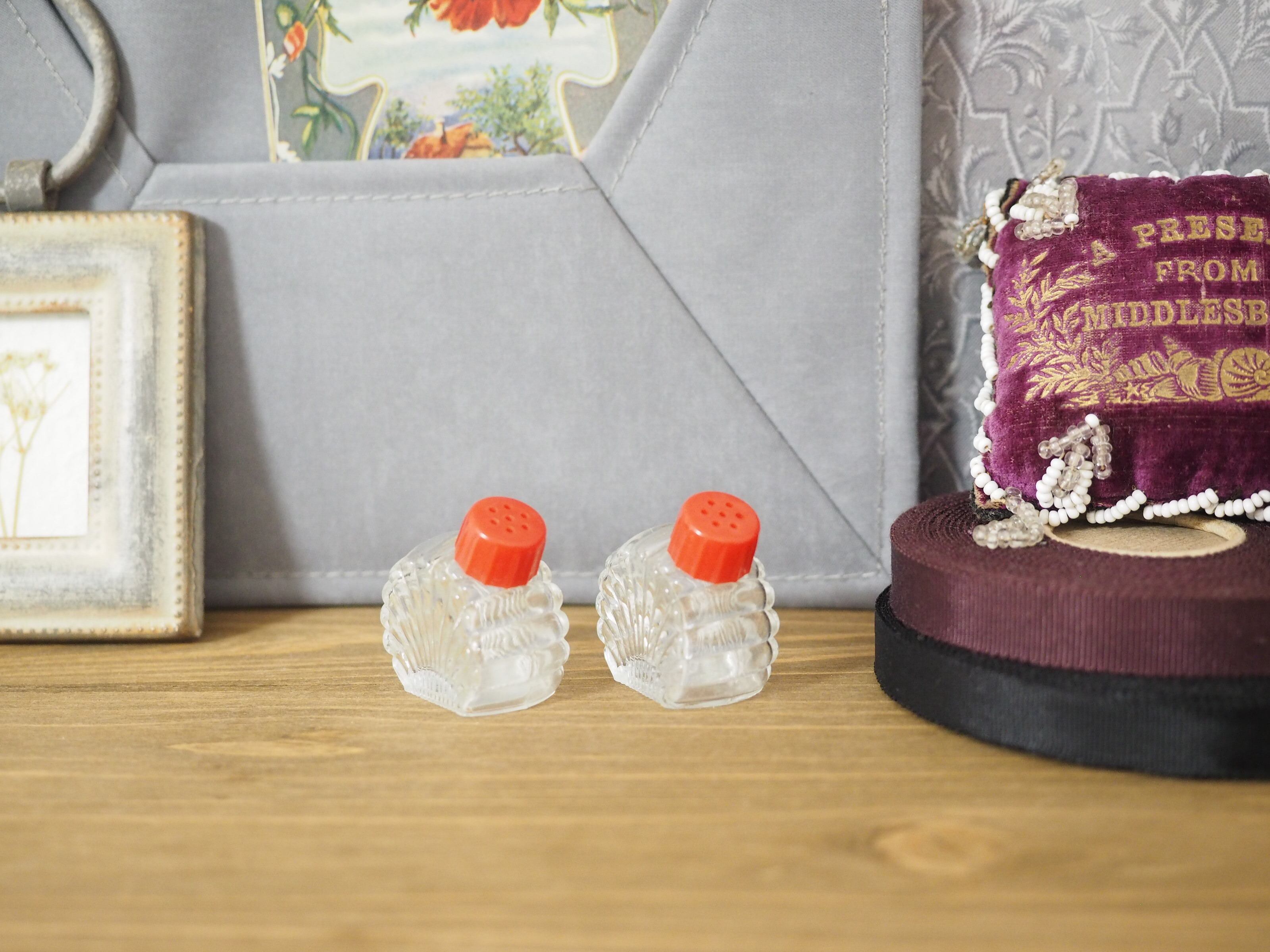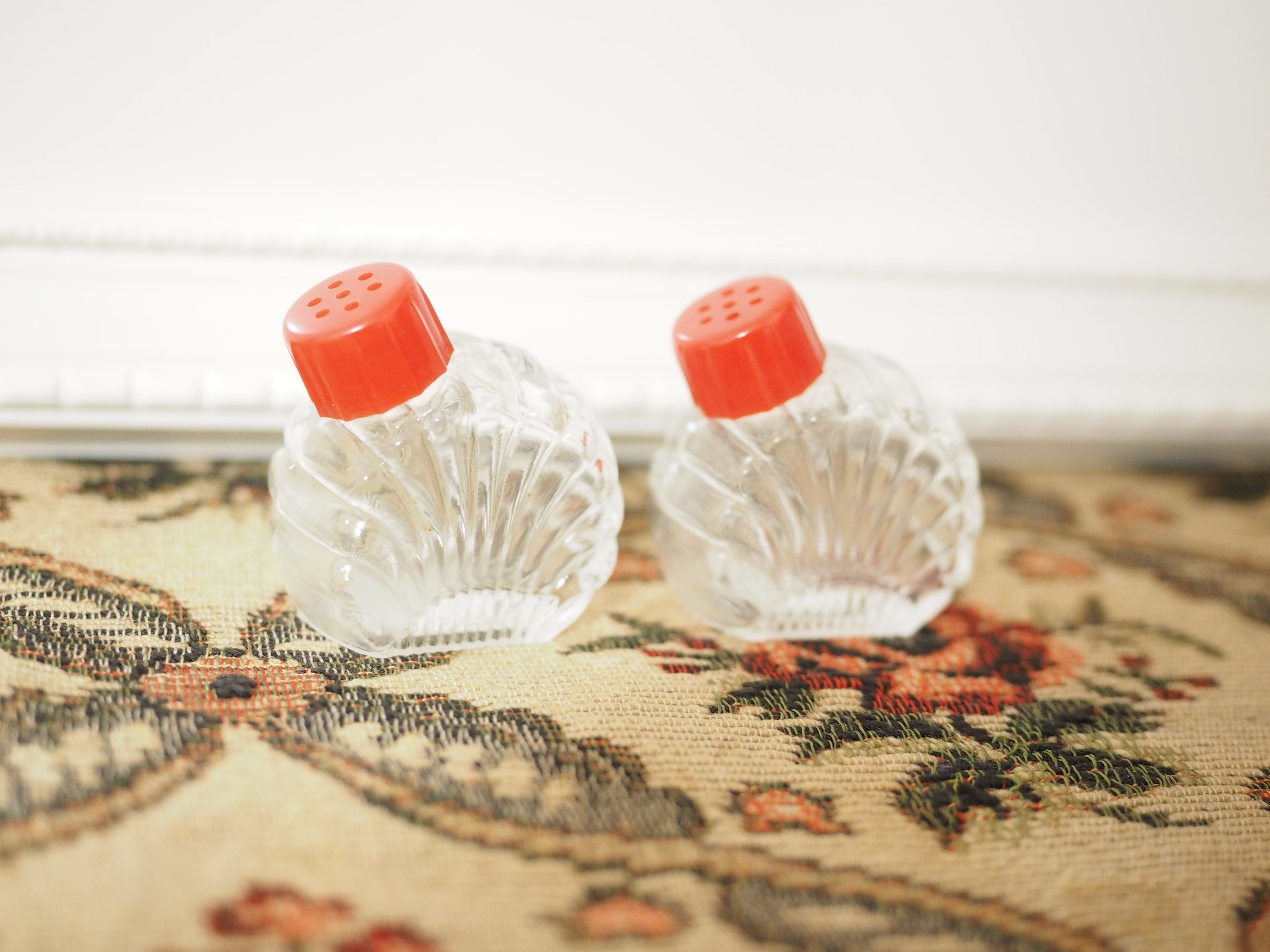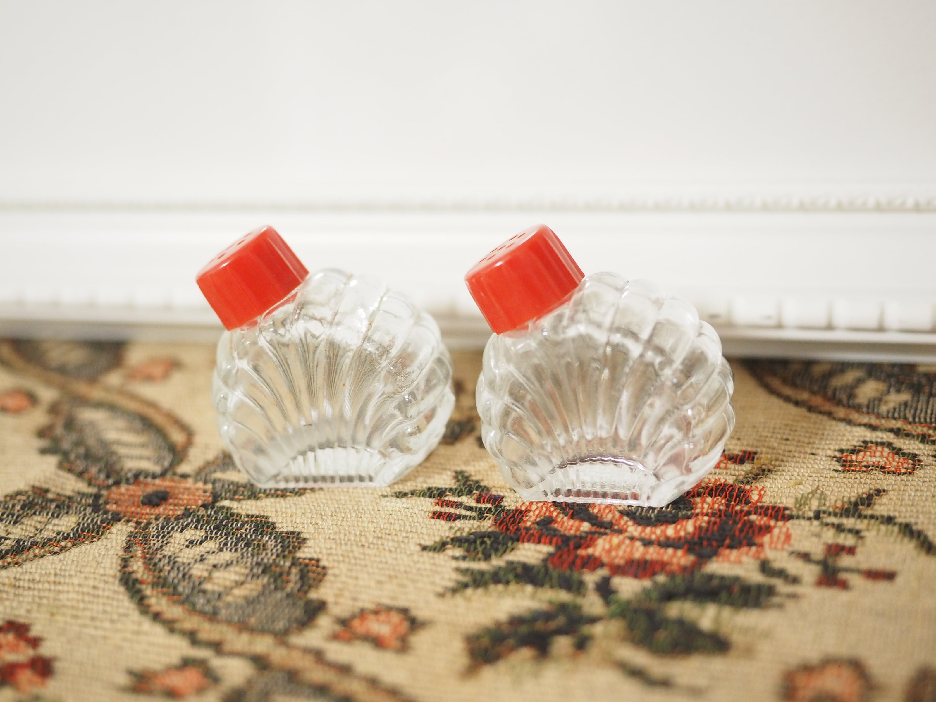 「Hazel-Atlas」貝殻型 小さなガラスのソルト&ペッパー