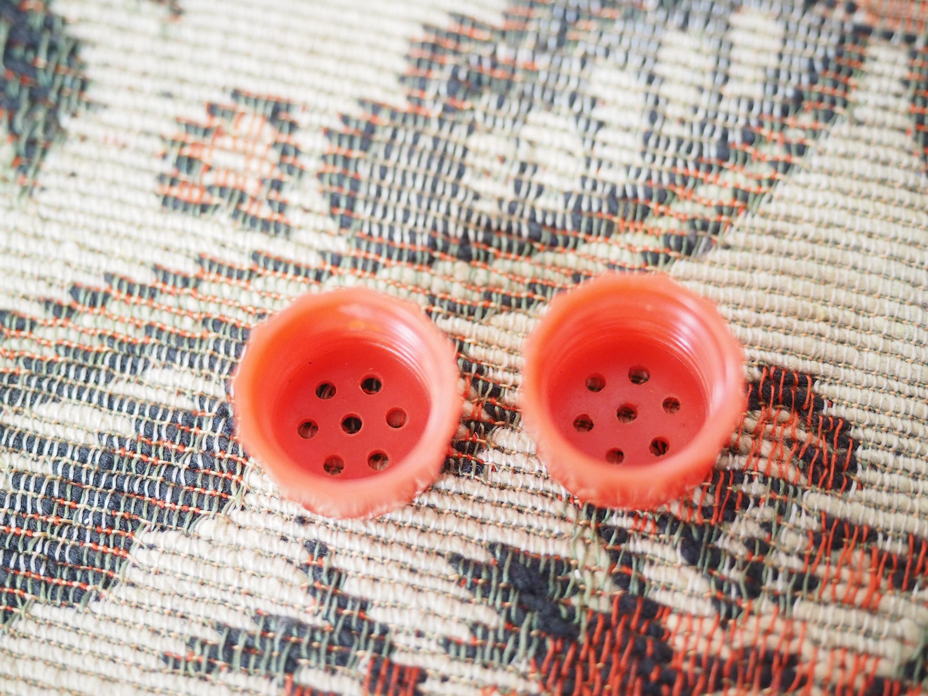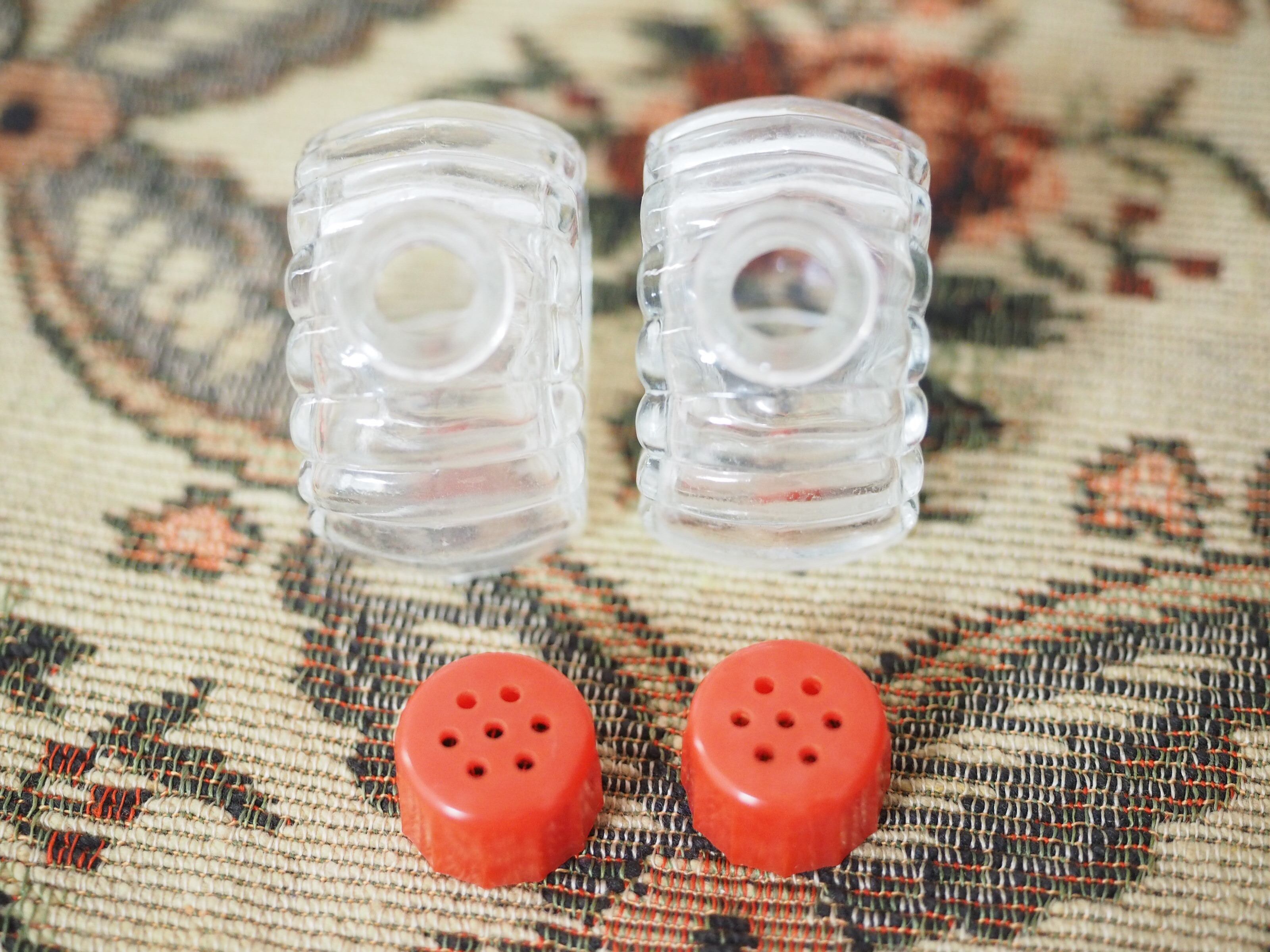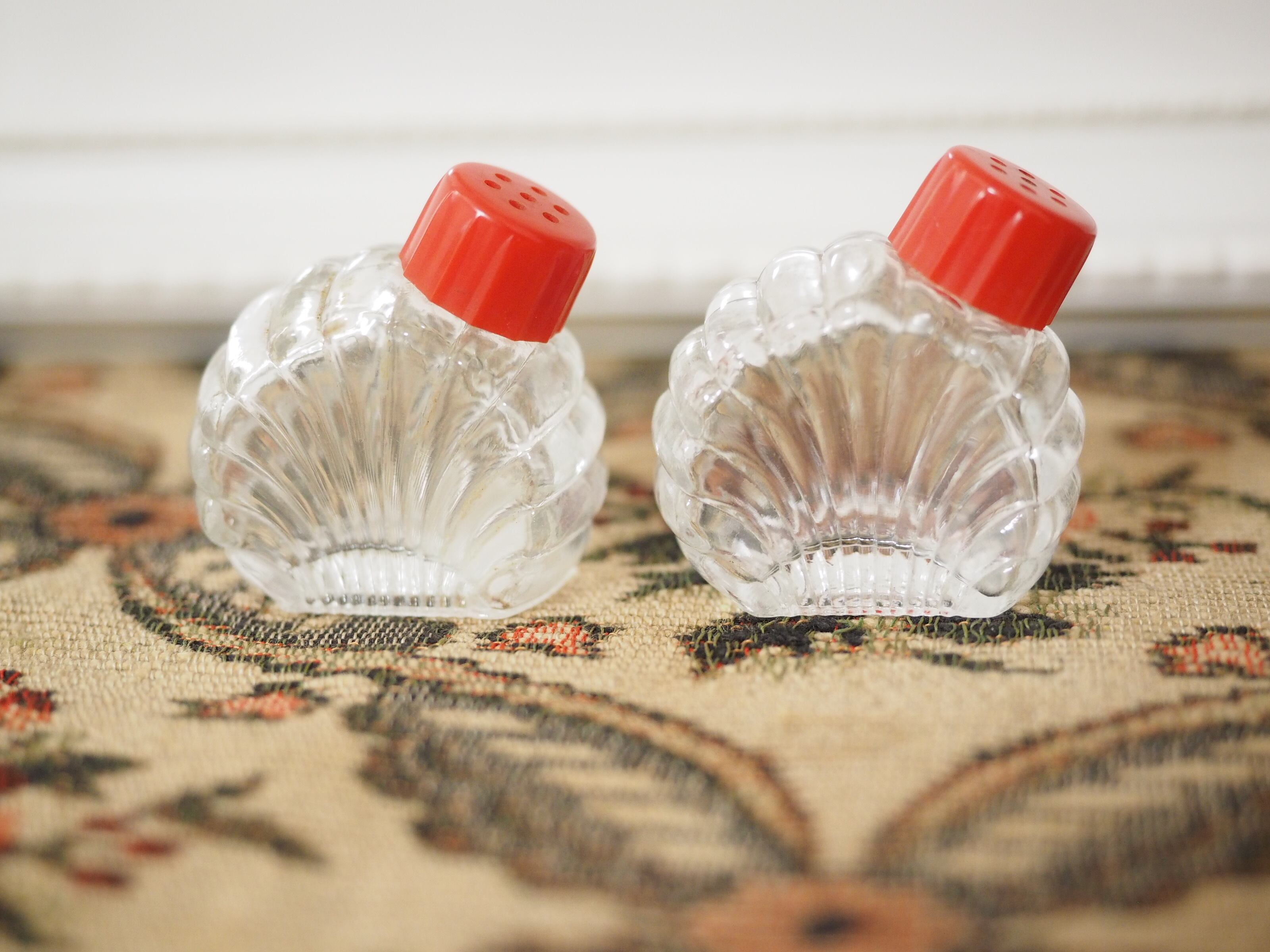 貝殻の形、赤いプラスチック蓋がキュートなソルト&ペッパー
