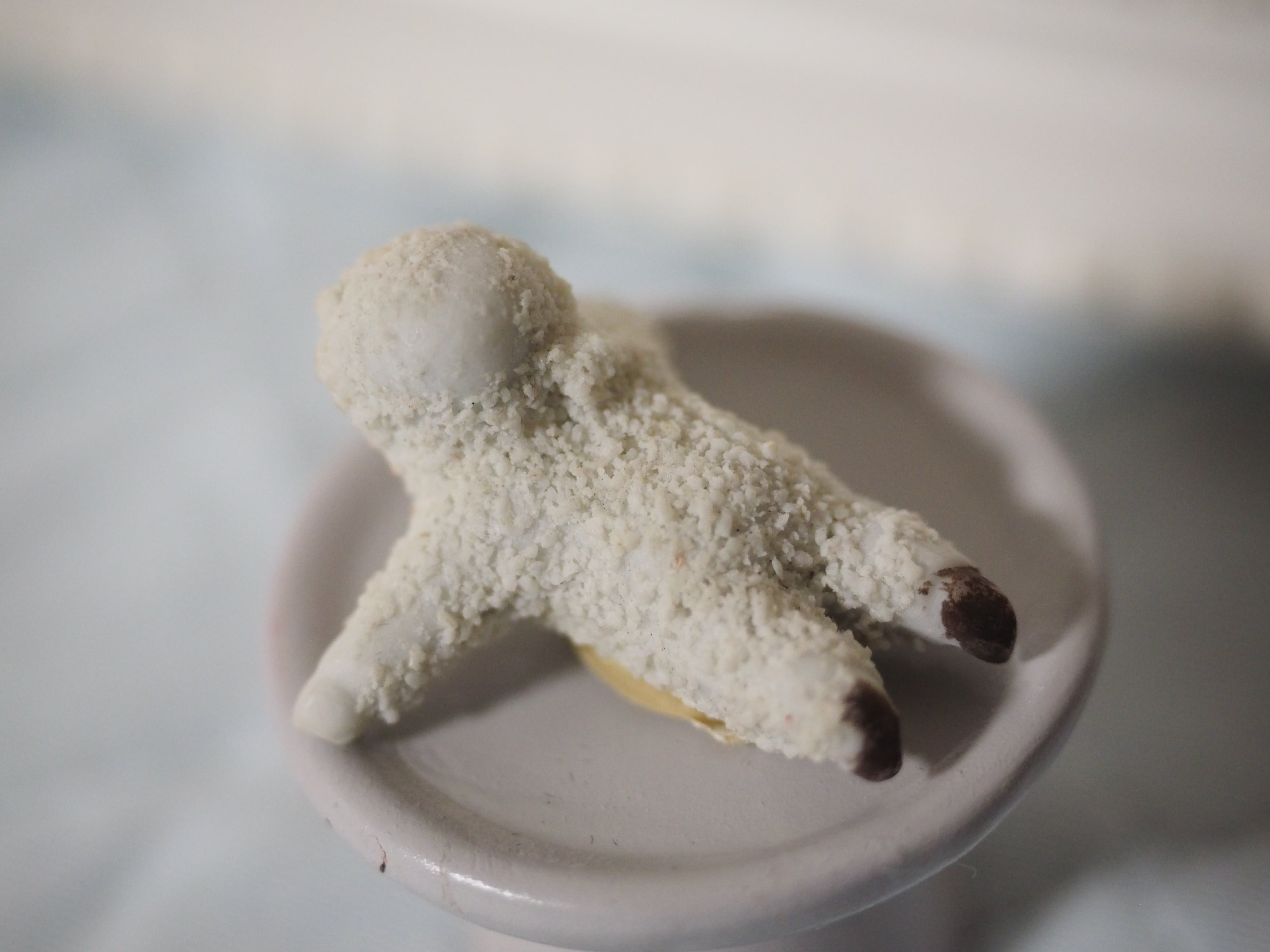 初めて製造されたのは1864年で、クリスマスケーキの上やクリスマスツリーを飾るために使用された、ケーキトッパーから発展したアーモンドペーストの人形を再現して作られたそう。