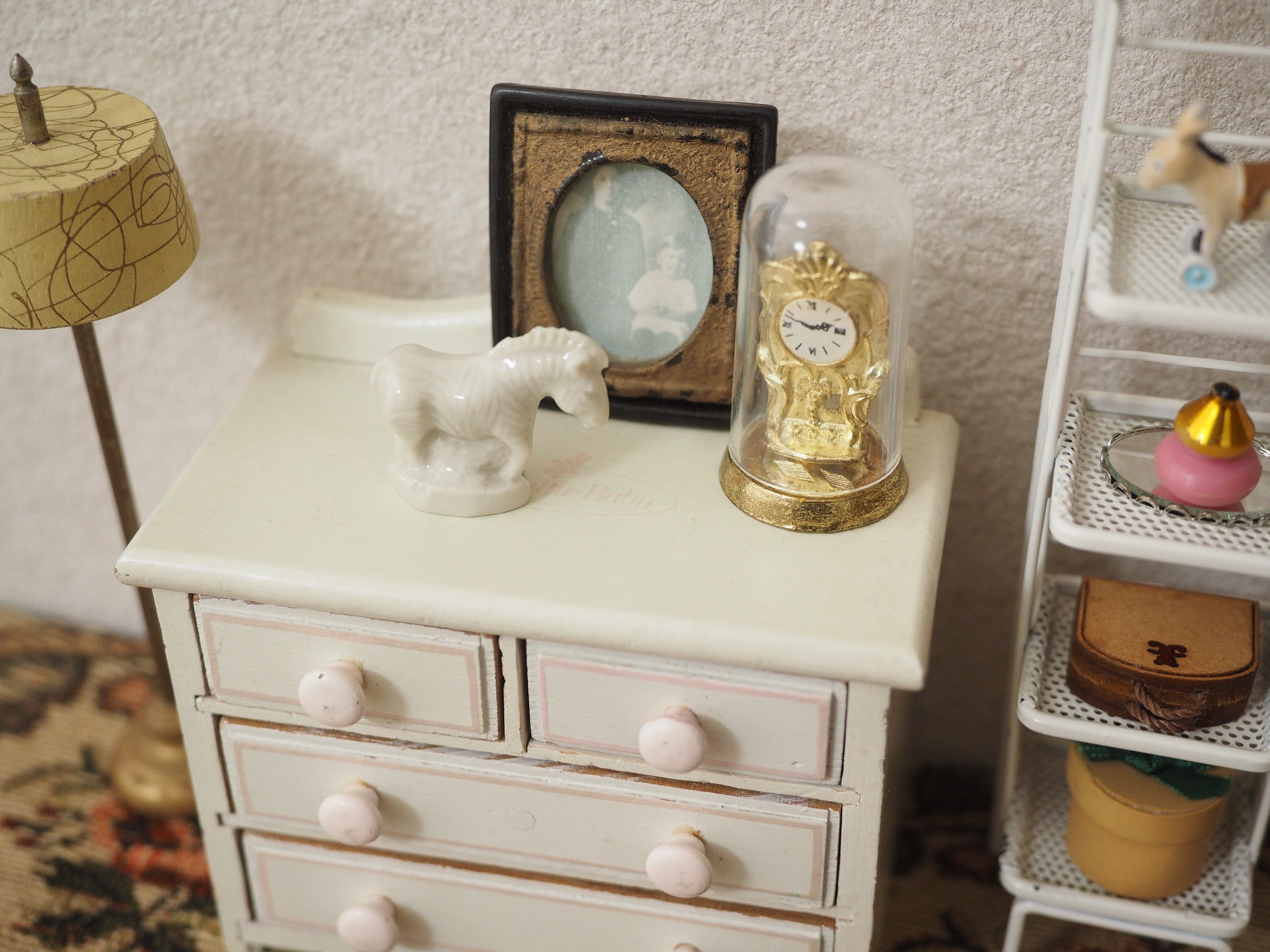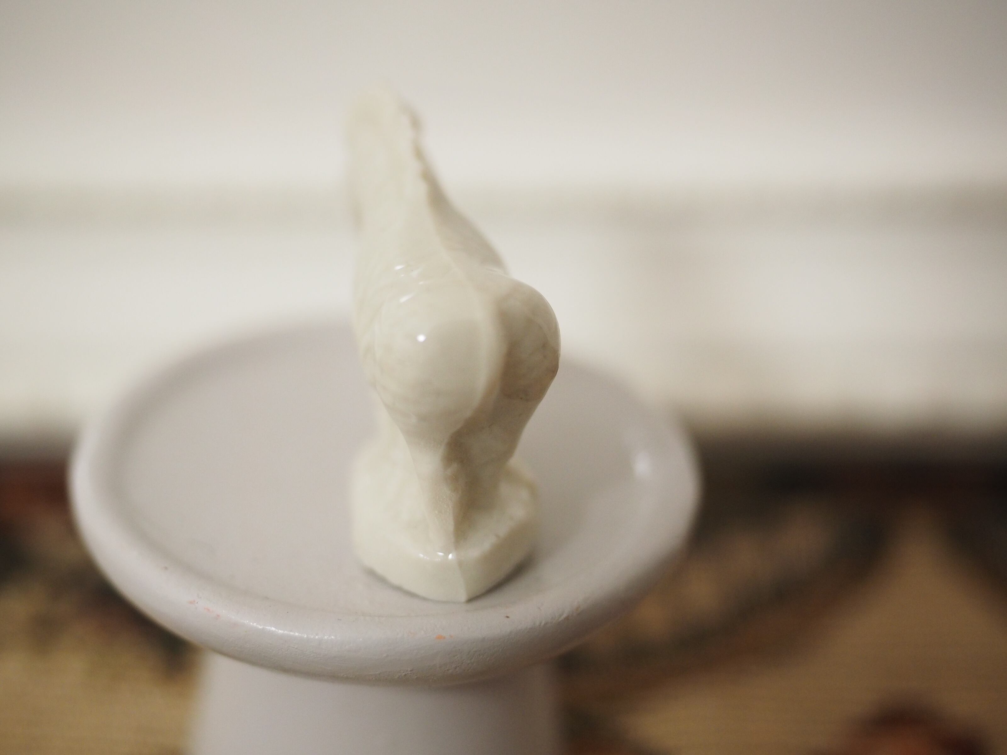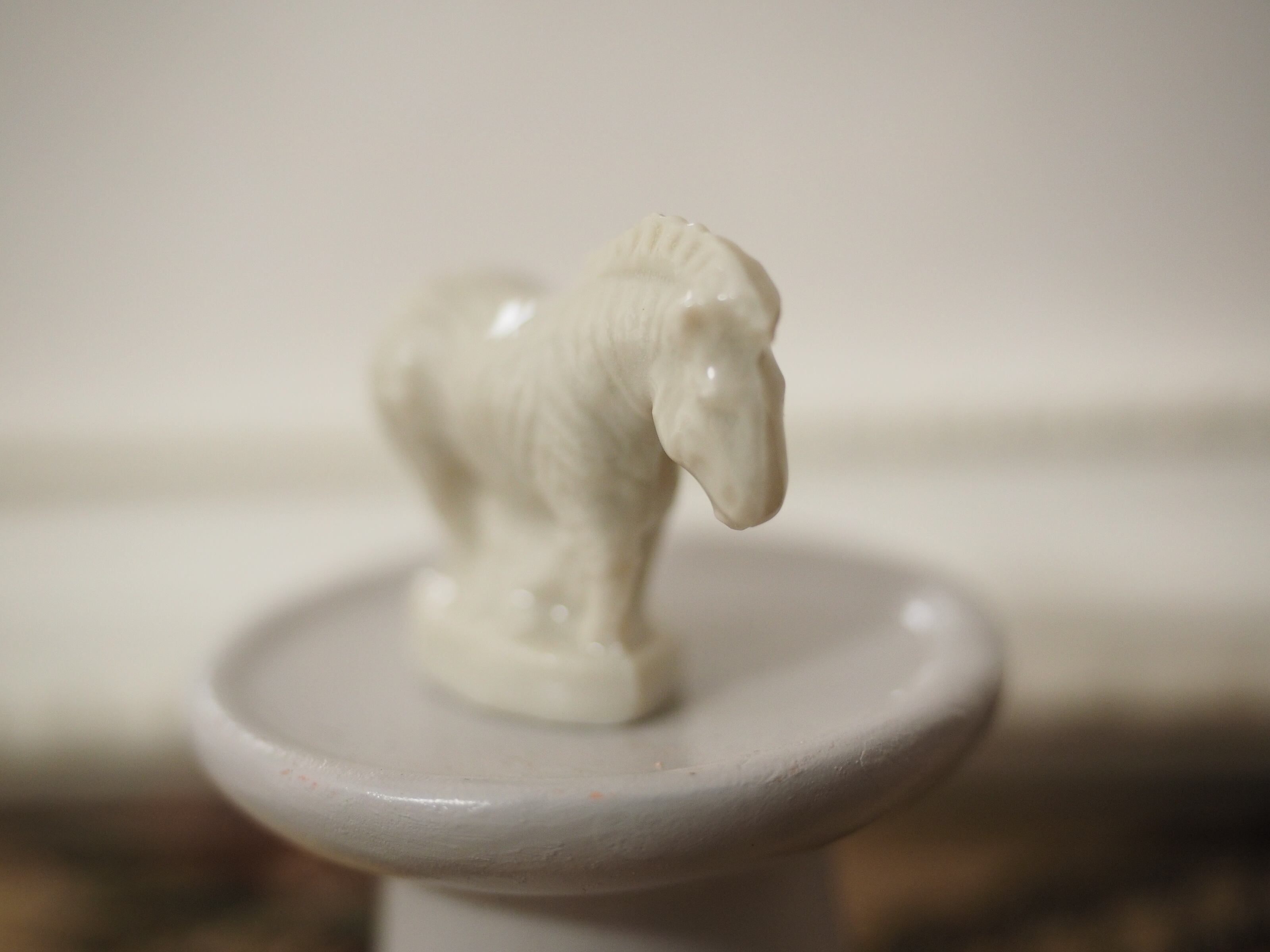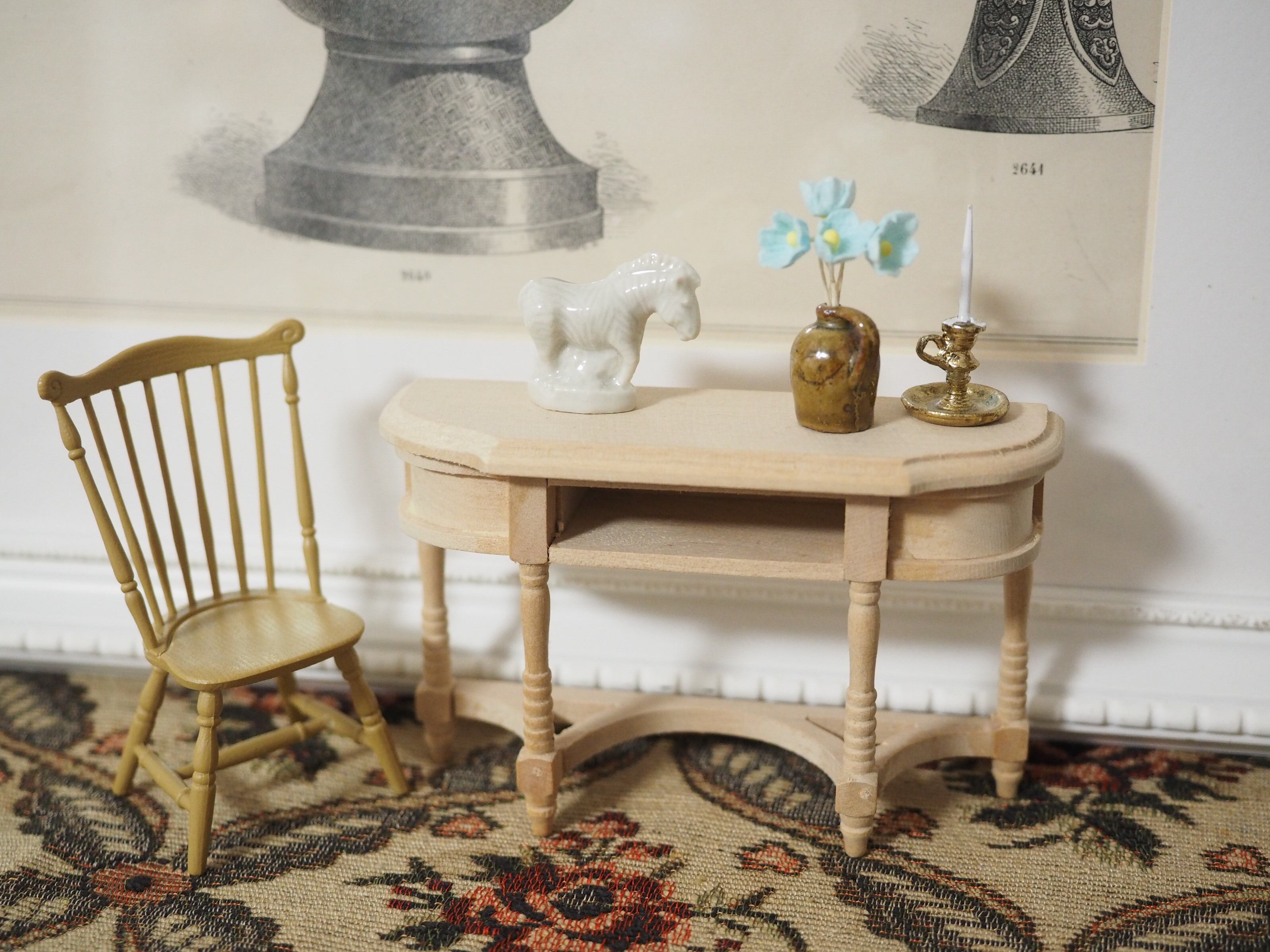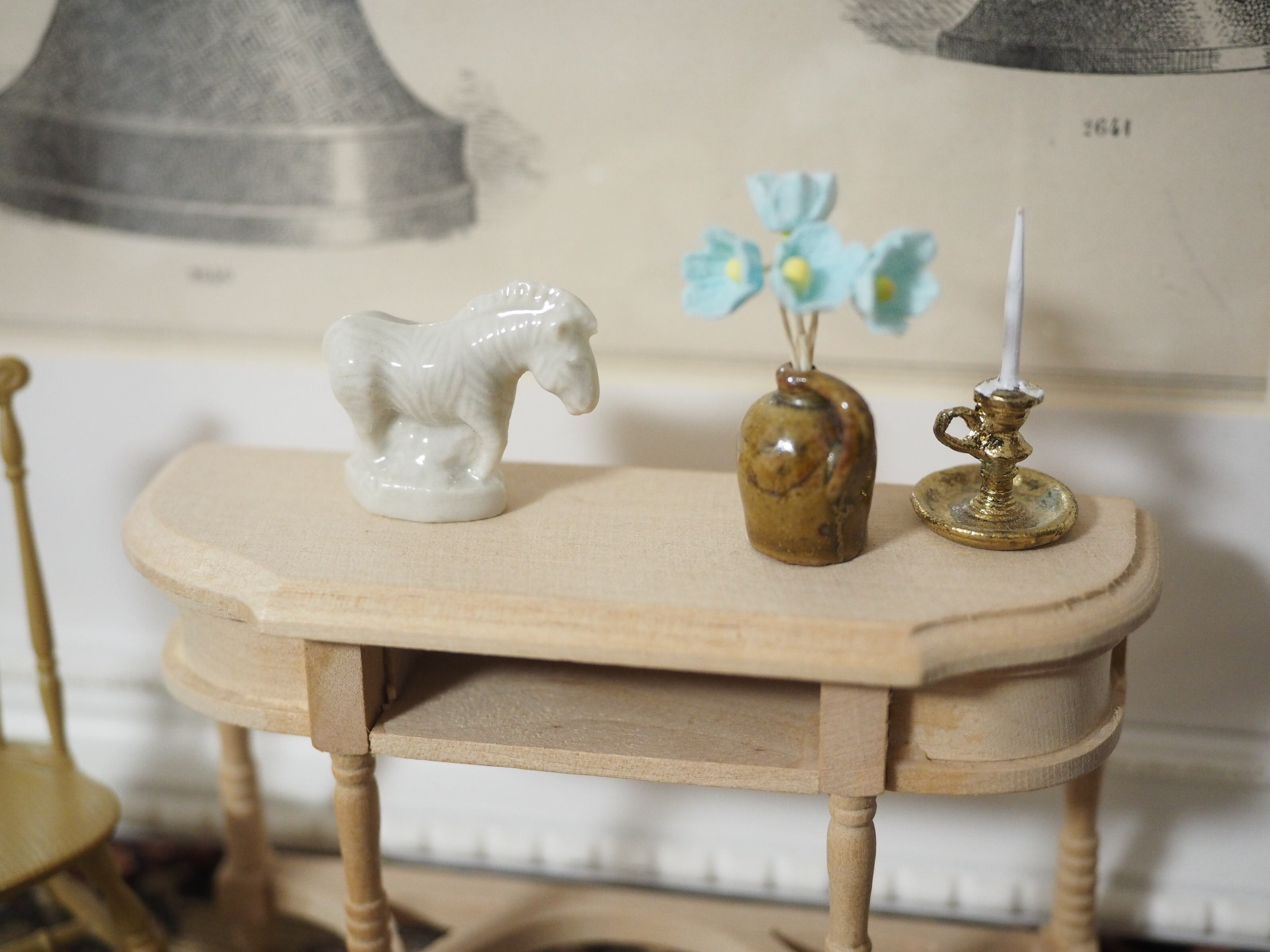 ミニチュアの彫刻のような精巧さで、お人形の家具にぴったりなサイズ感。ちょこんと置くと存在感があります。