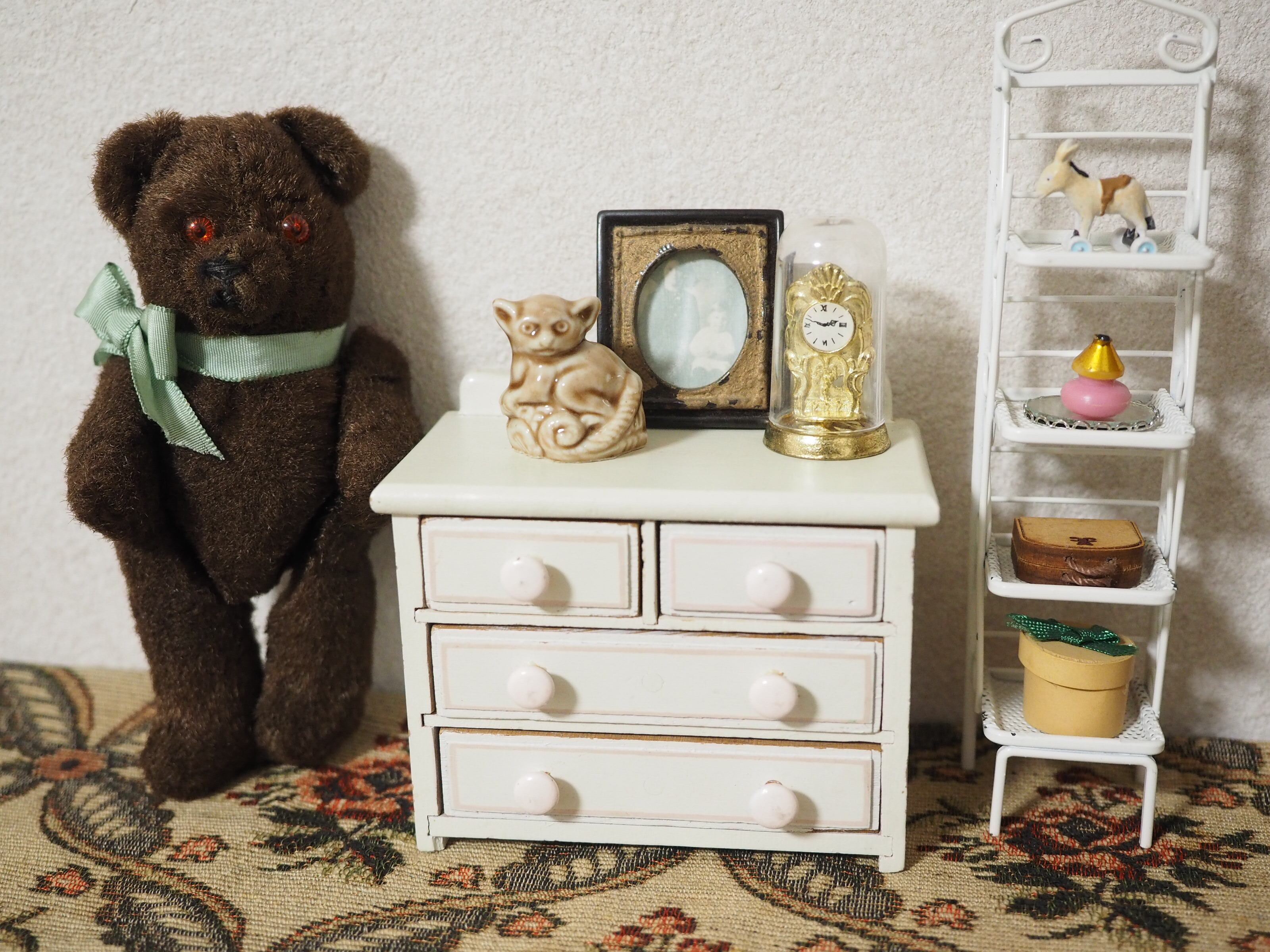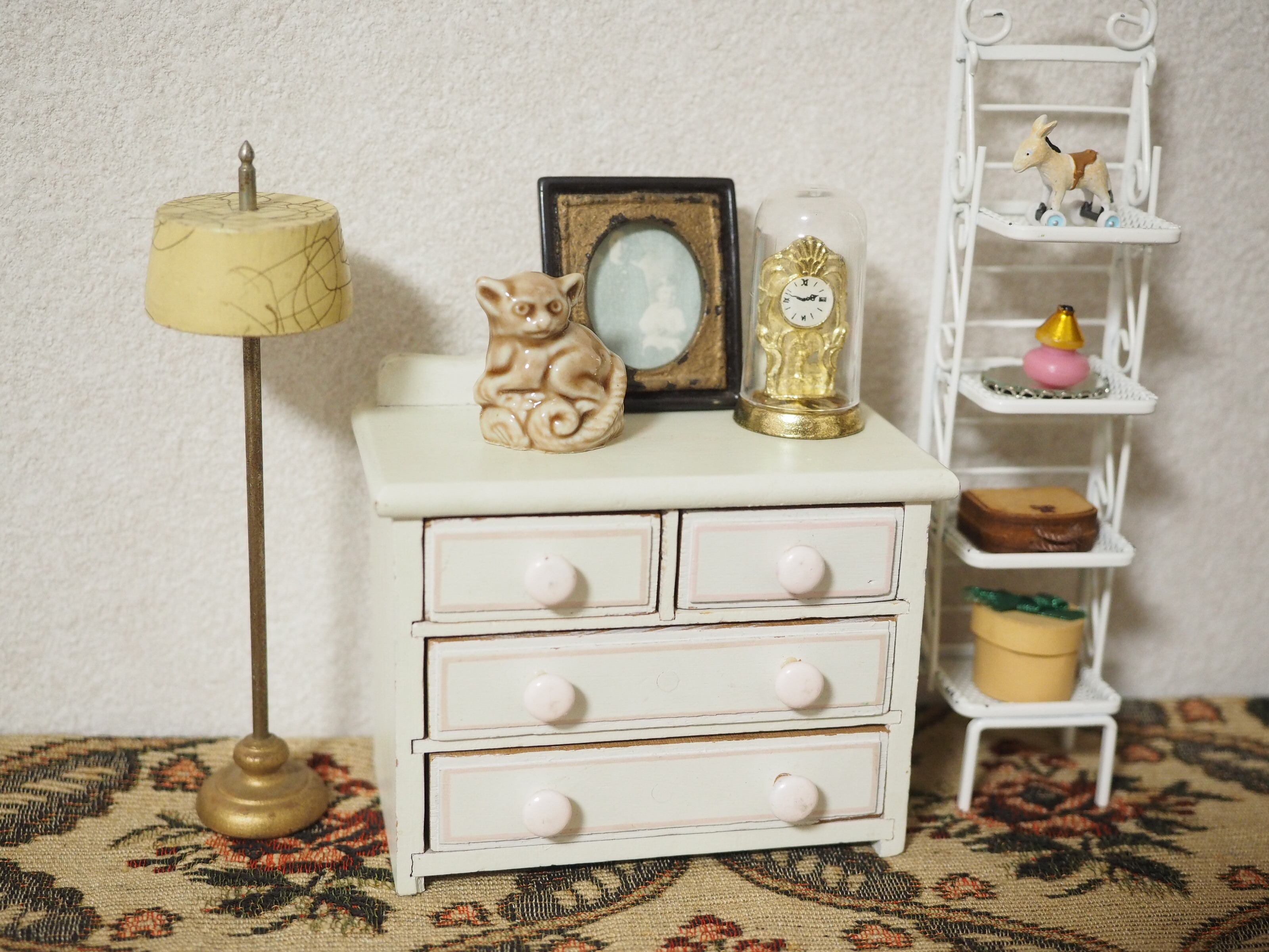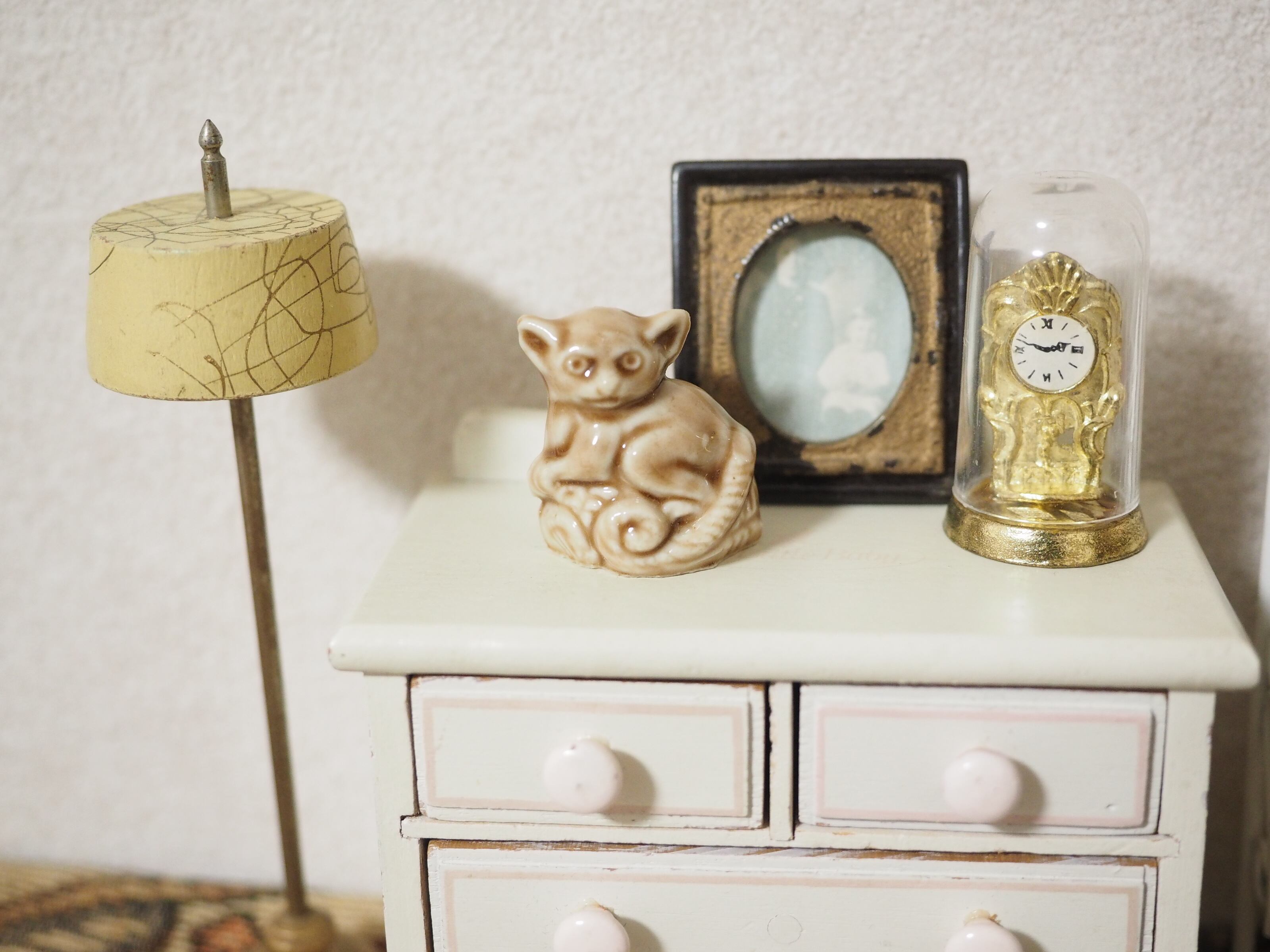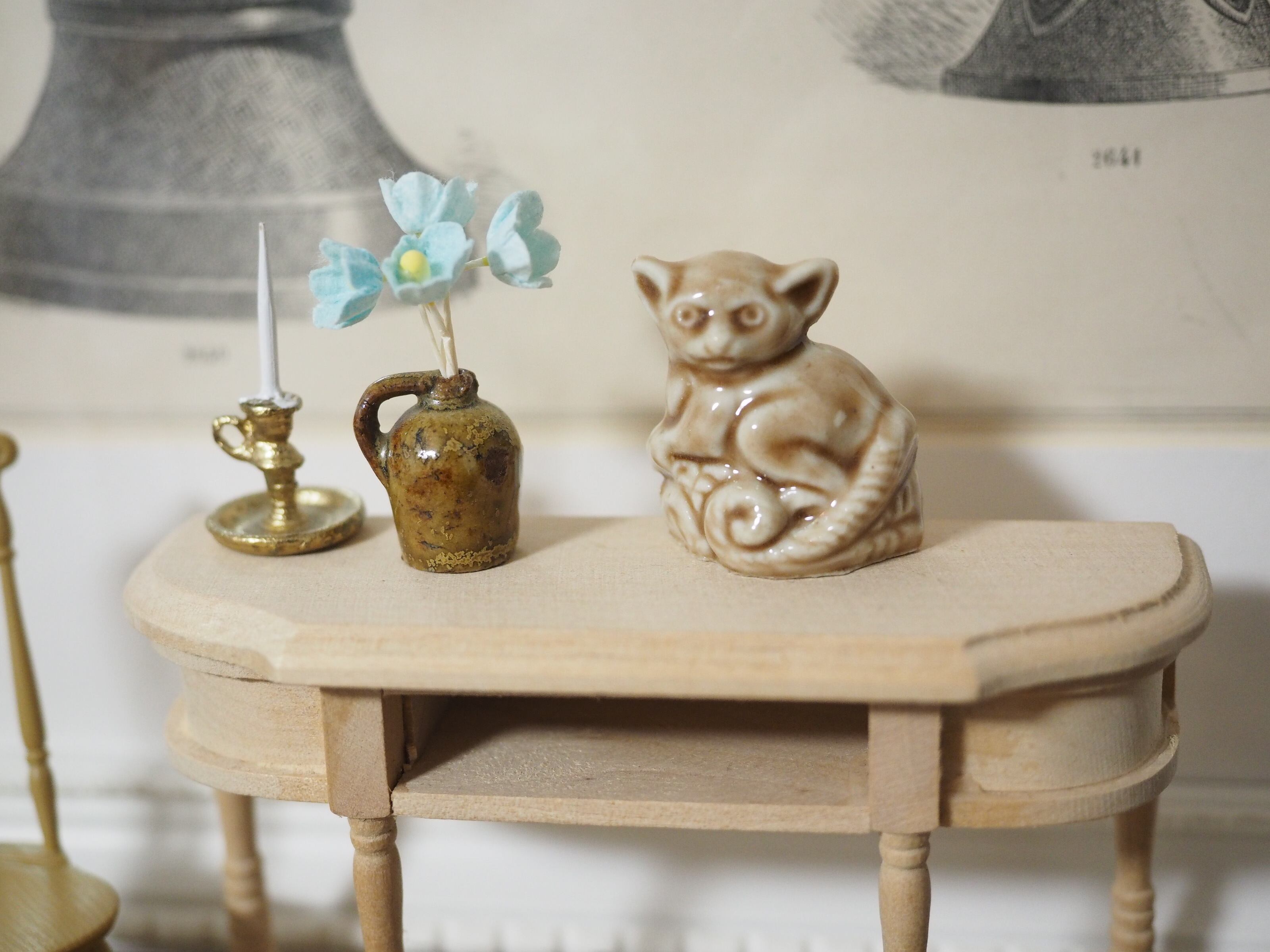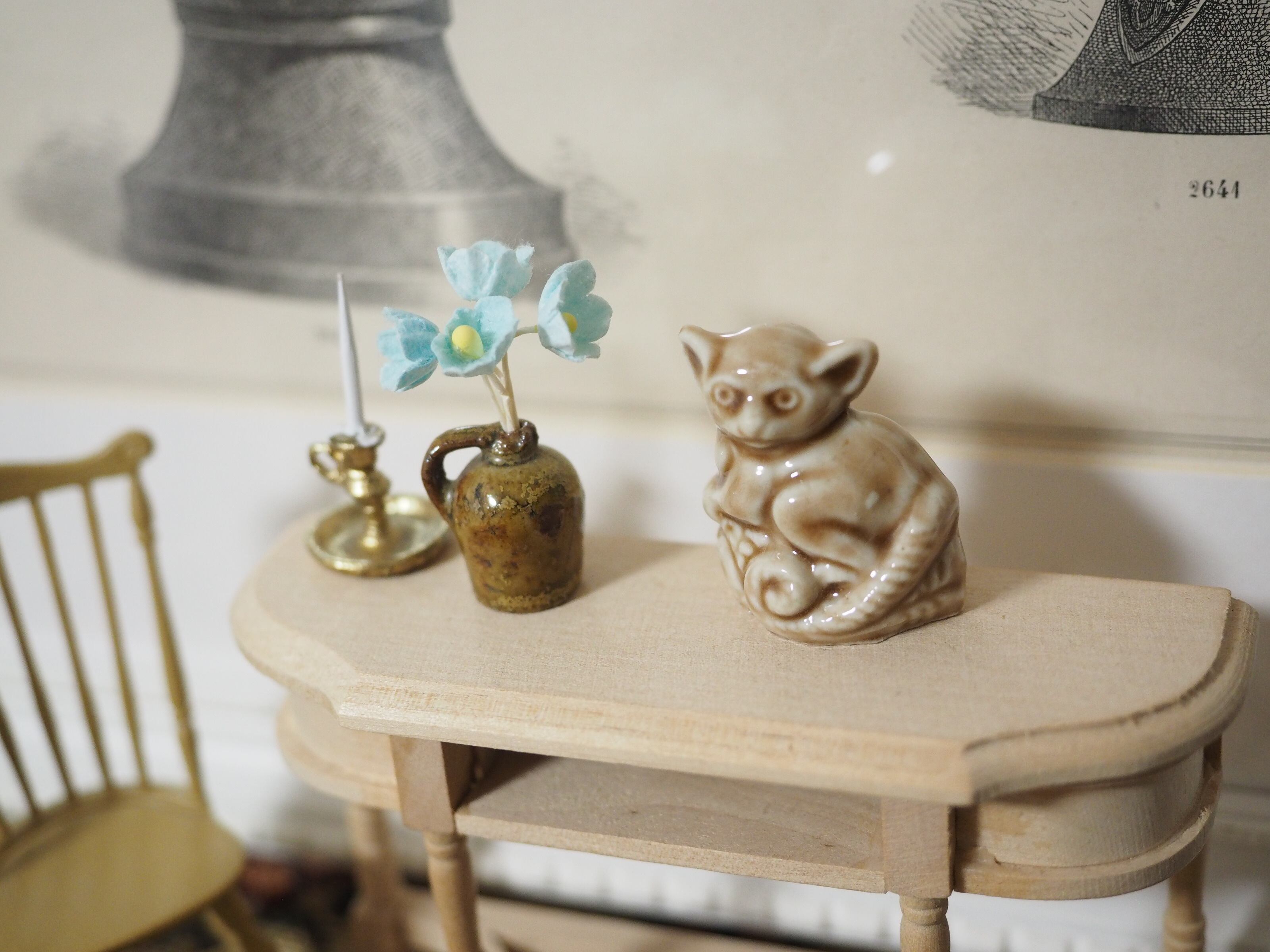 ミニチュアの彫刻のような精巧さで、お人形の家具にぴったりなサイズ感。ちょこんと置くと存在感があります。集めたくなるかわいいシリーズです。