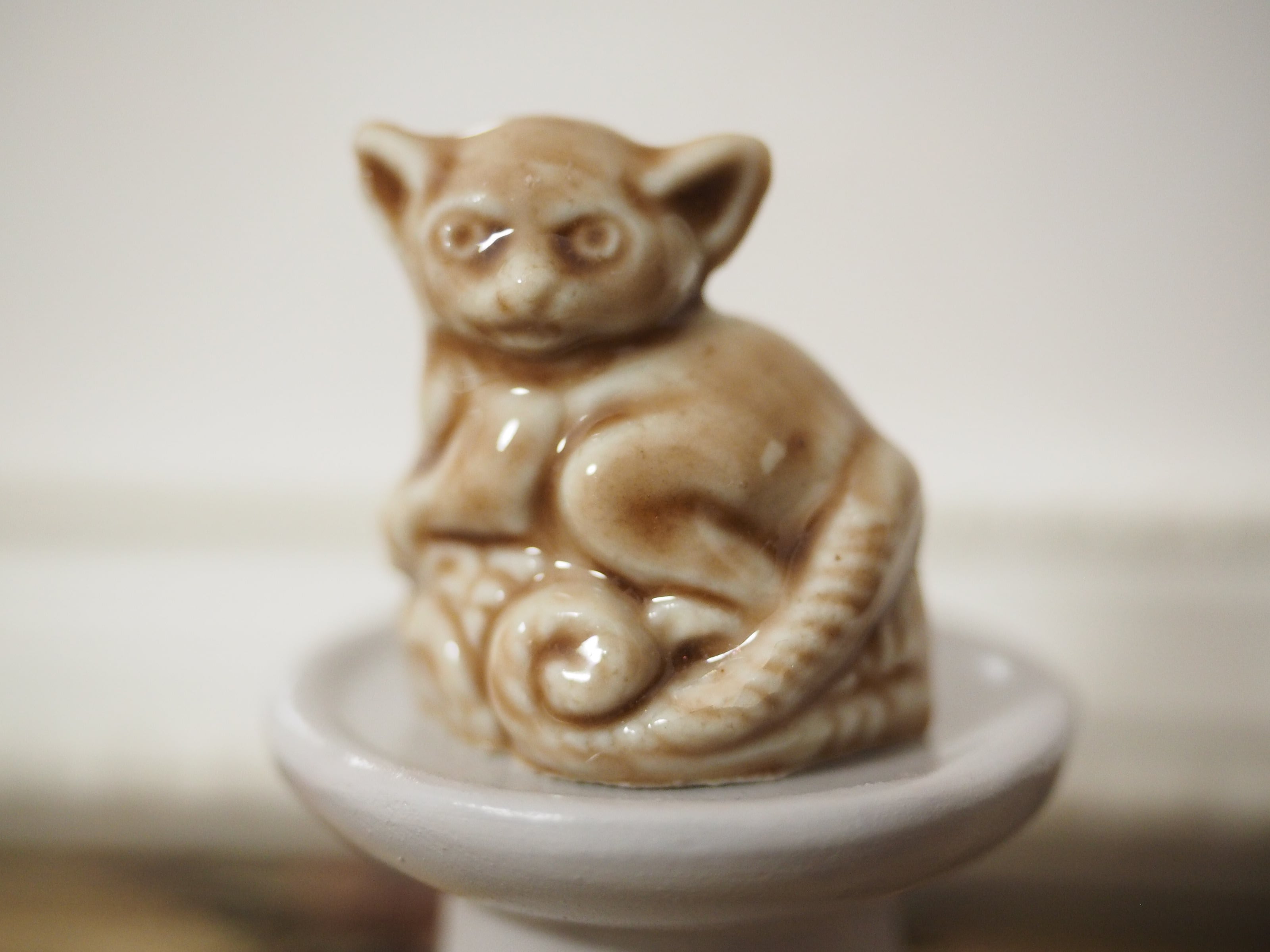 釉薬の陰影が美しい、小さな動物フィギュリンのブッシュベイビー
