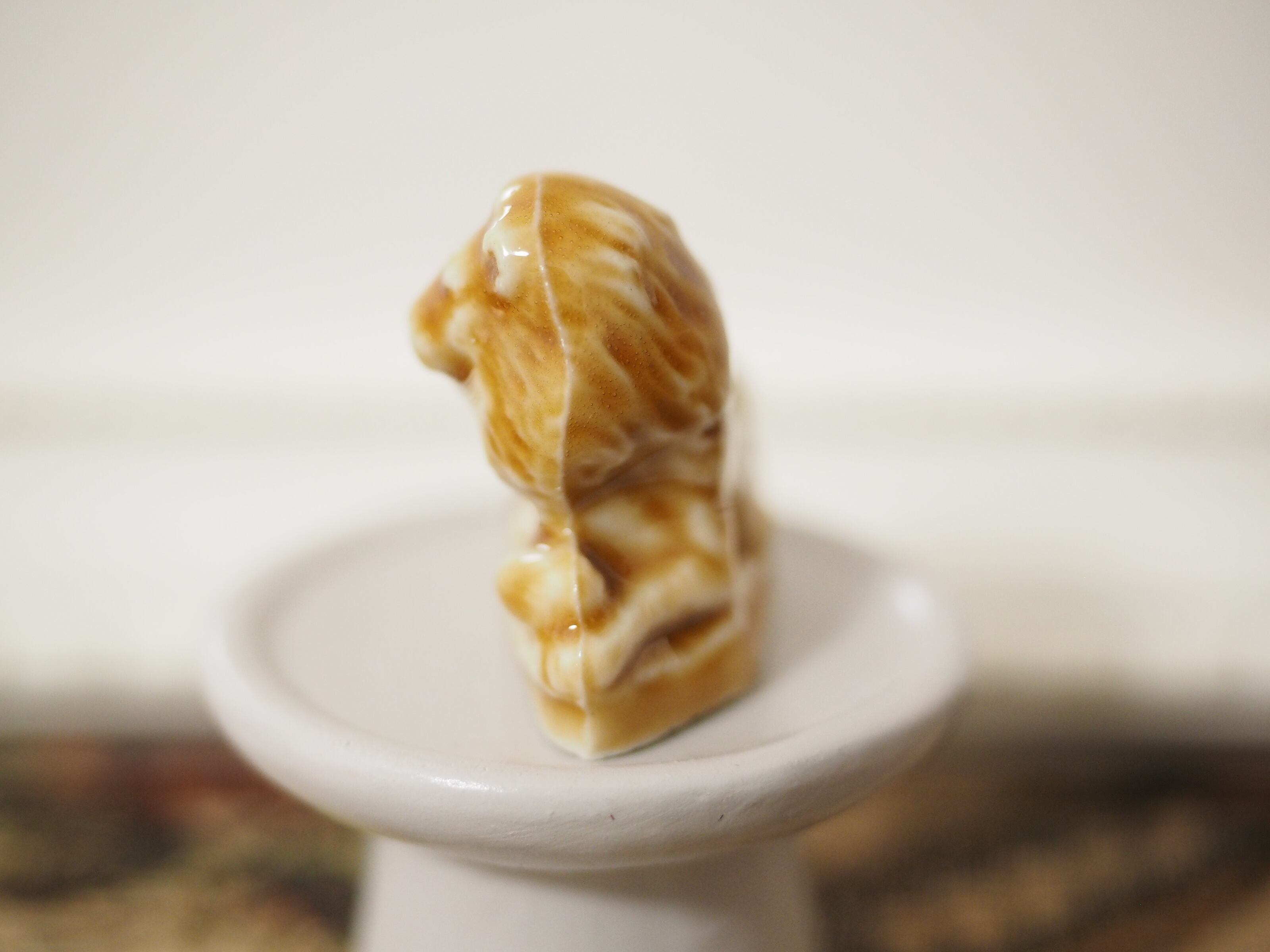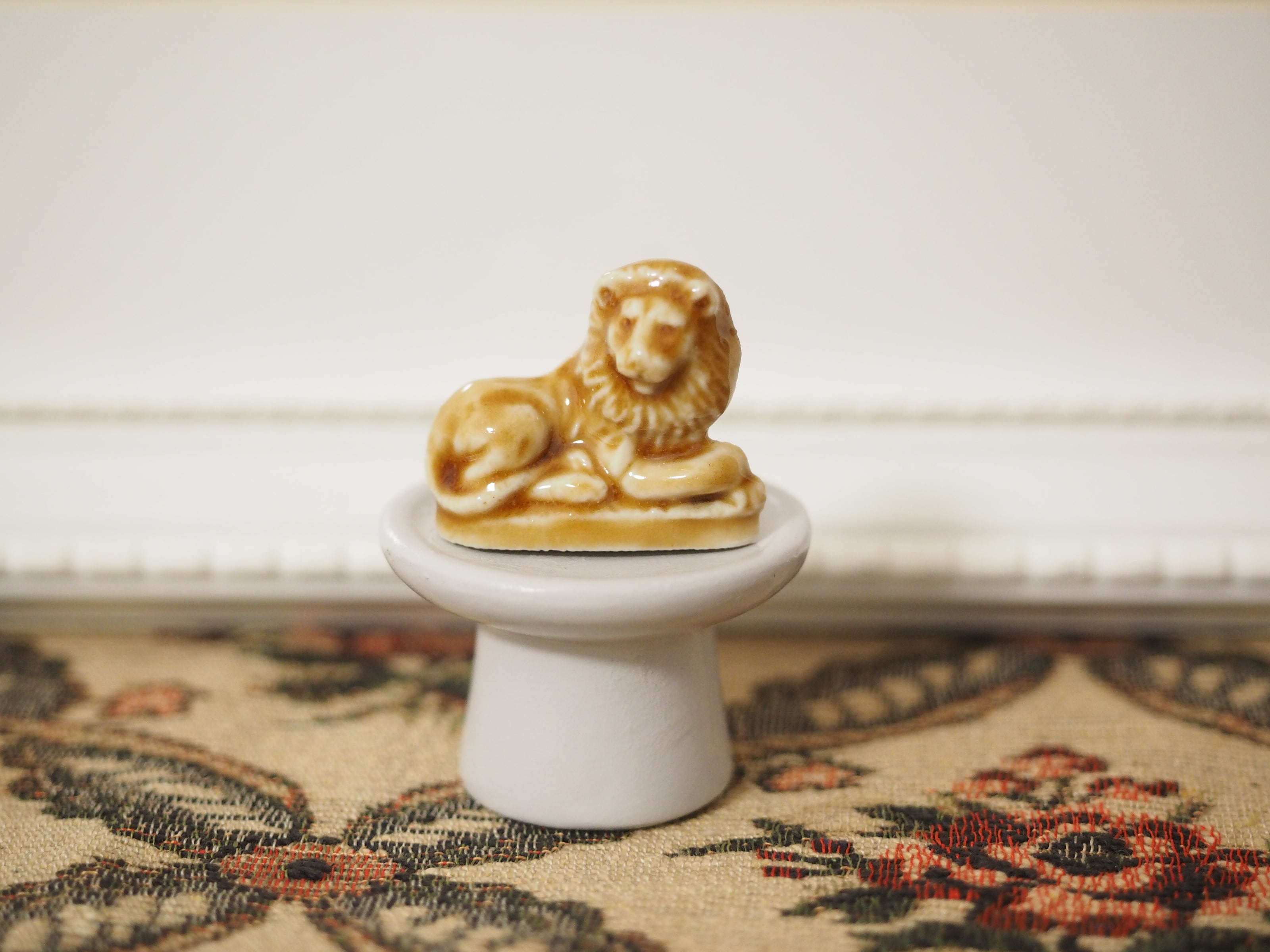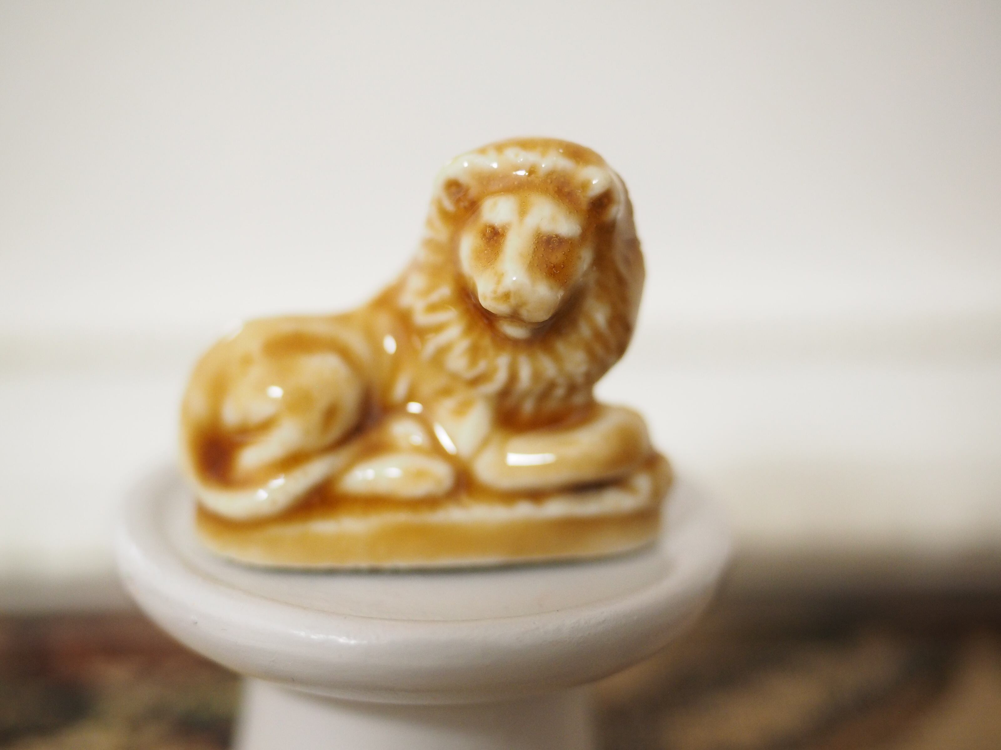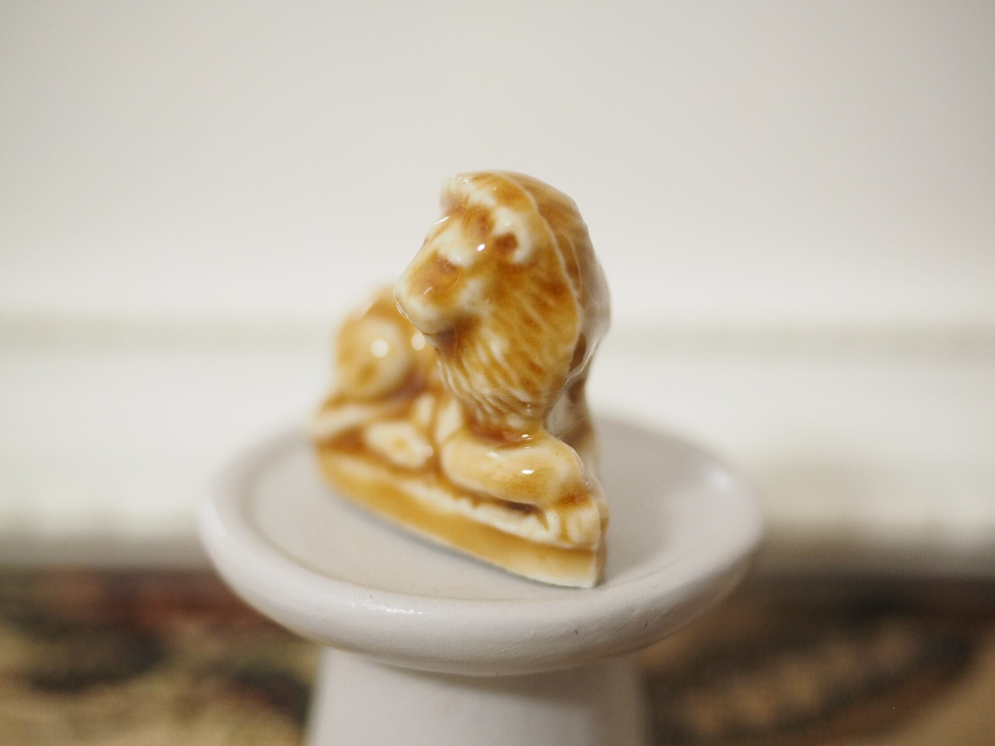 釉薬の陰影が美しい、小さな動物フィギュリンの雄ライオン