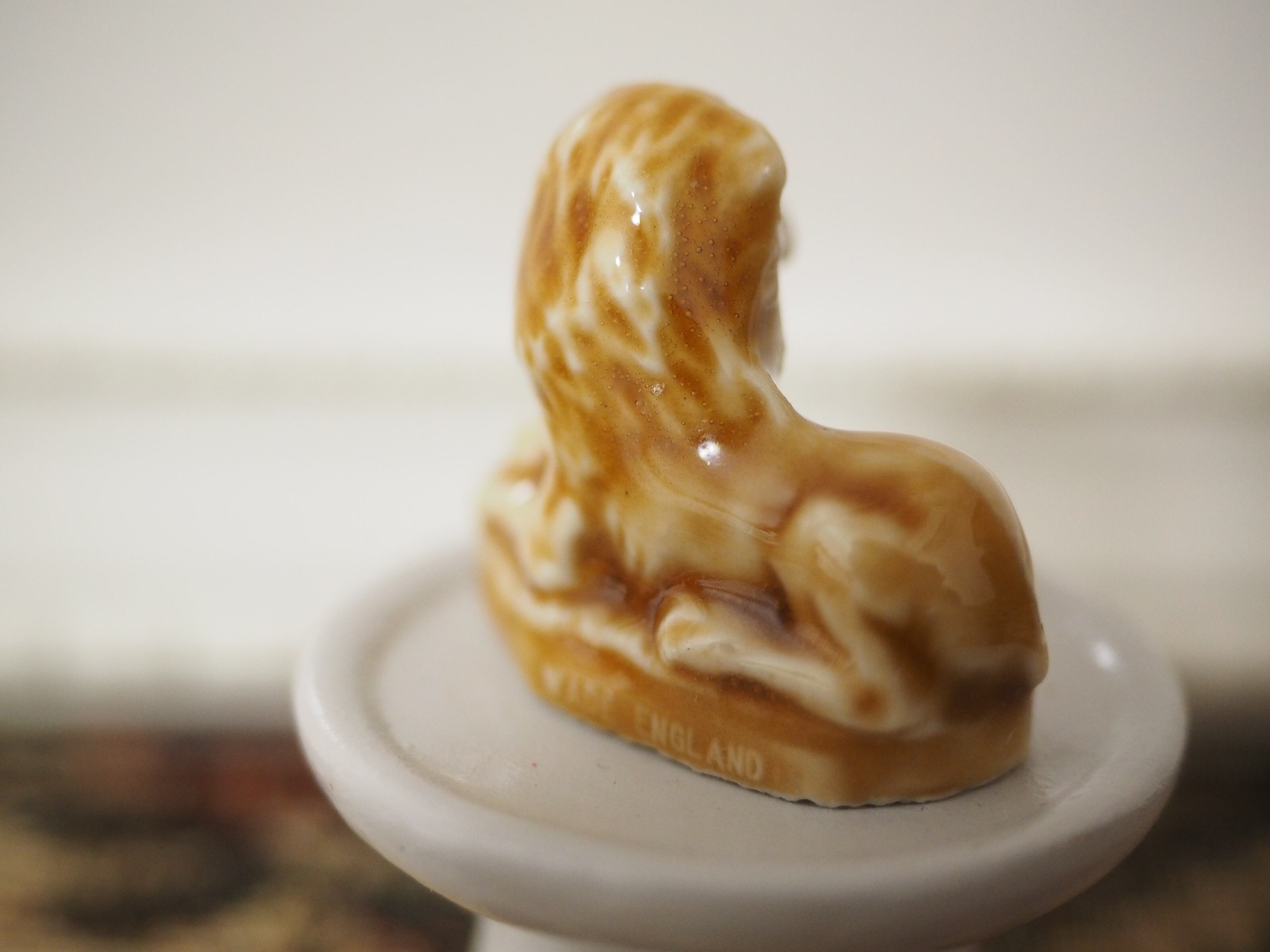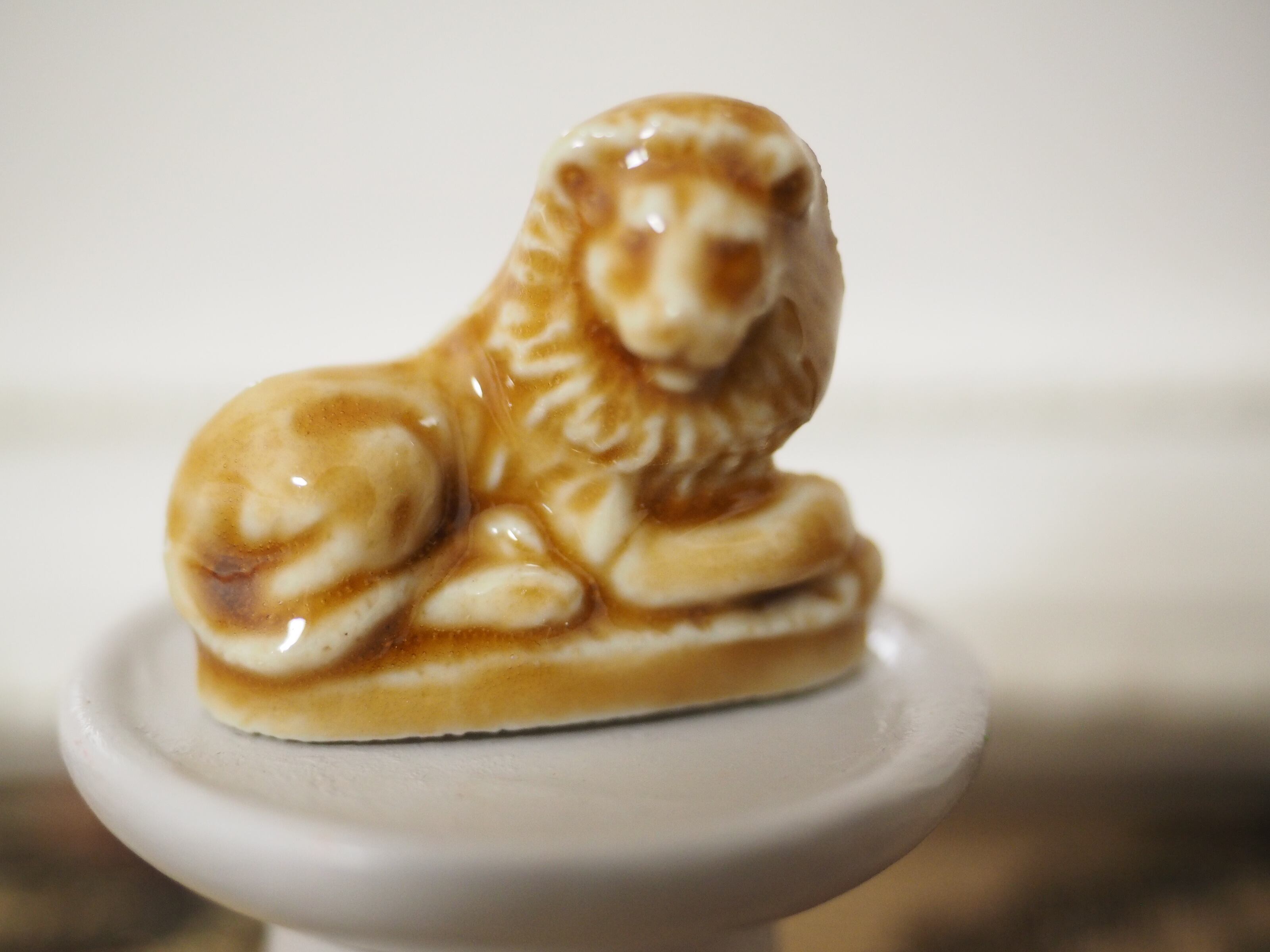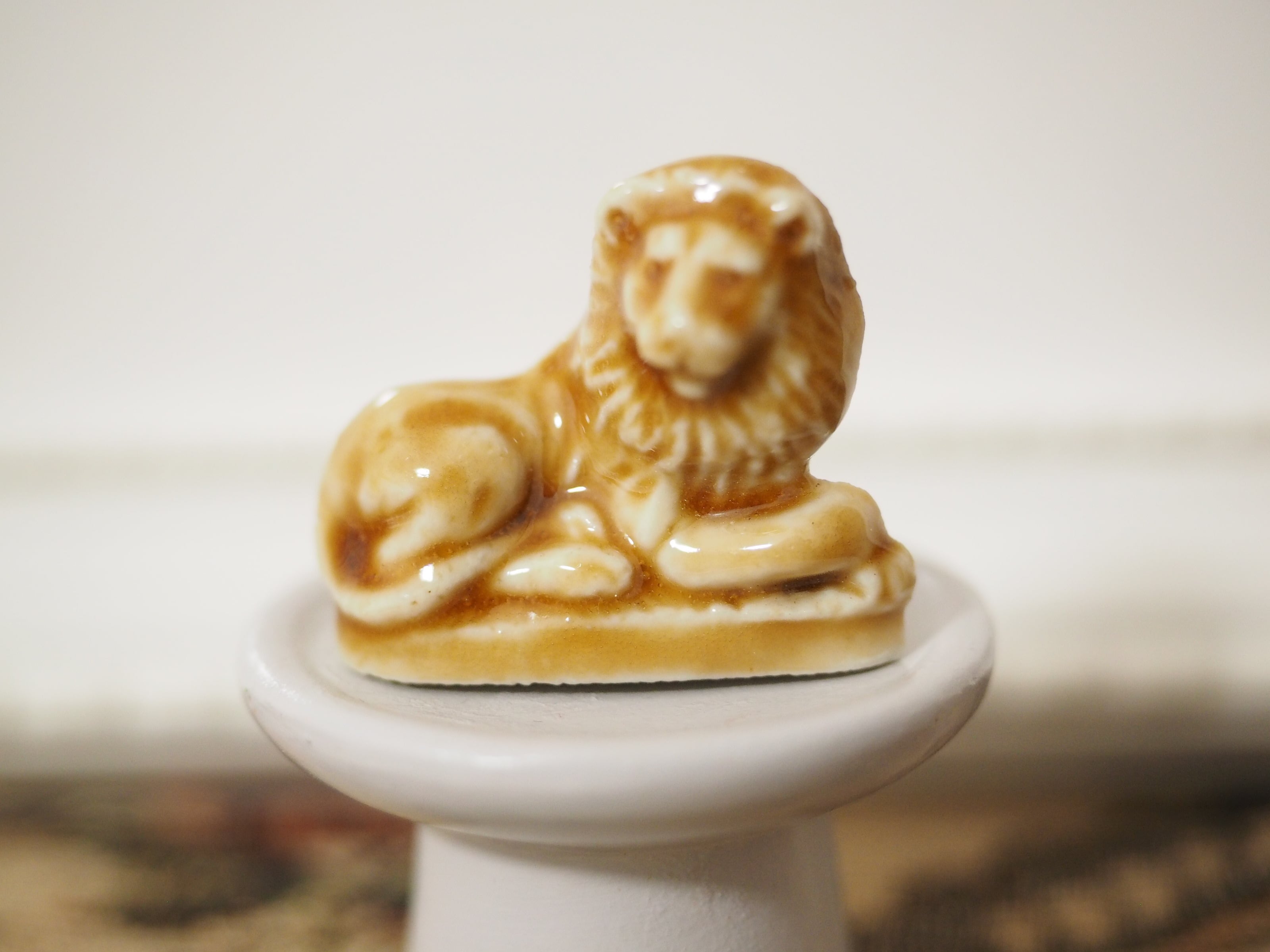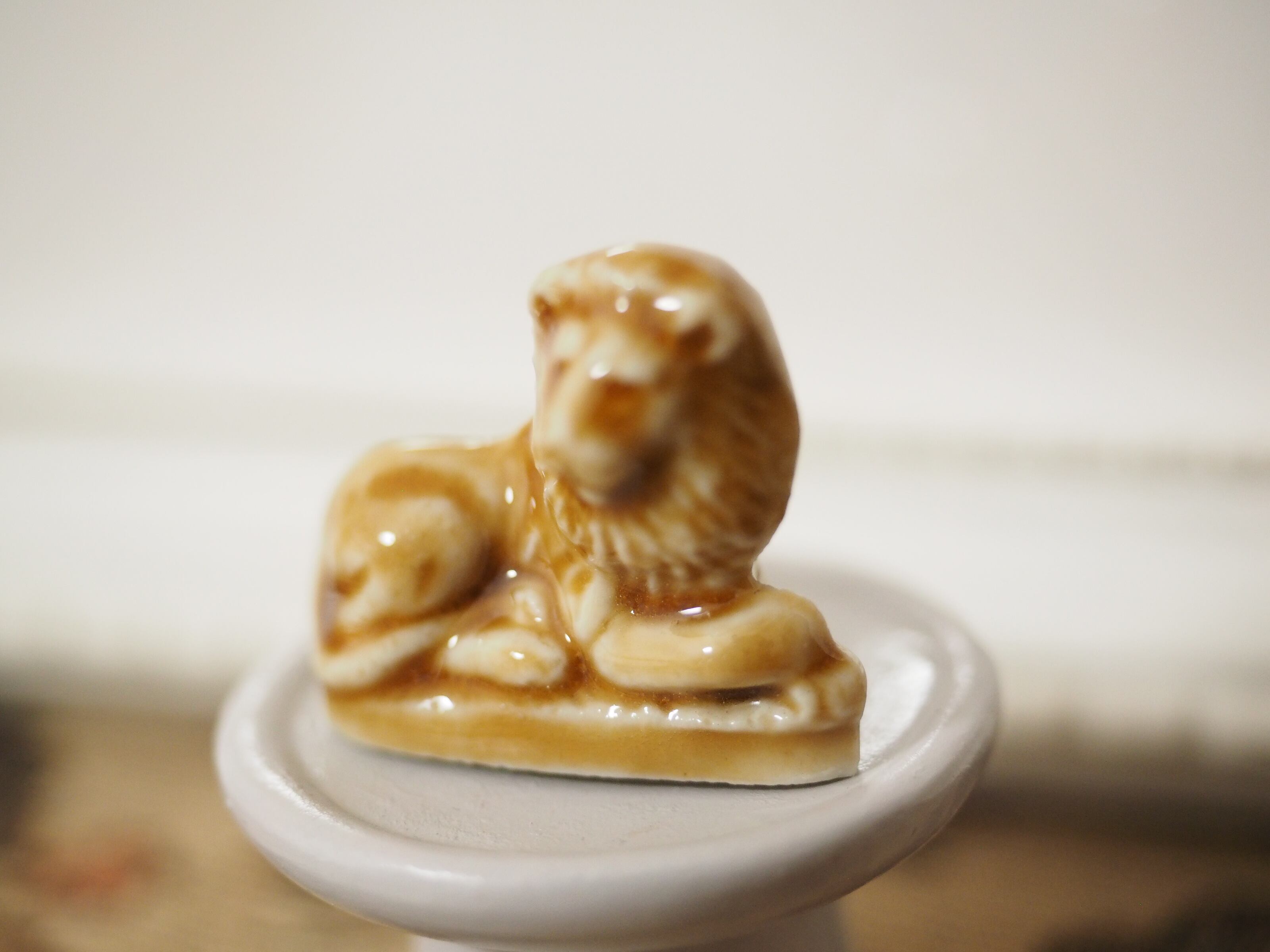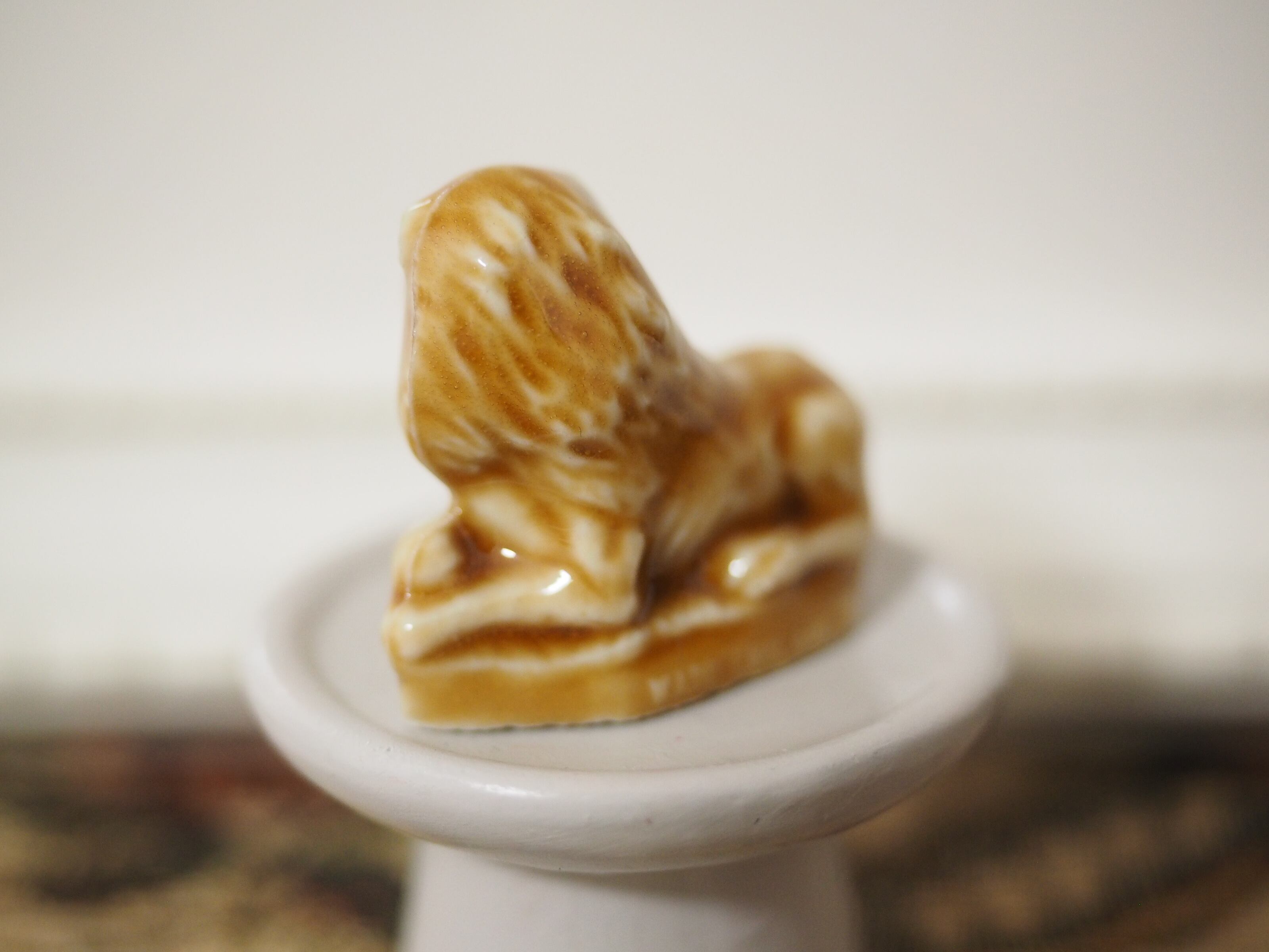 釉薬の陰影が美しい、小さな動物フィギュリンの雄ライオン