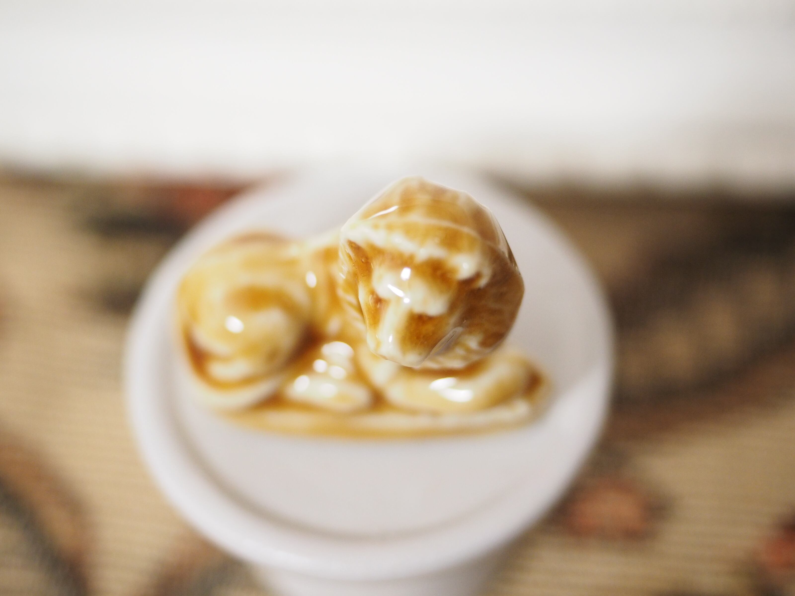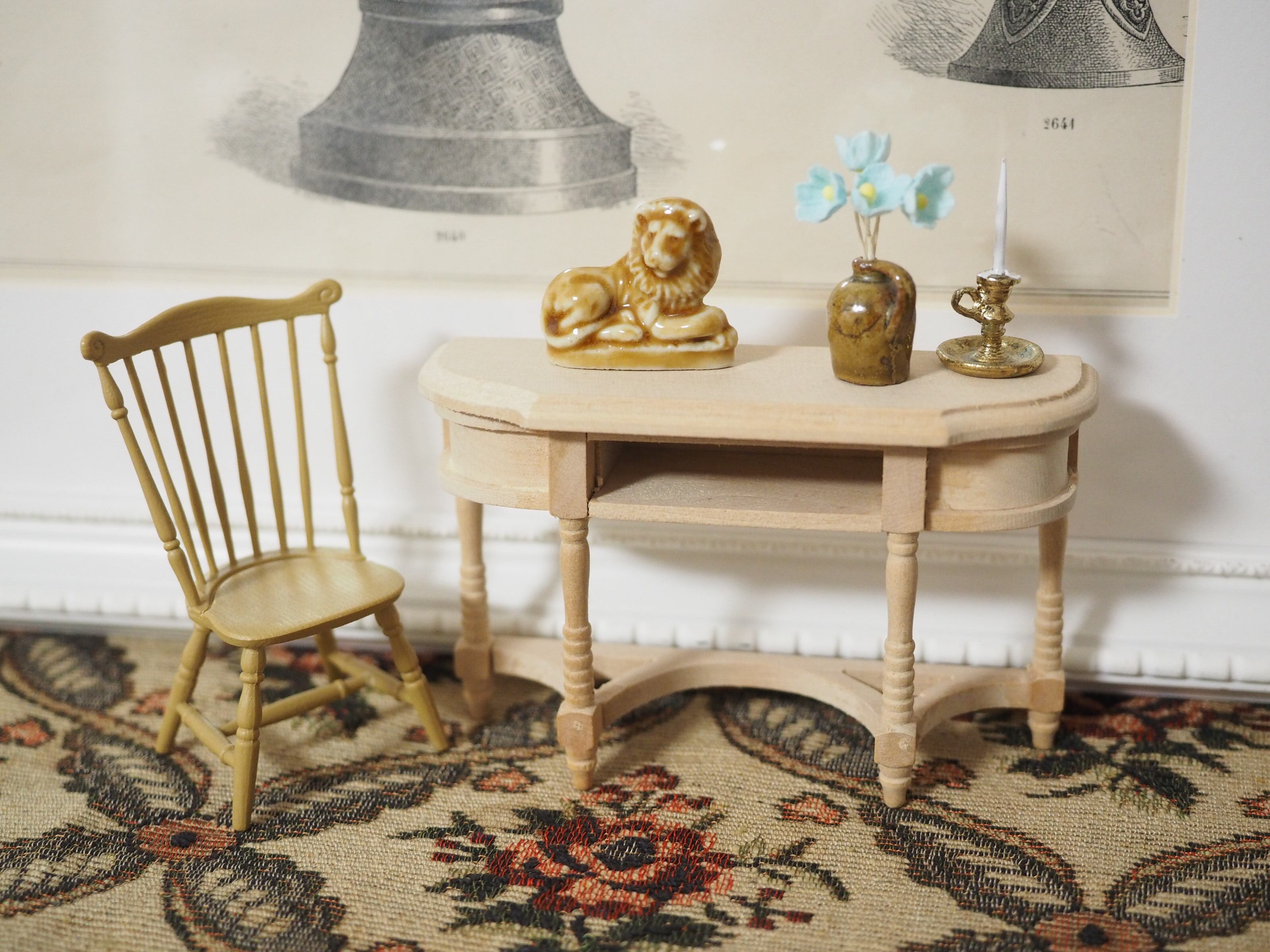 ミニチュアの彫刻のような精巧さで、お人形の家具にぴったりなサイズ感。ちょこんと置くと存在感があります。