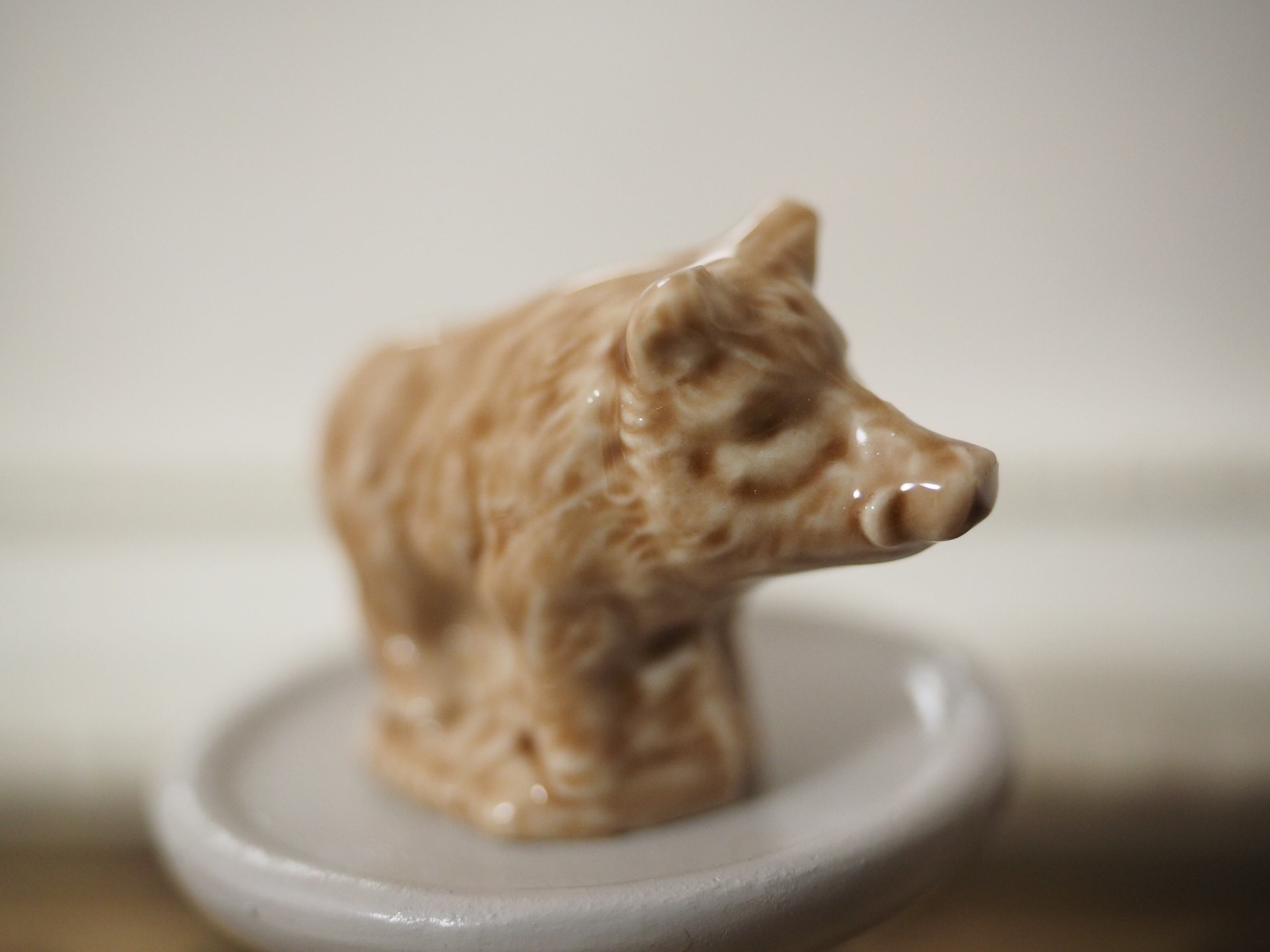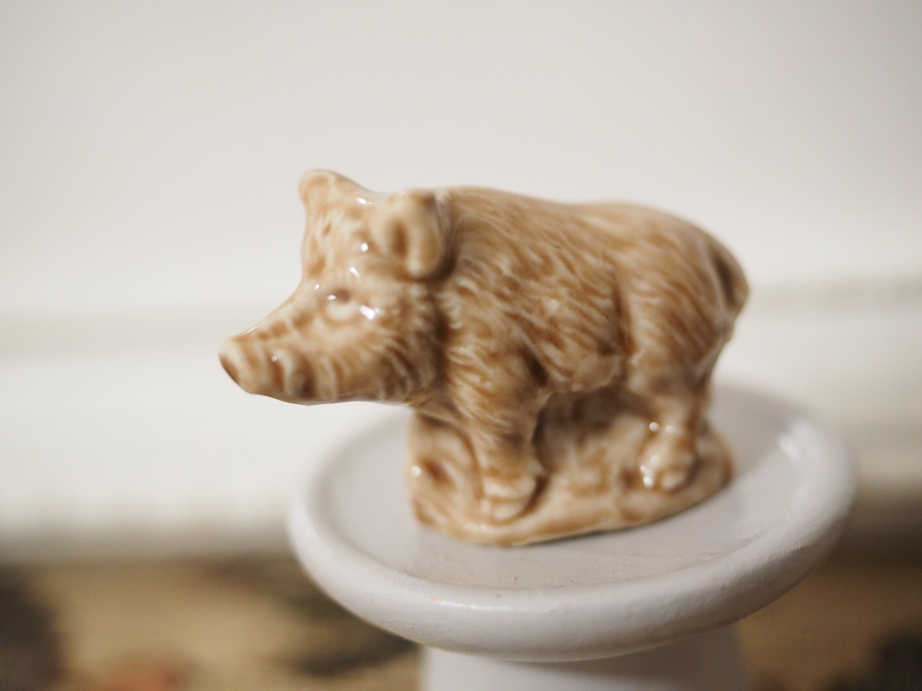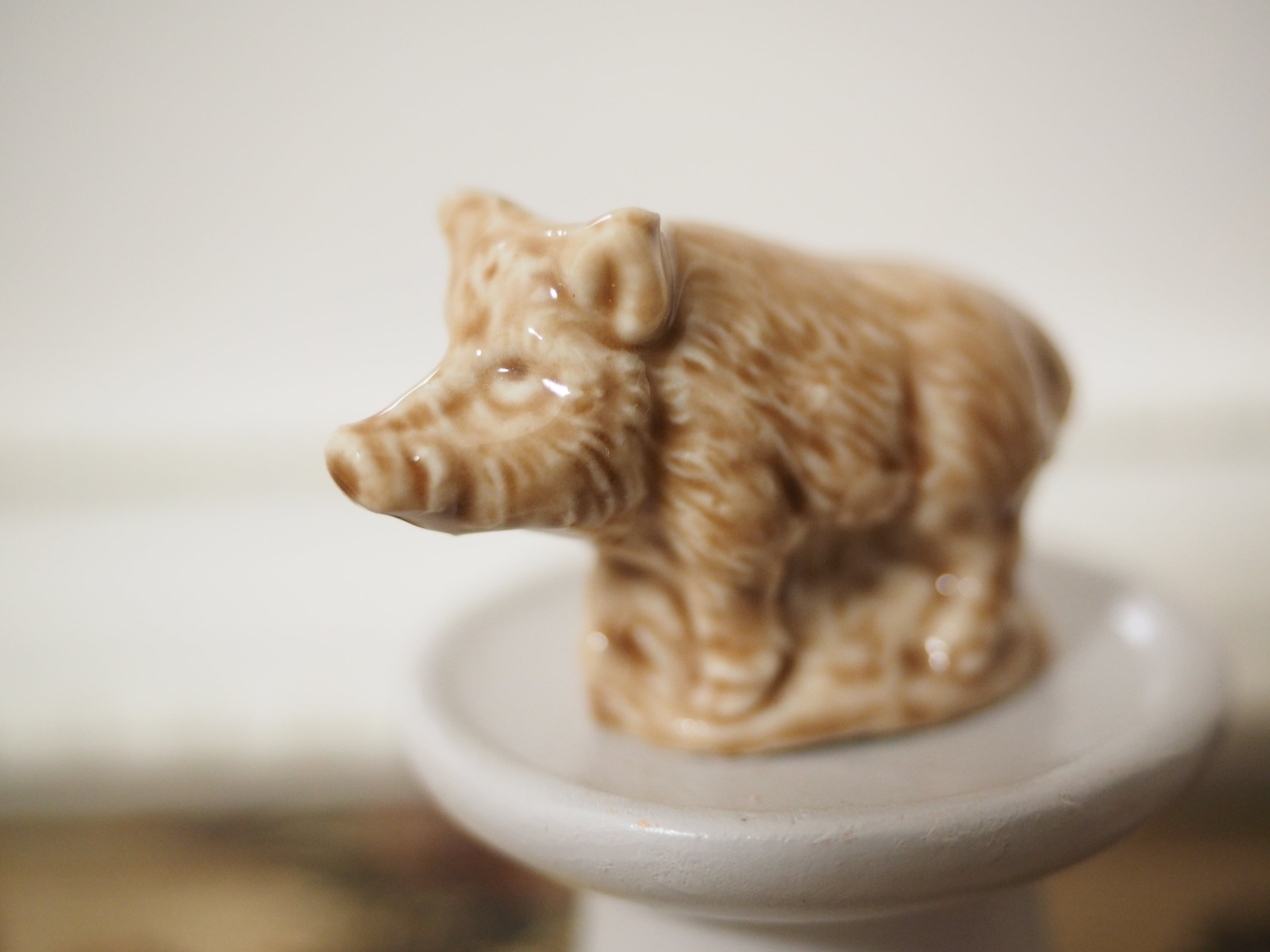 釉薬の陰影が美しい、小さな動物フィギュリンのWild Boar(イノシシ)