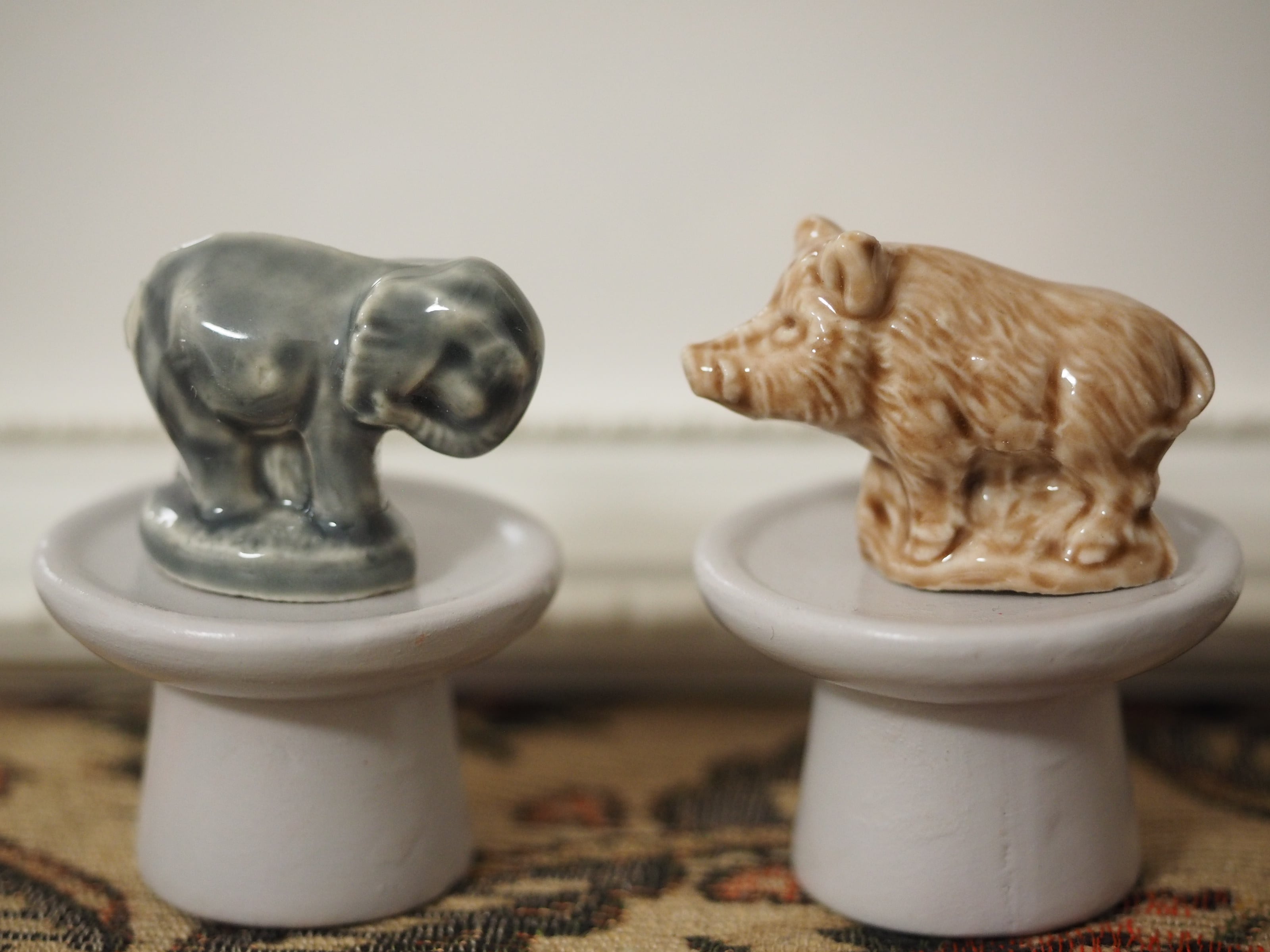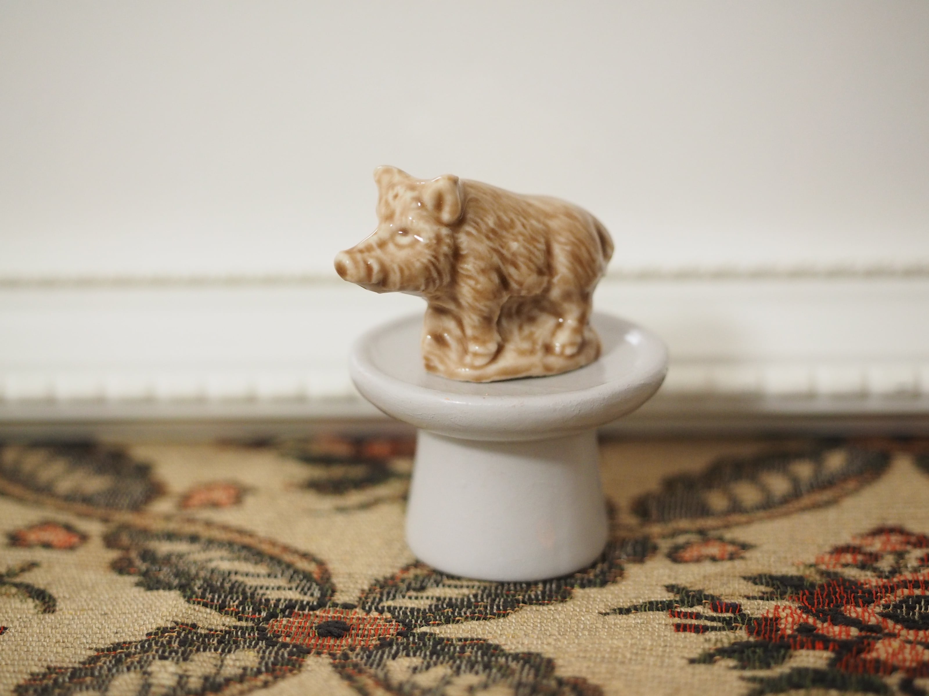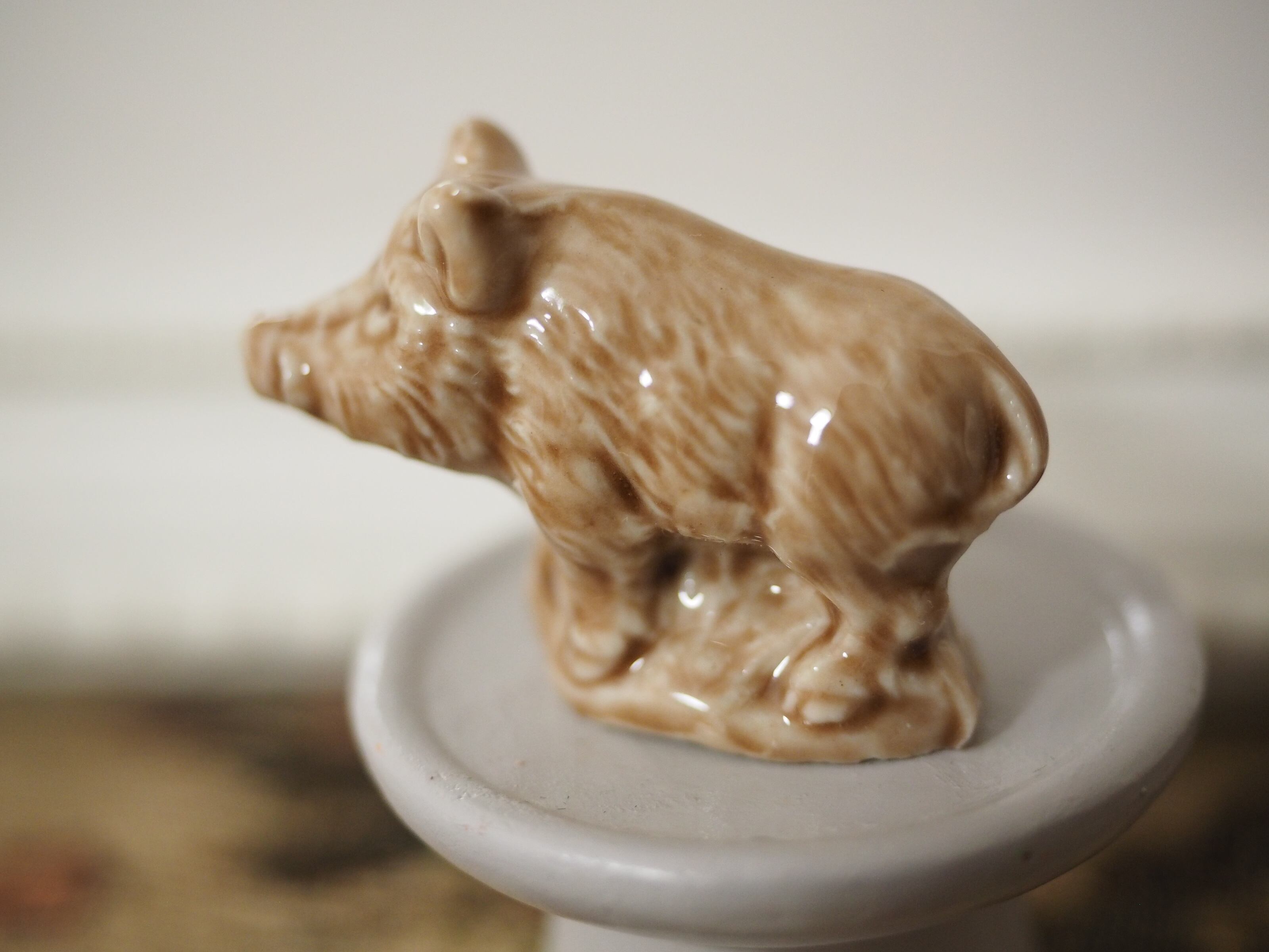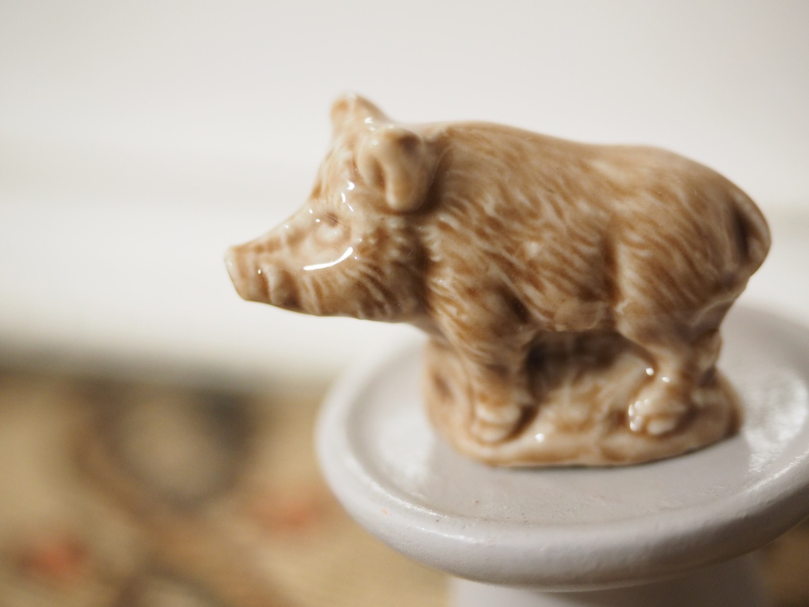釉薬の陰影が美しい、小さな動物フィギュリンのWild Boar(イノシシ)