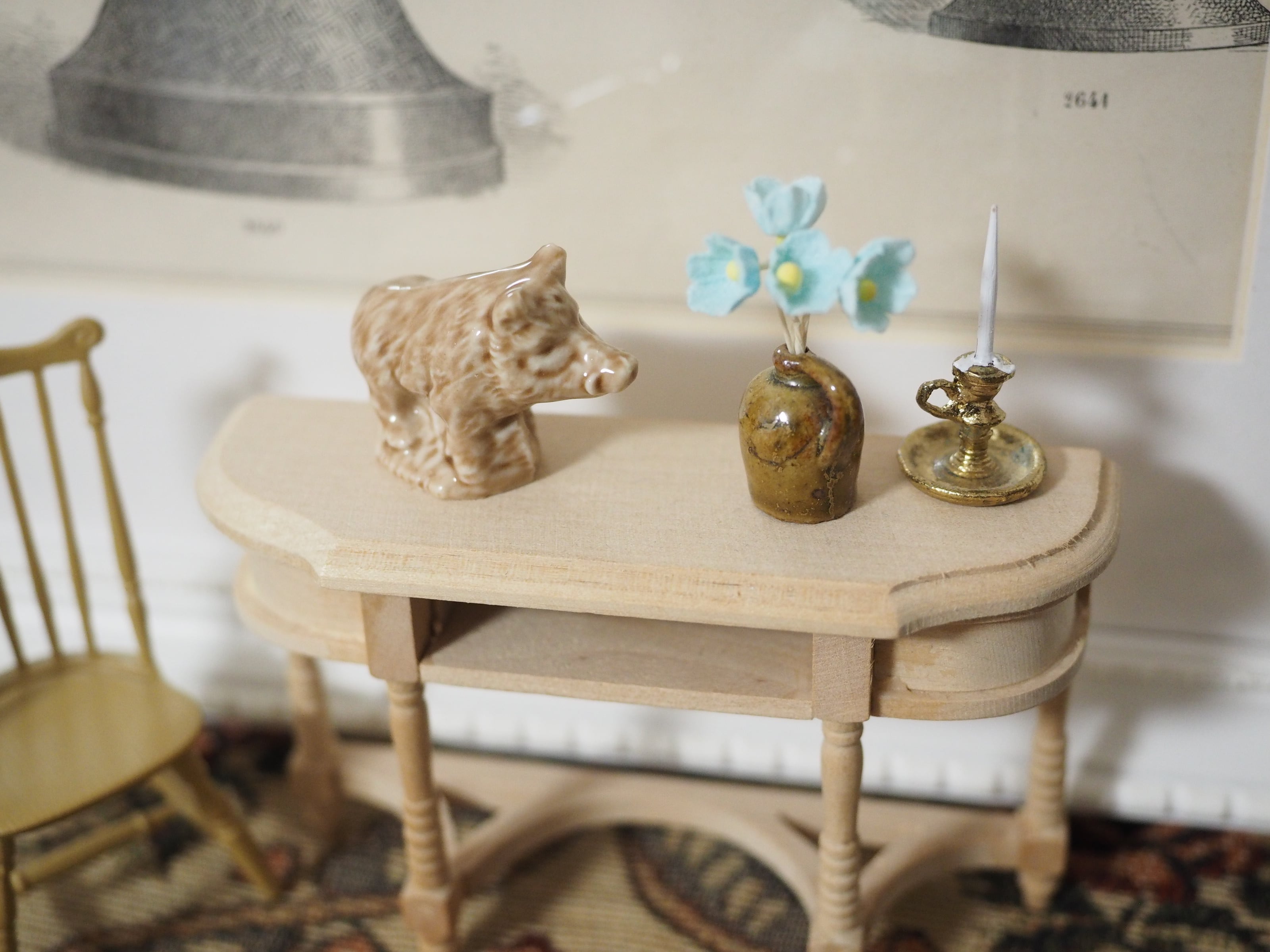 ミニチュアの彫刻のような精巧さで、お人形の家具にぴったりなサイズ感。ちょこんと置くと存在感があります。集めたくなるかわいいシリーズです。