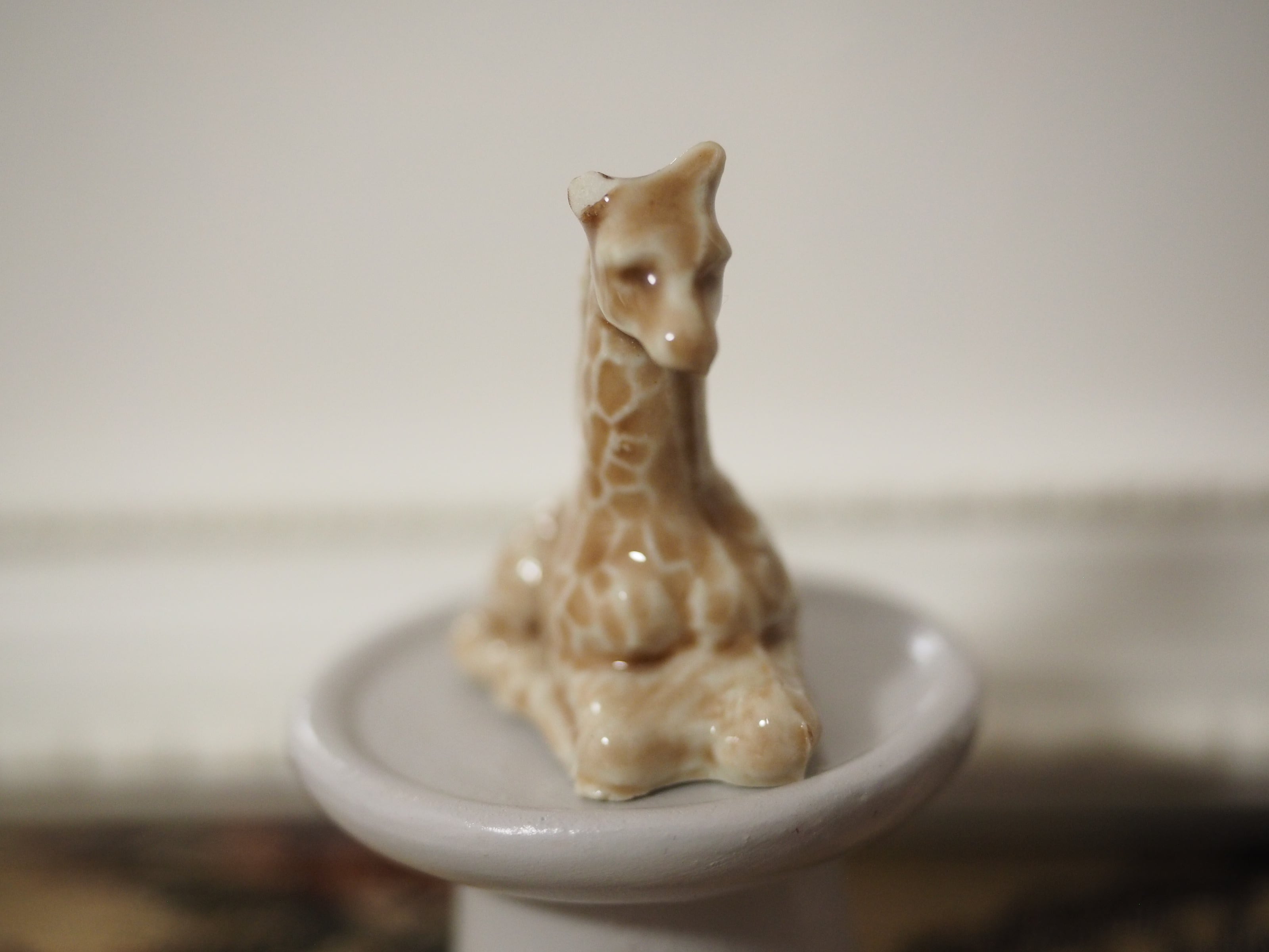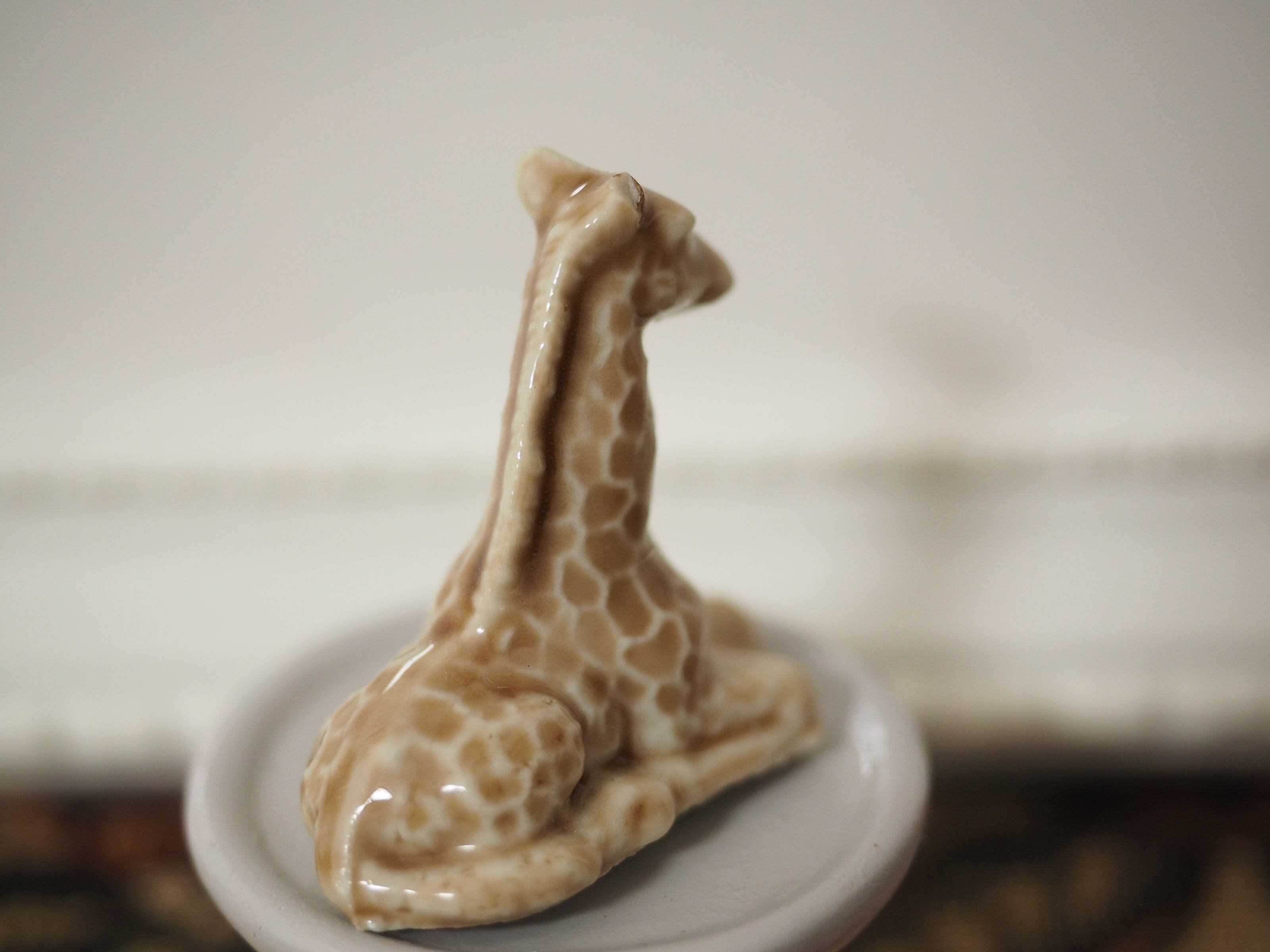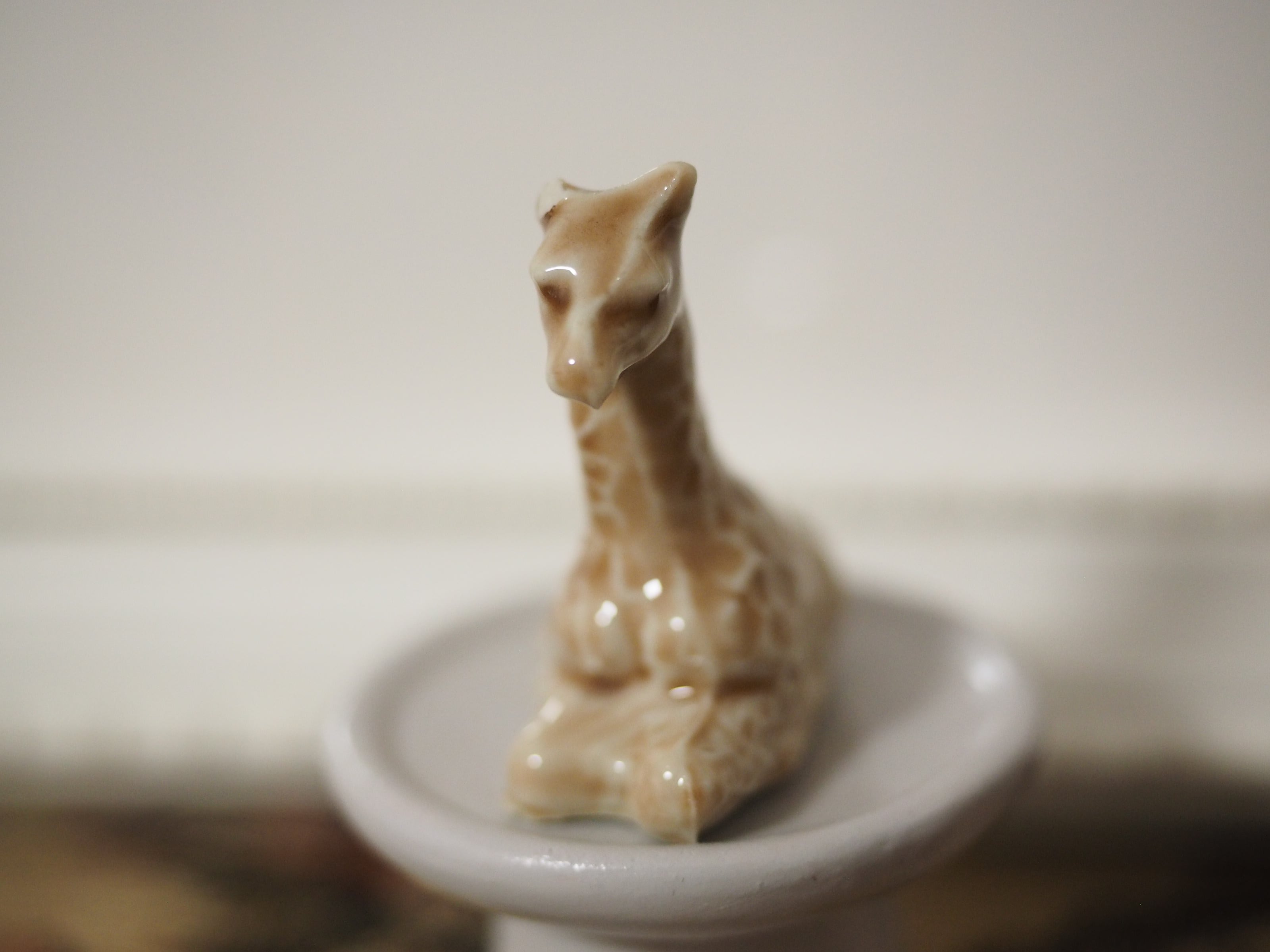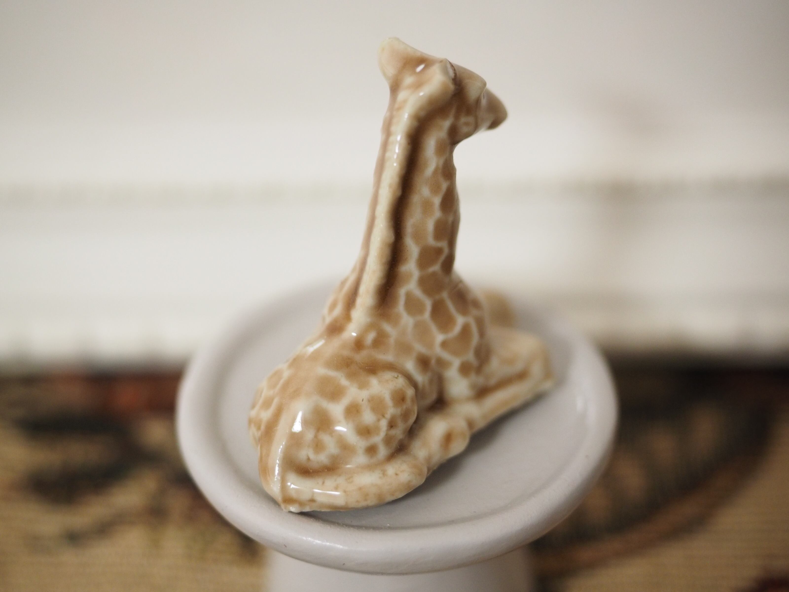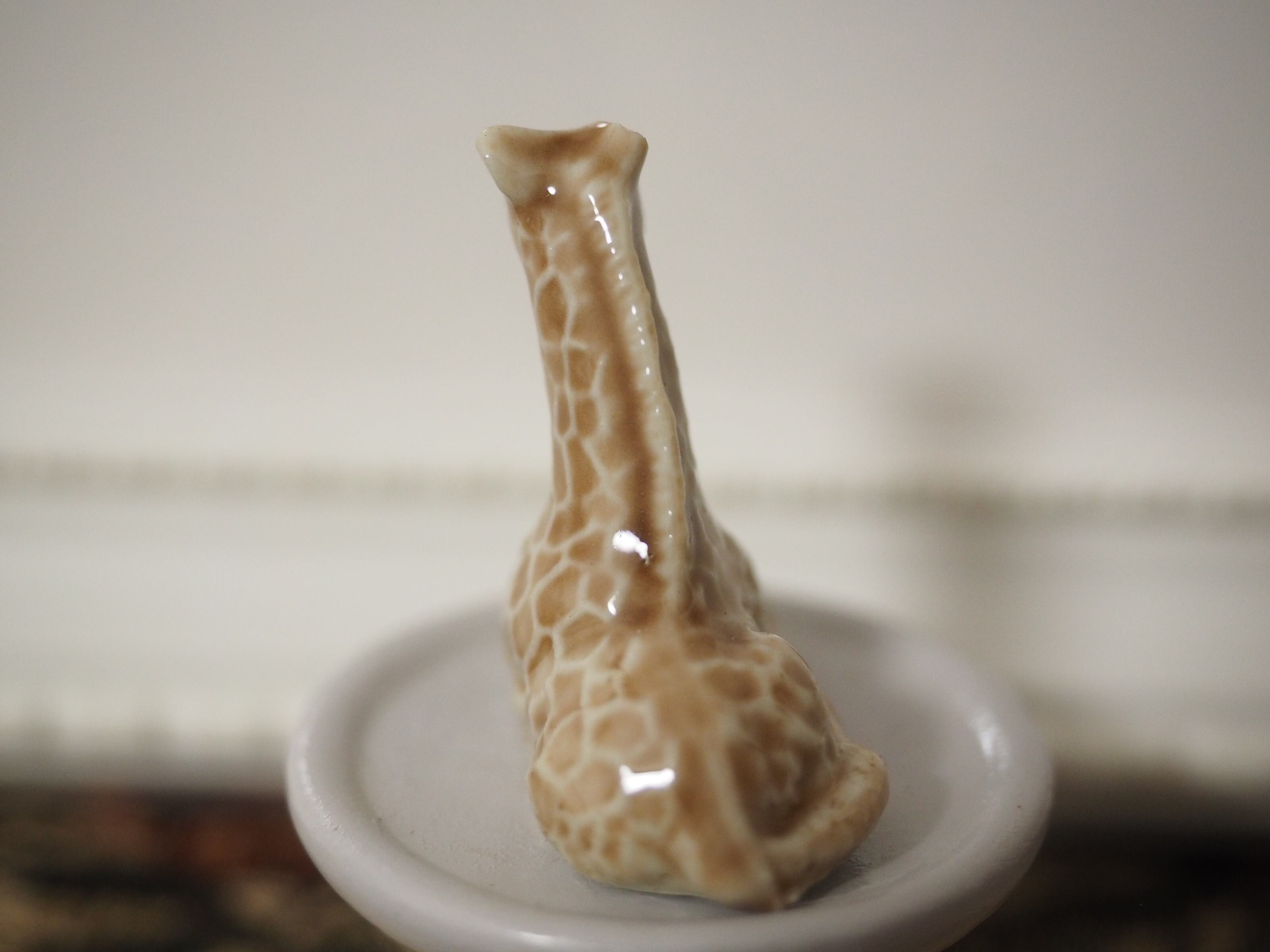 釉薬の陰影が美しい、小さな動物フィギュリンのキリン