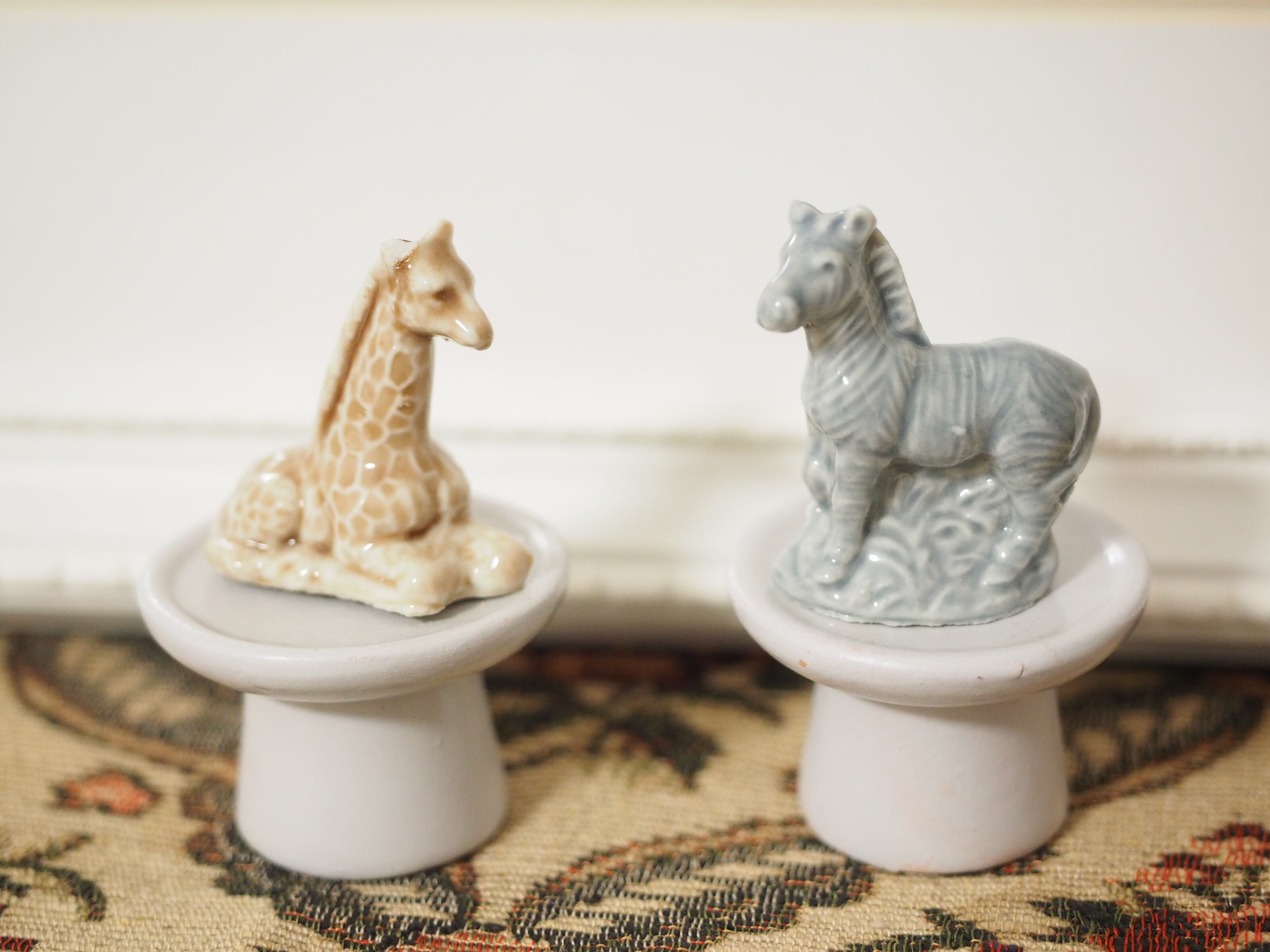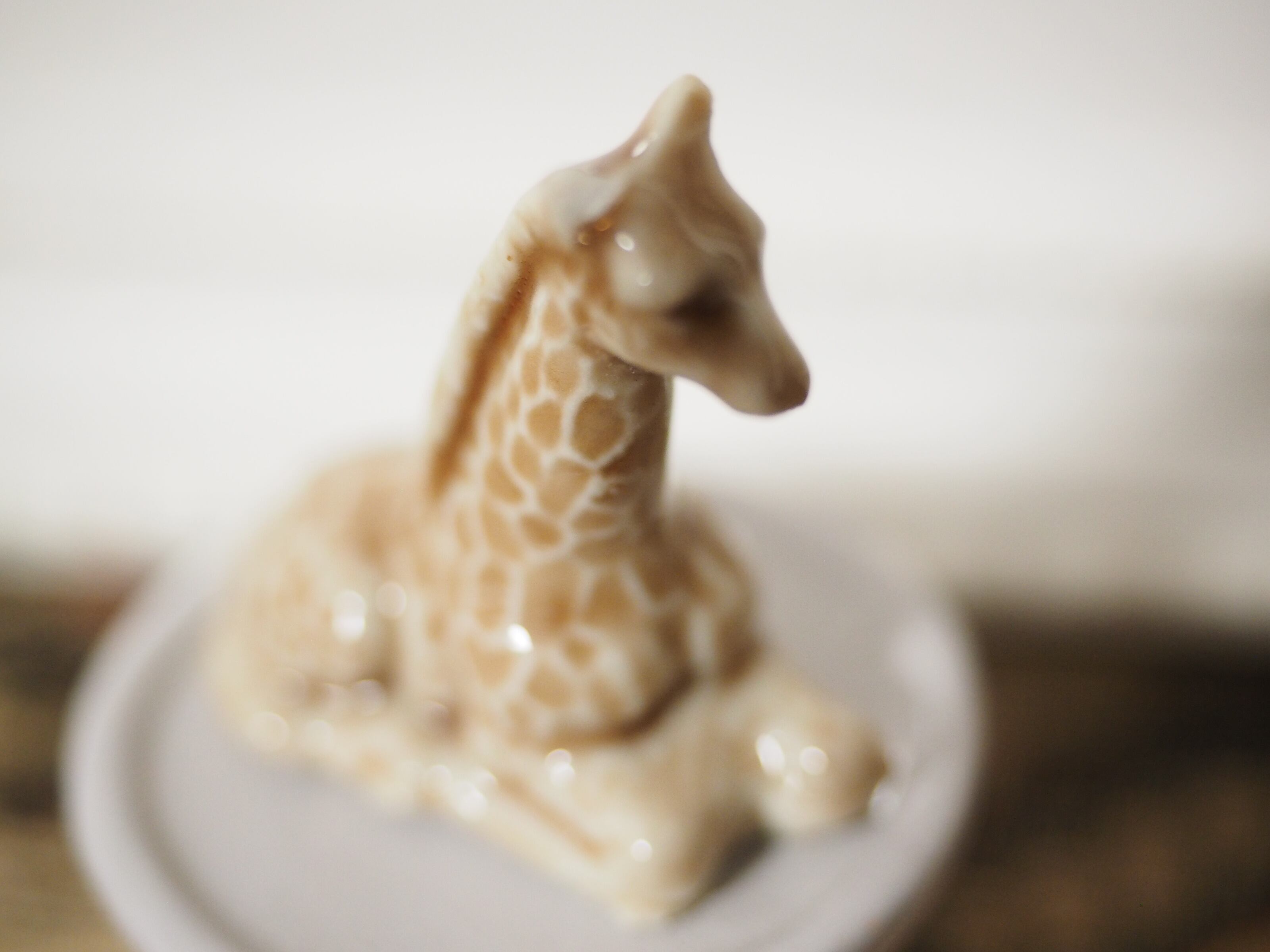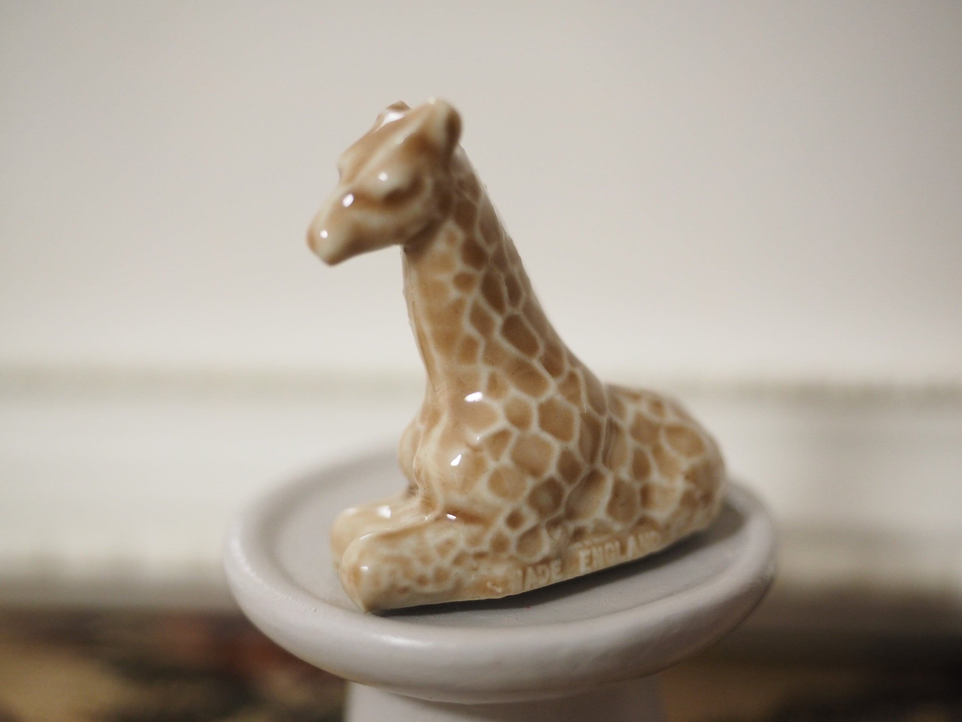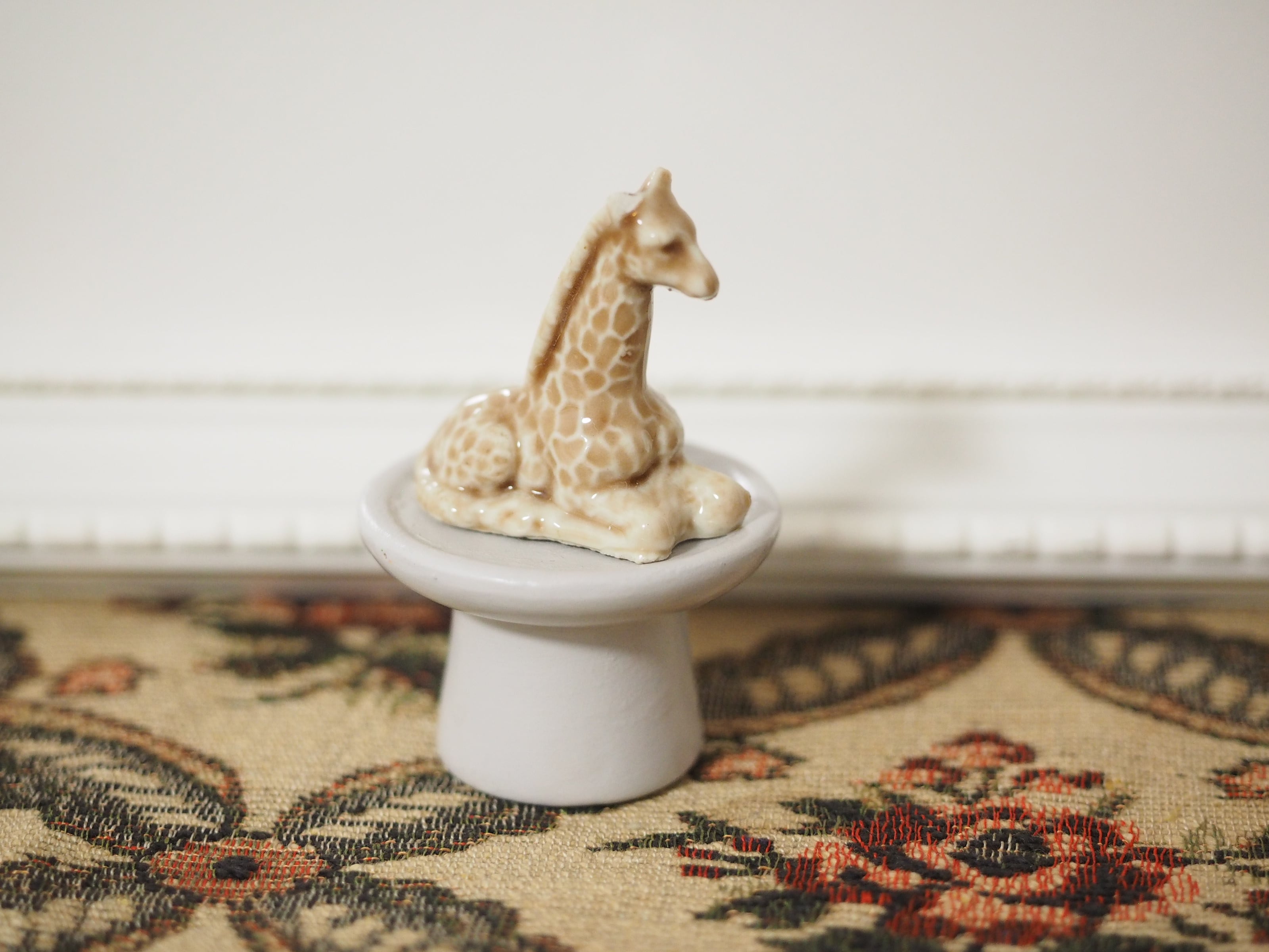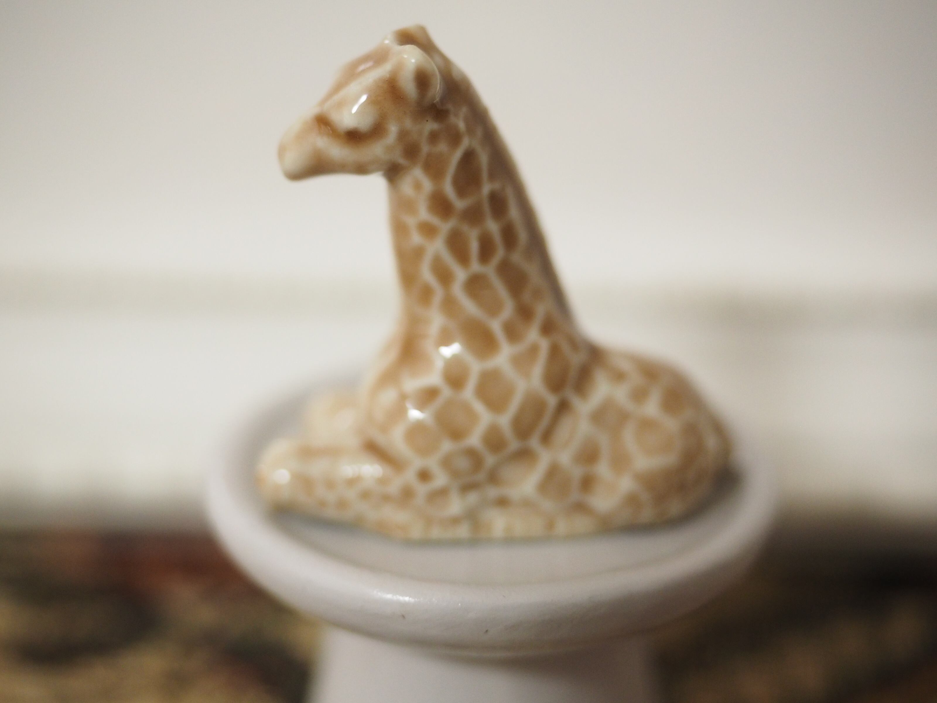 釉薬の陰影が美しい、小さな動物フィギュリンのキリン