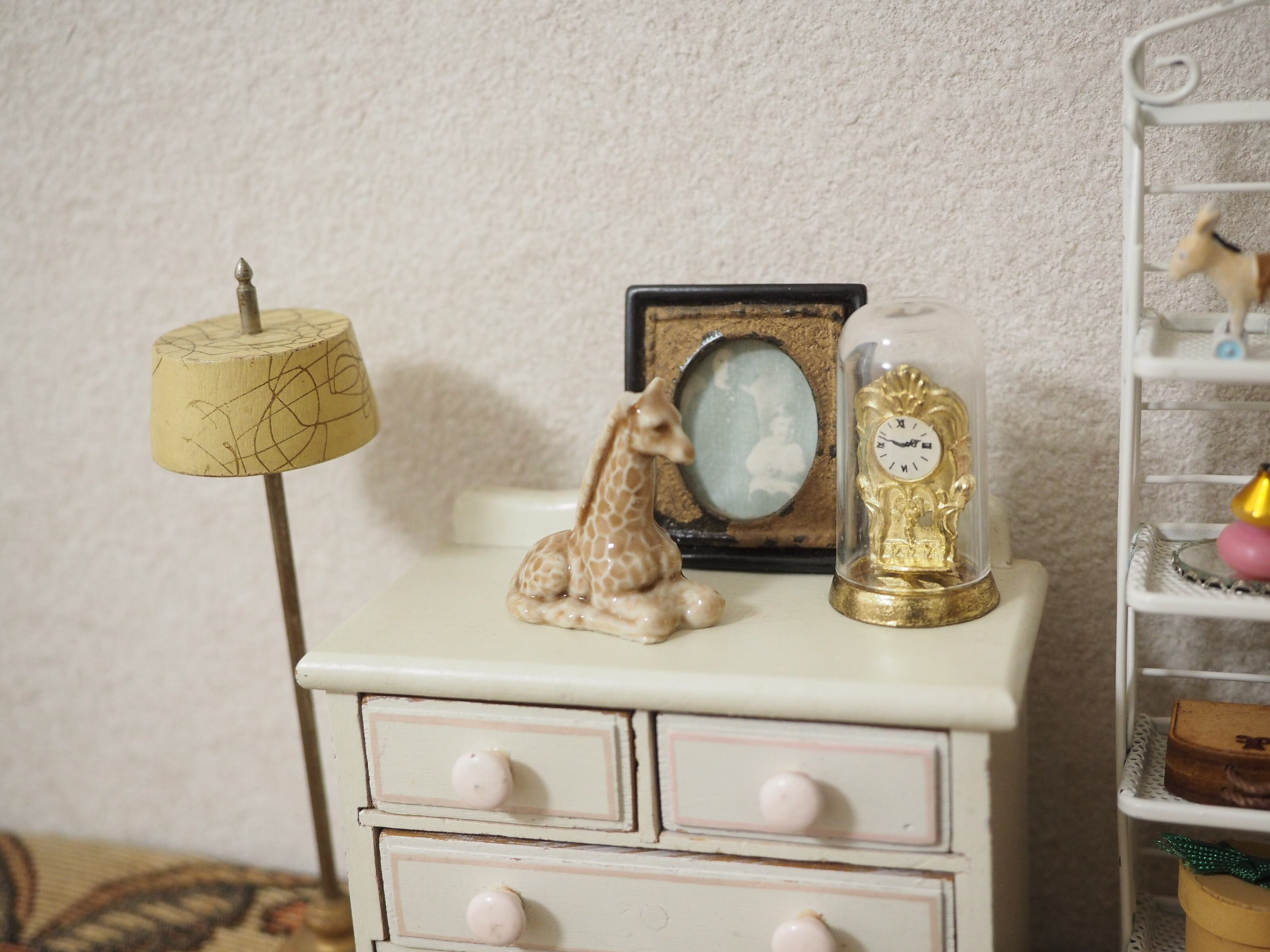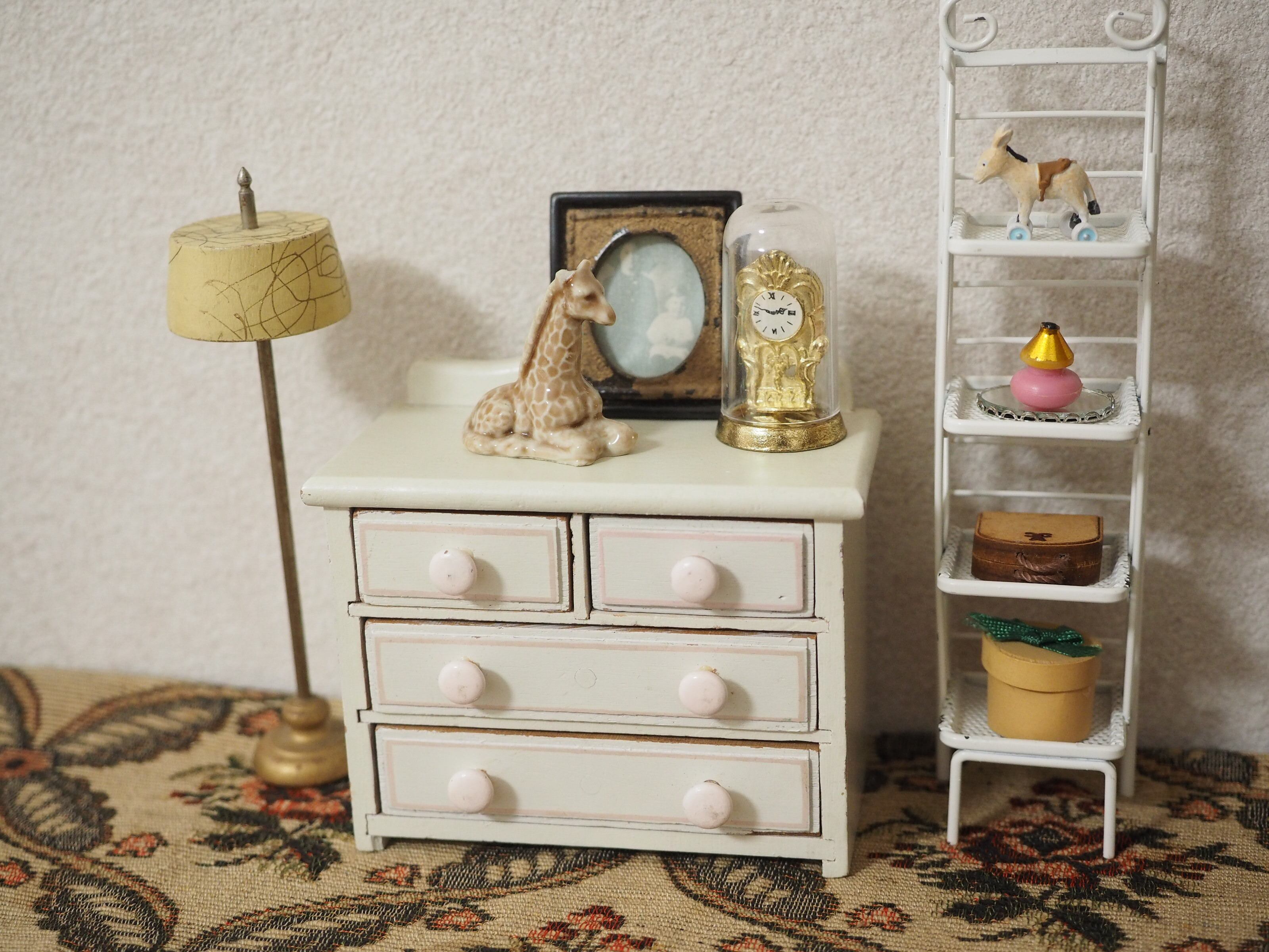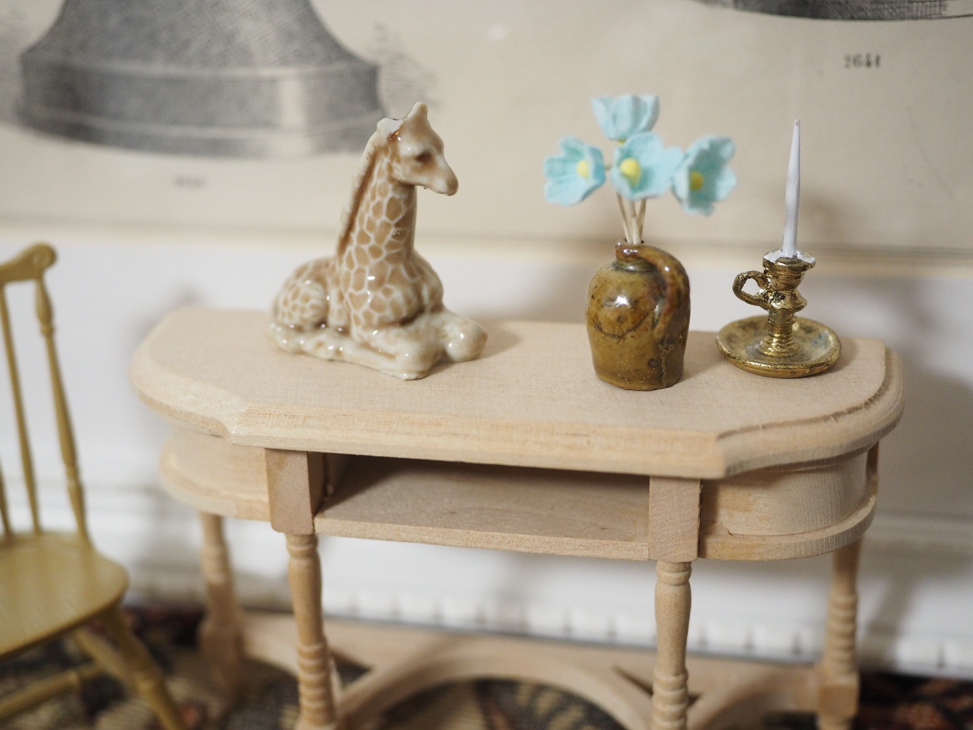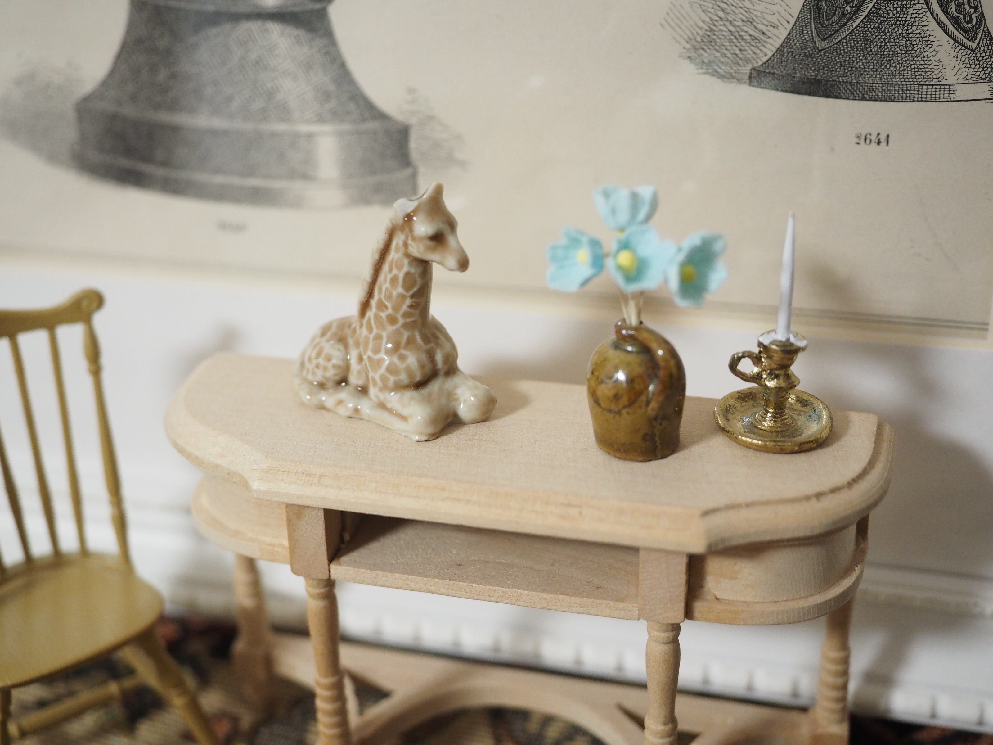 ミニチュアの彫刻のような精巧さで、お人形の家具にぴったりなサイズ感。ちょこんと置くと存在感があります。集めたくなるかわいいシリーズです。