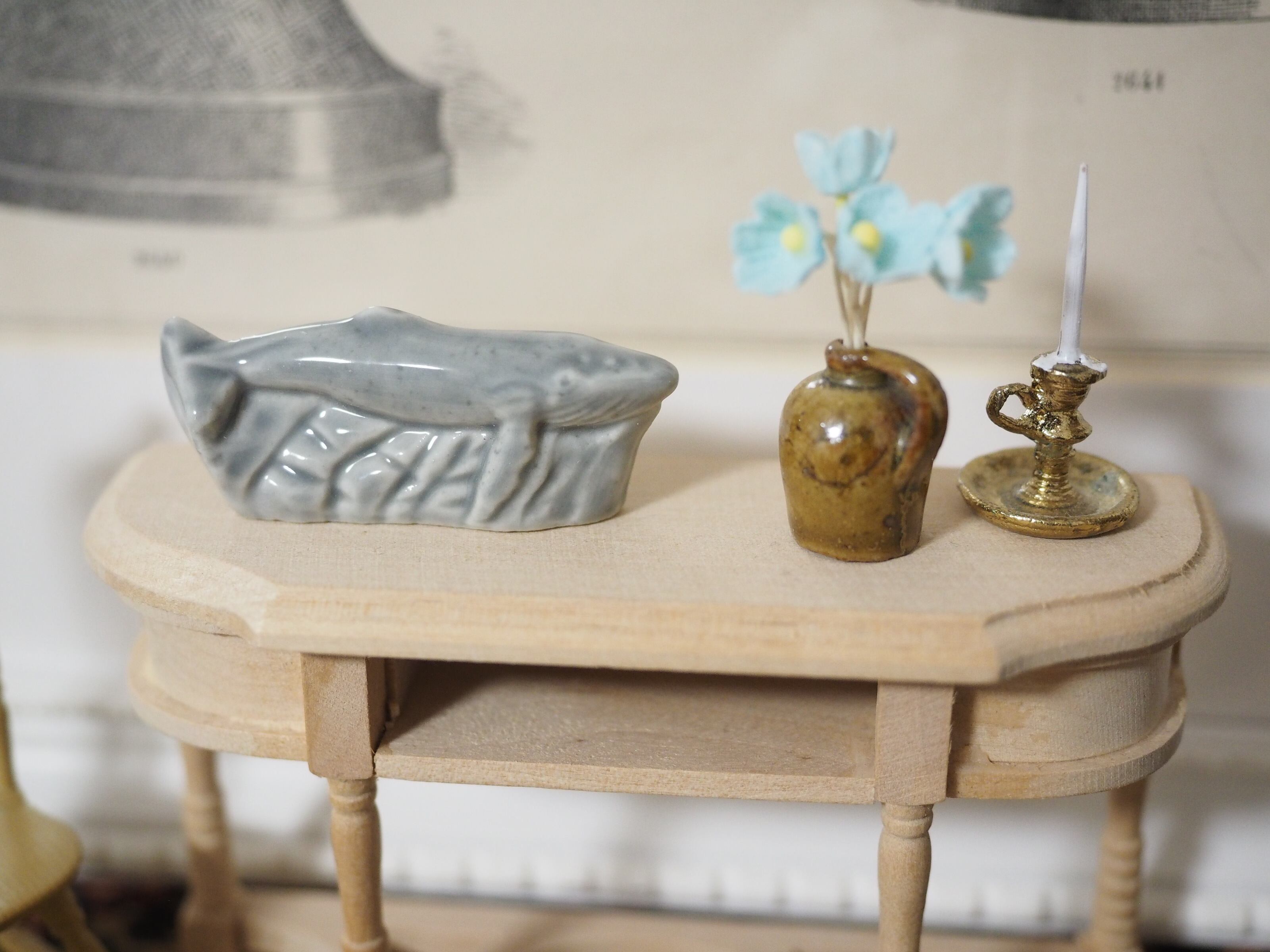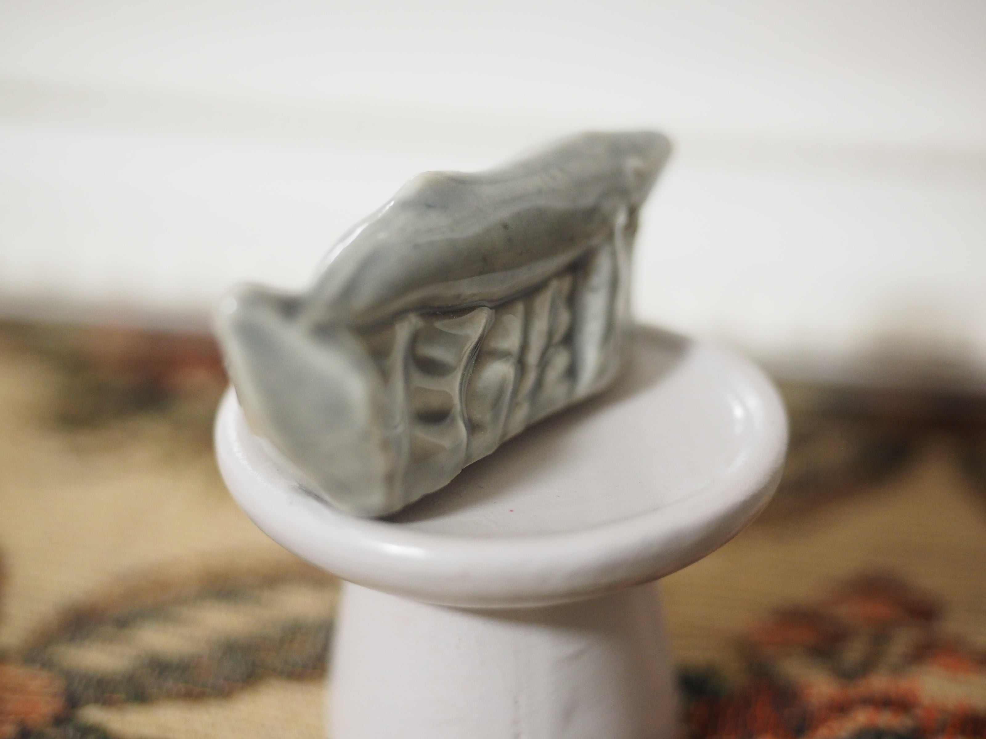 ミニチュアの彫刻のような精巧さで、お人形の家具にぴったりなサイズ感。ちょこんと置くと存在感があります。集めたくなるかわいいシリーズです。