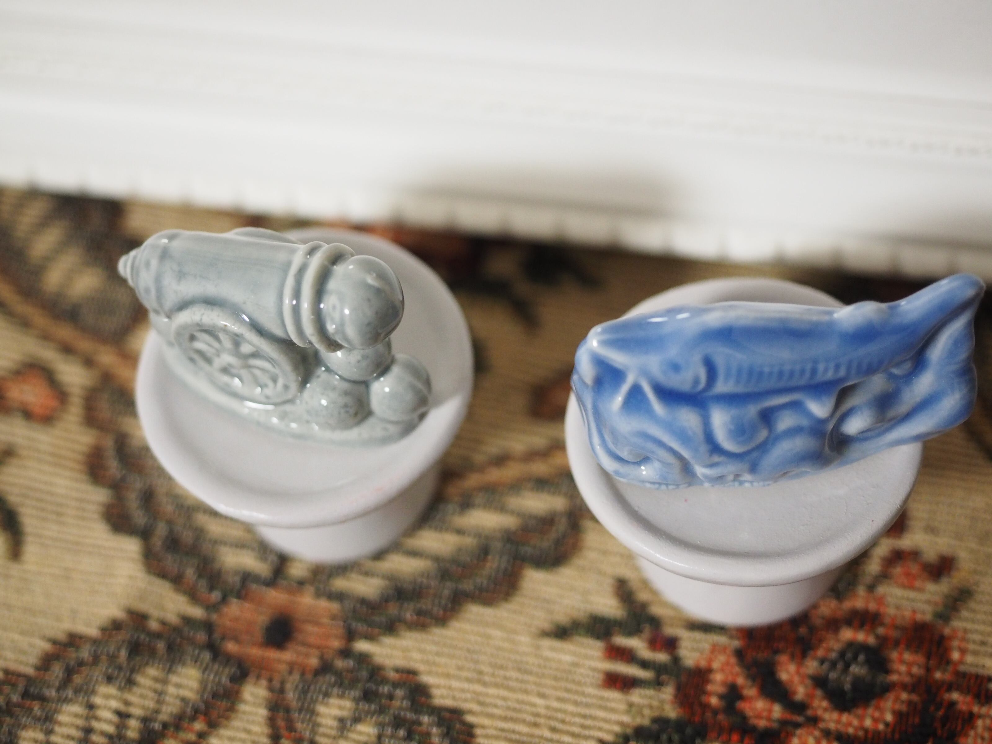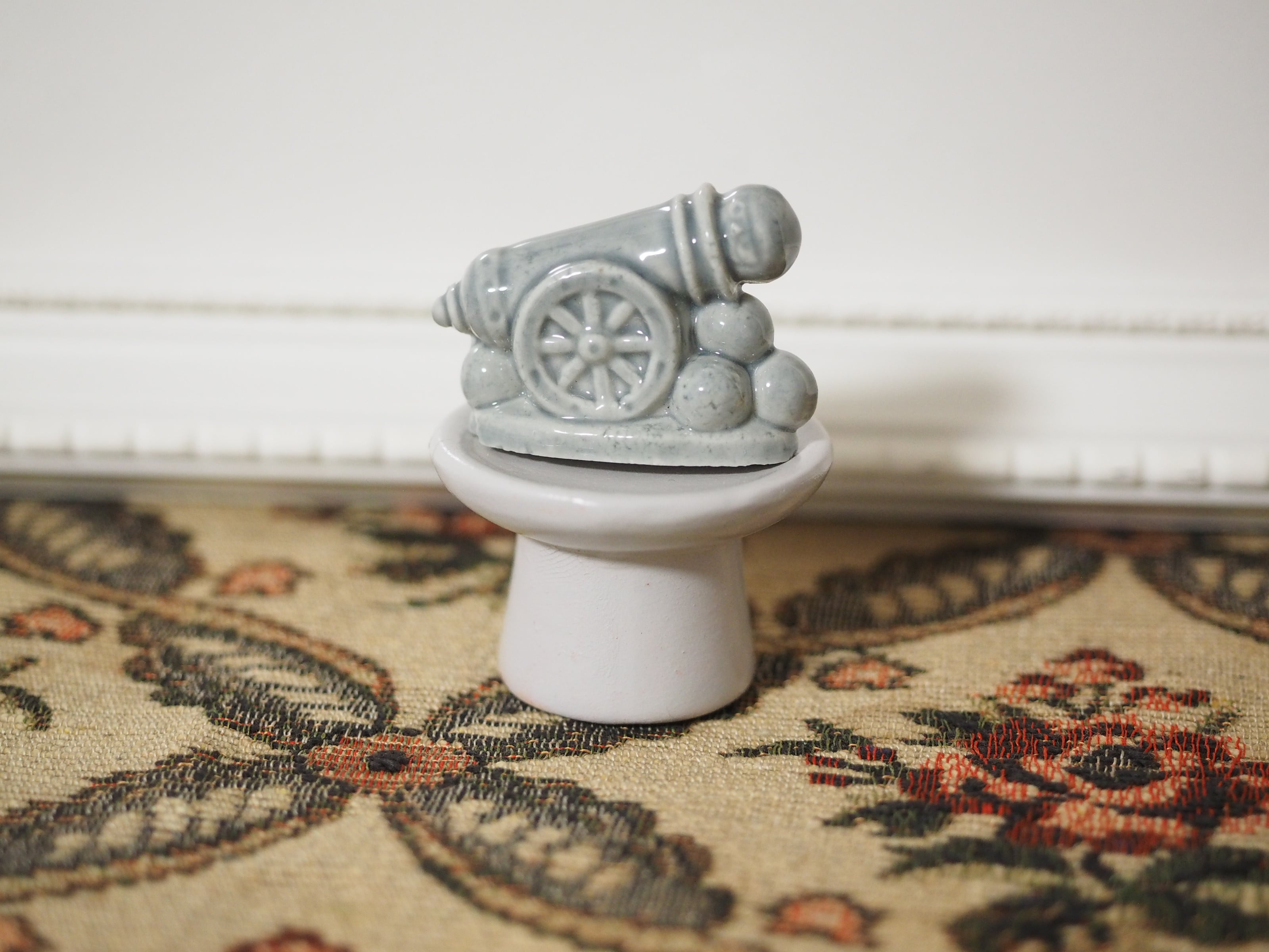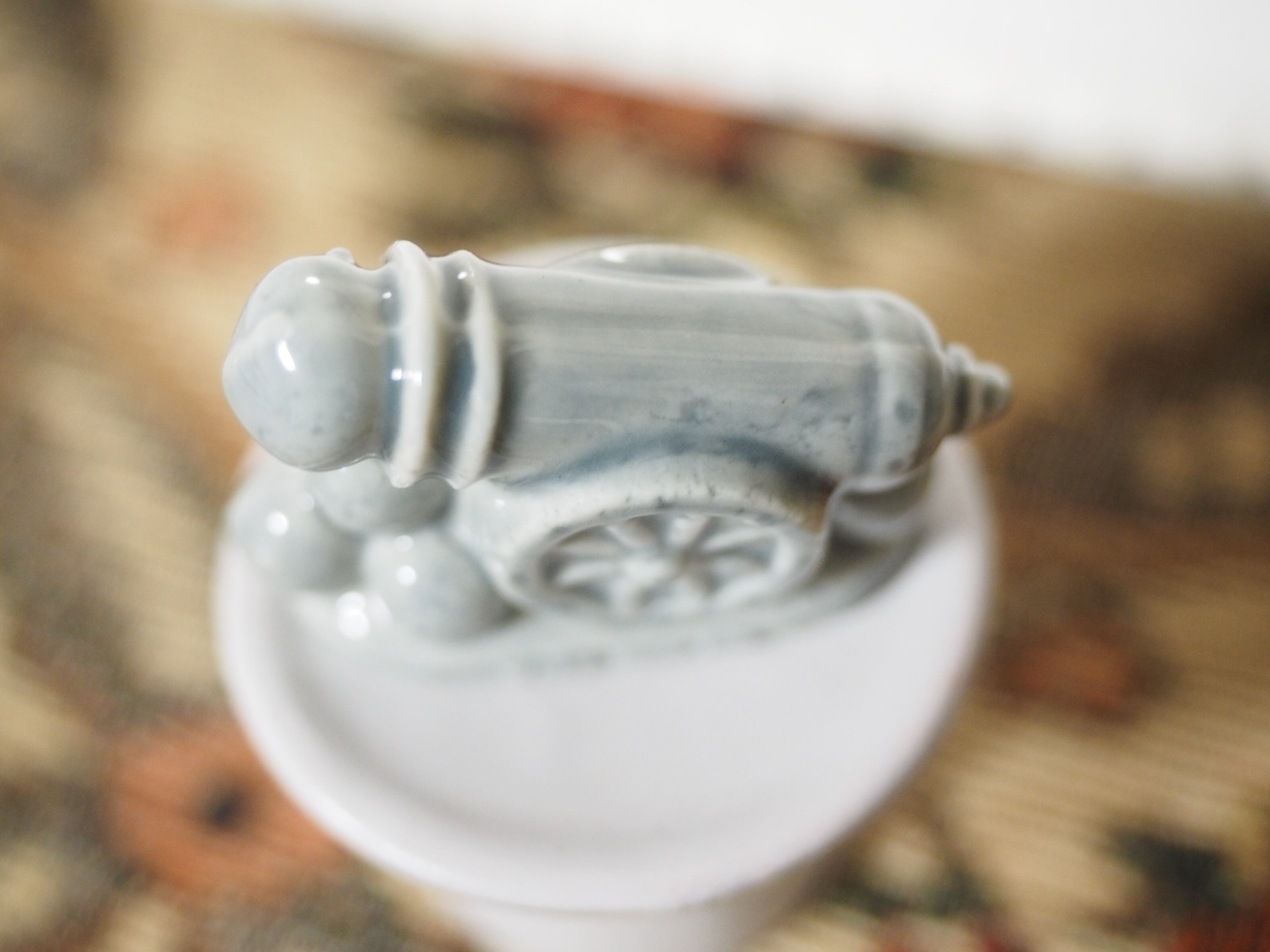 釉薬の陰影が美しい、小さなフィギュリンのHuman Cannonball