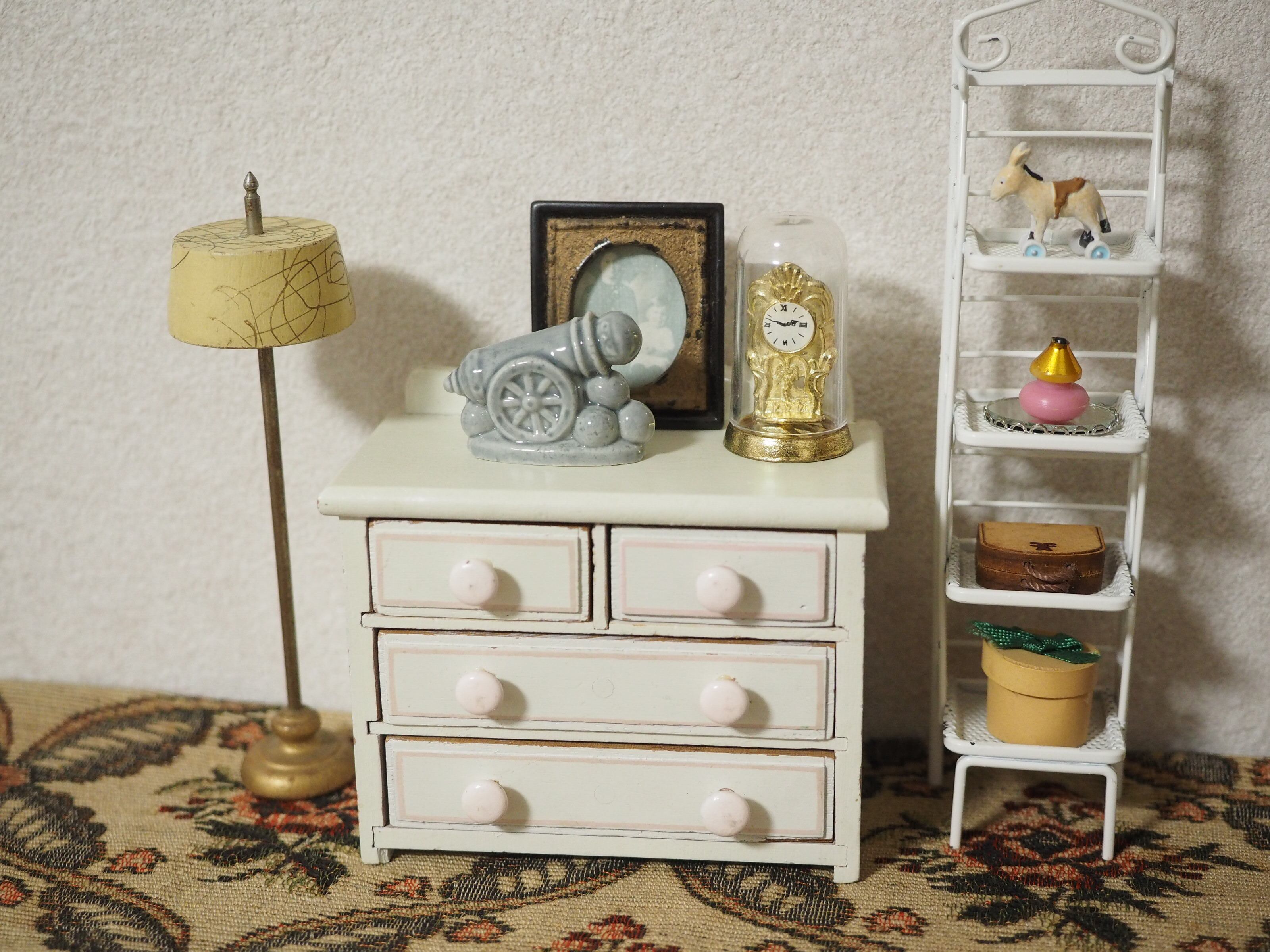 ミニチュアの彫刻のような精巧さで、お人形の家具にぴったりなサイズ感。ちょこんと置くと存在感があります。
