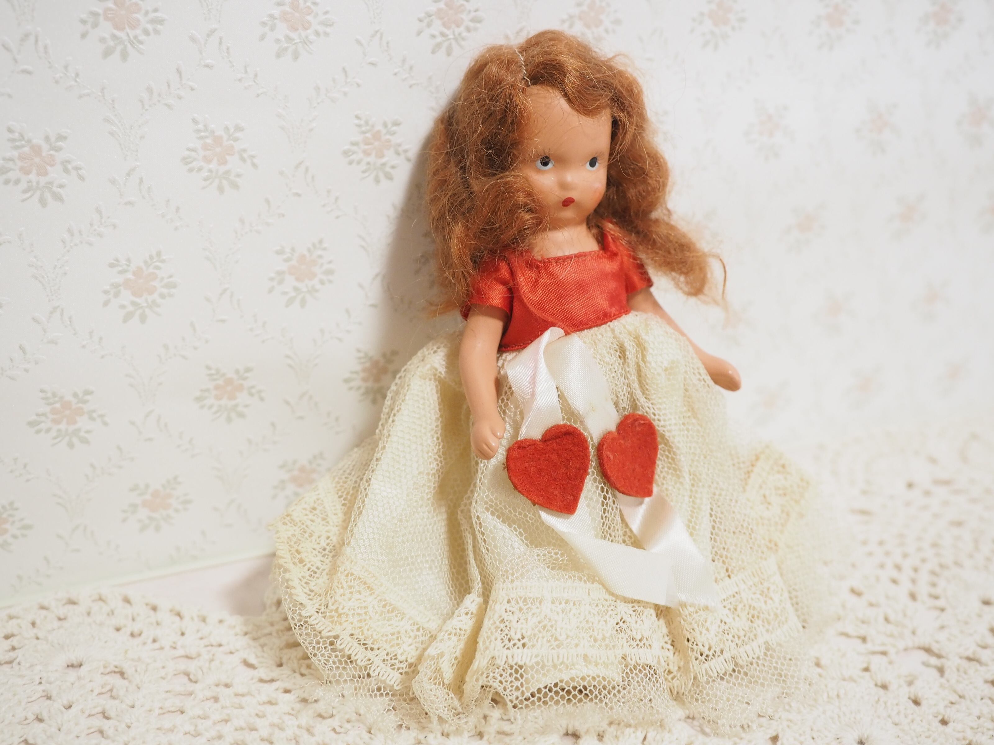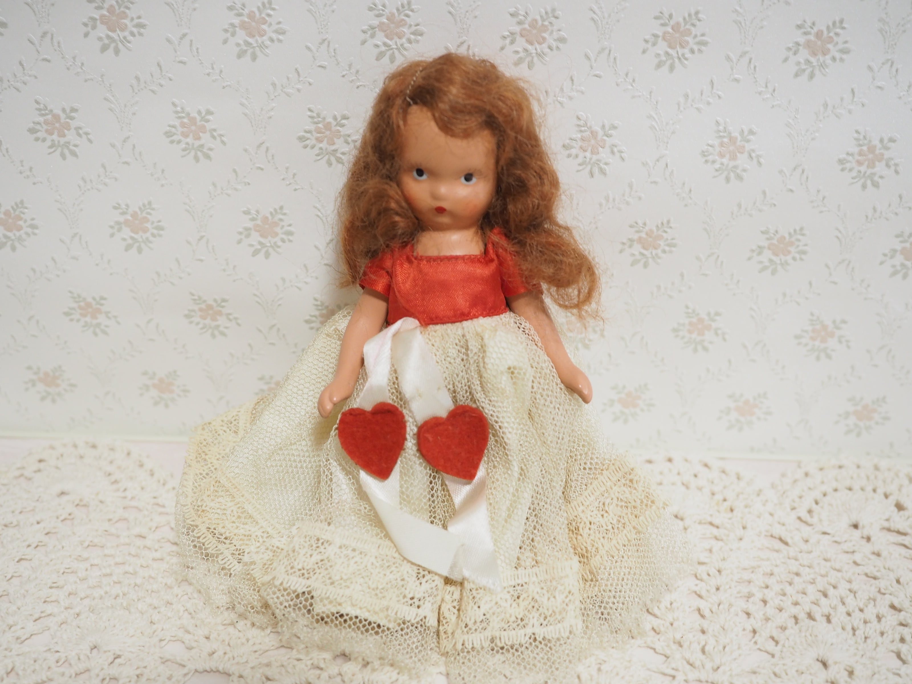 ナンシー・アン 「ストーリーブックドール」 ビスク 生成りレース、赤ハート